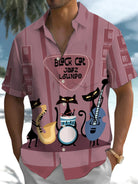 Alohadaddy® Casual Geometric Jazz Cat Print Art Pocket Stretch Men's Short Sleeve Shirt Big & Tall