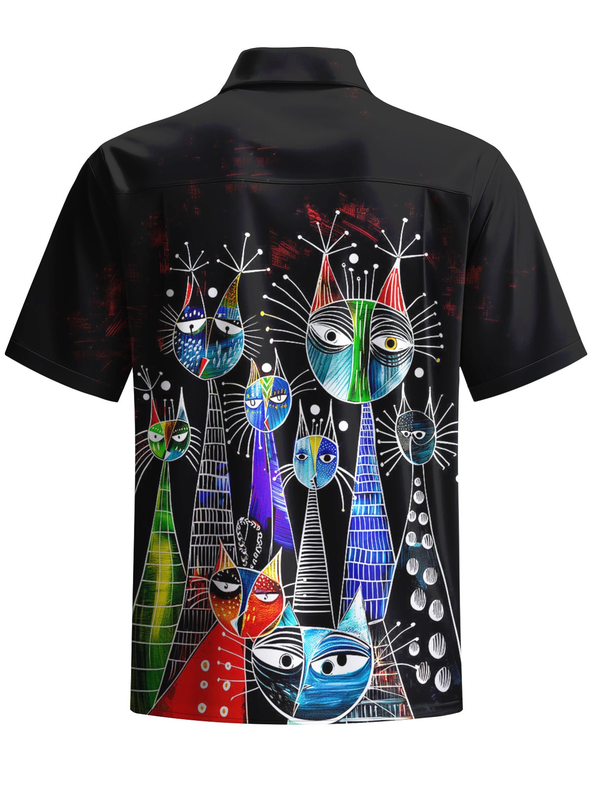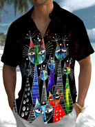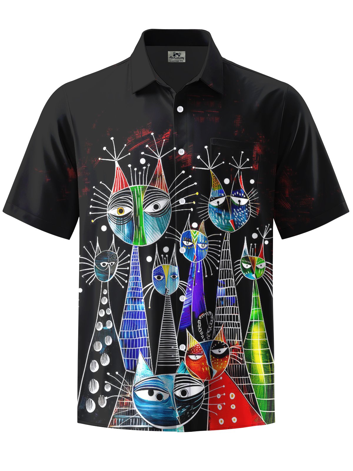 Alohadaddy® Casual Graffiti Cat Print Art Pocket Stretch Men's Short Sleeve Shirt Big & Tall