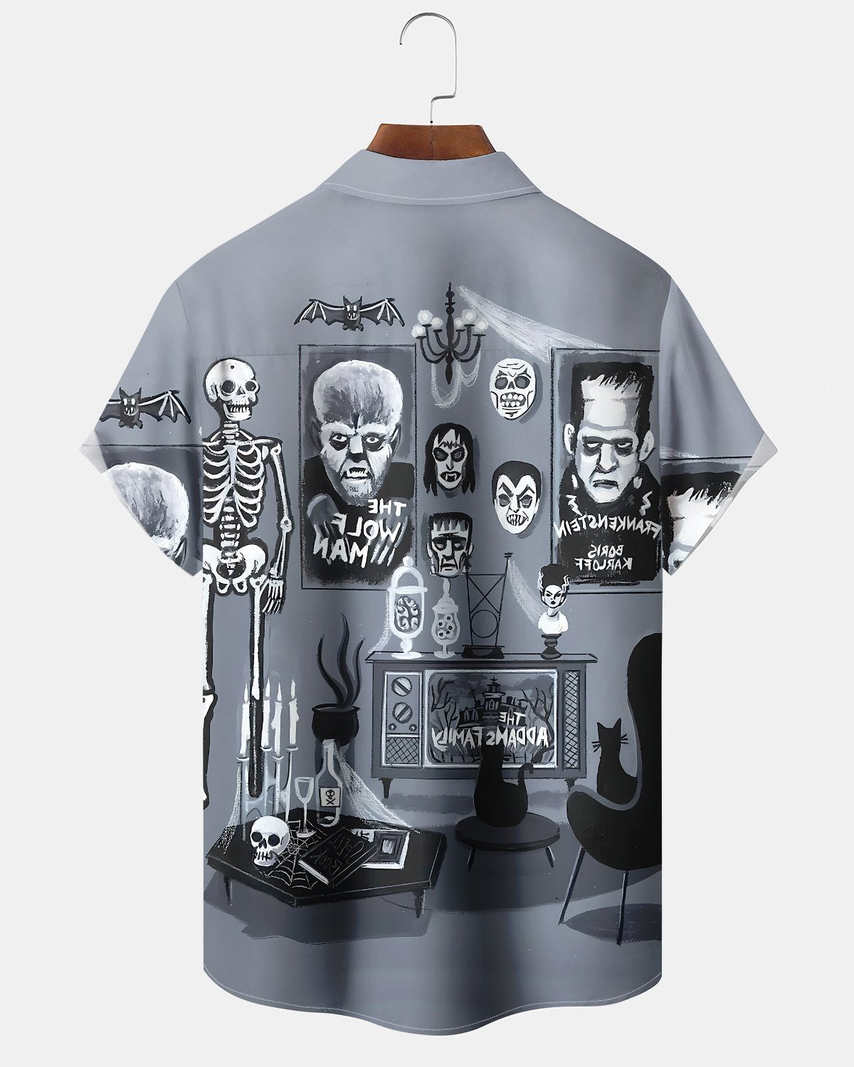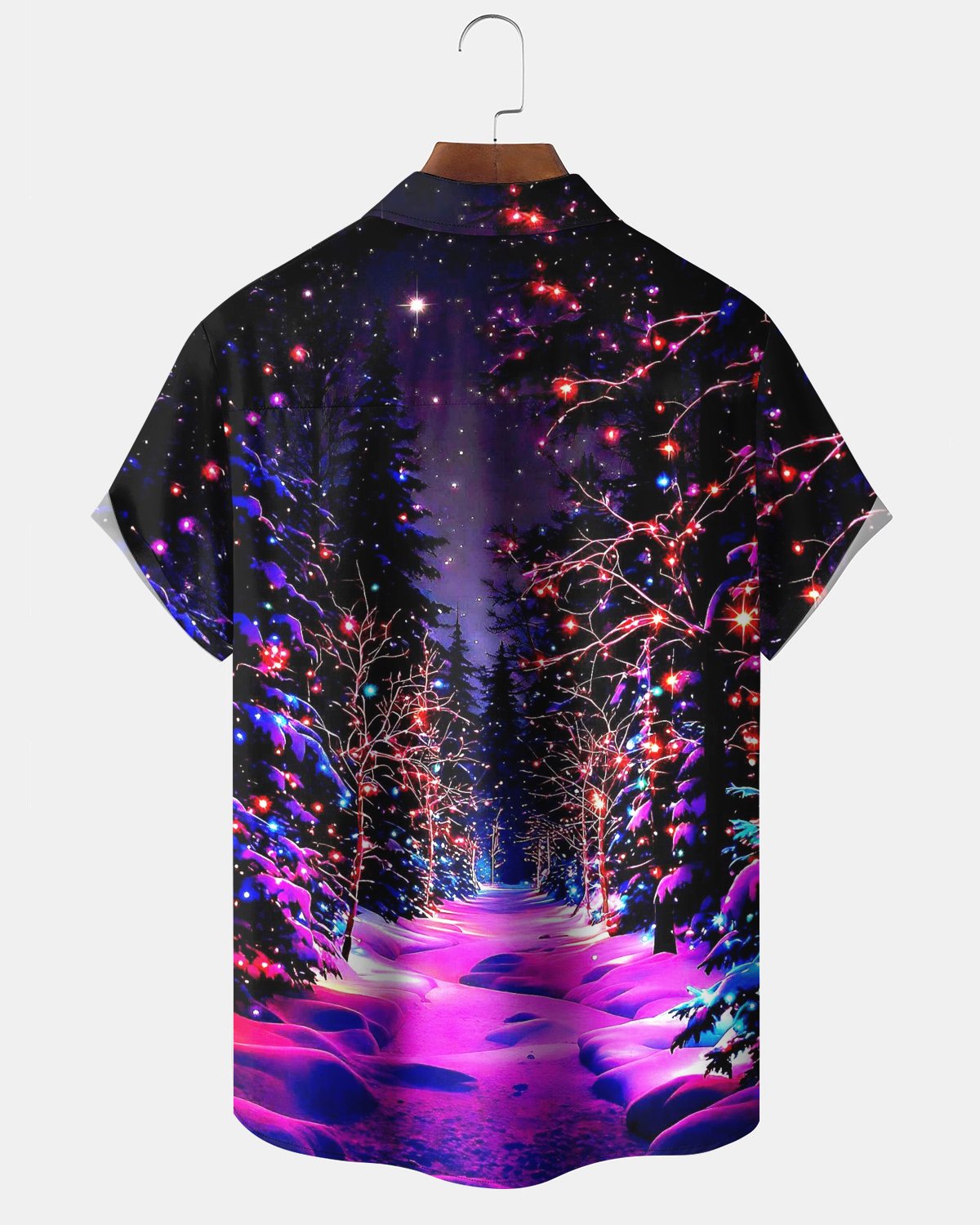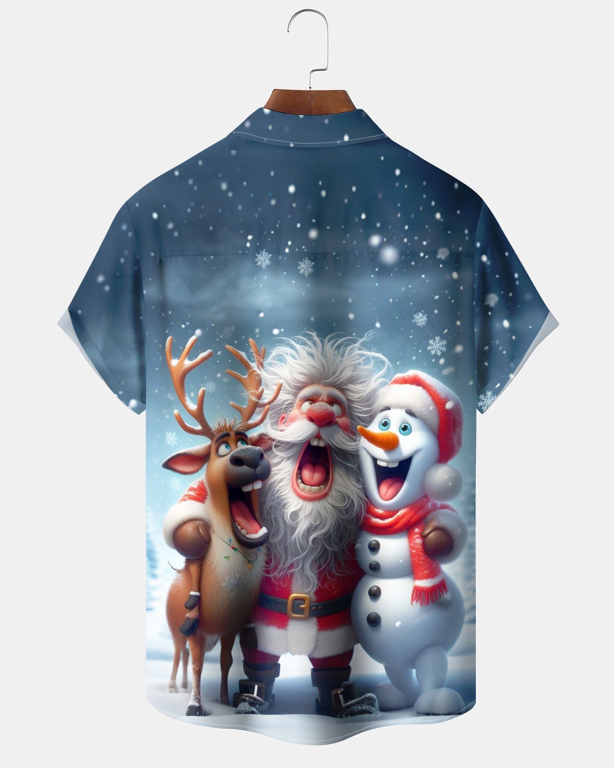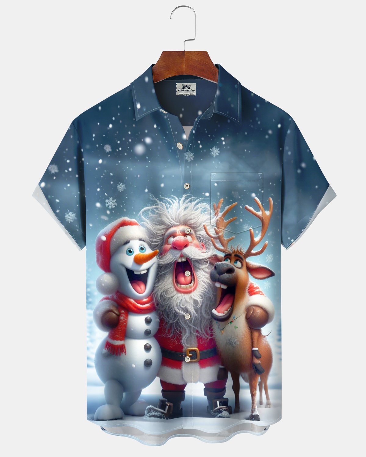 Alohadaddy® Christmas Leg Light Print Pocket Elastic Button Closure Men's Short Sleeve Shirt Big & Tall