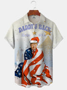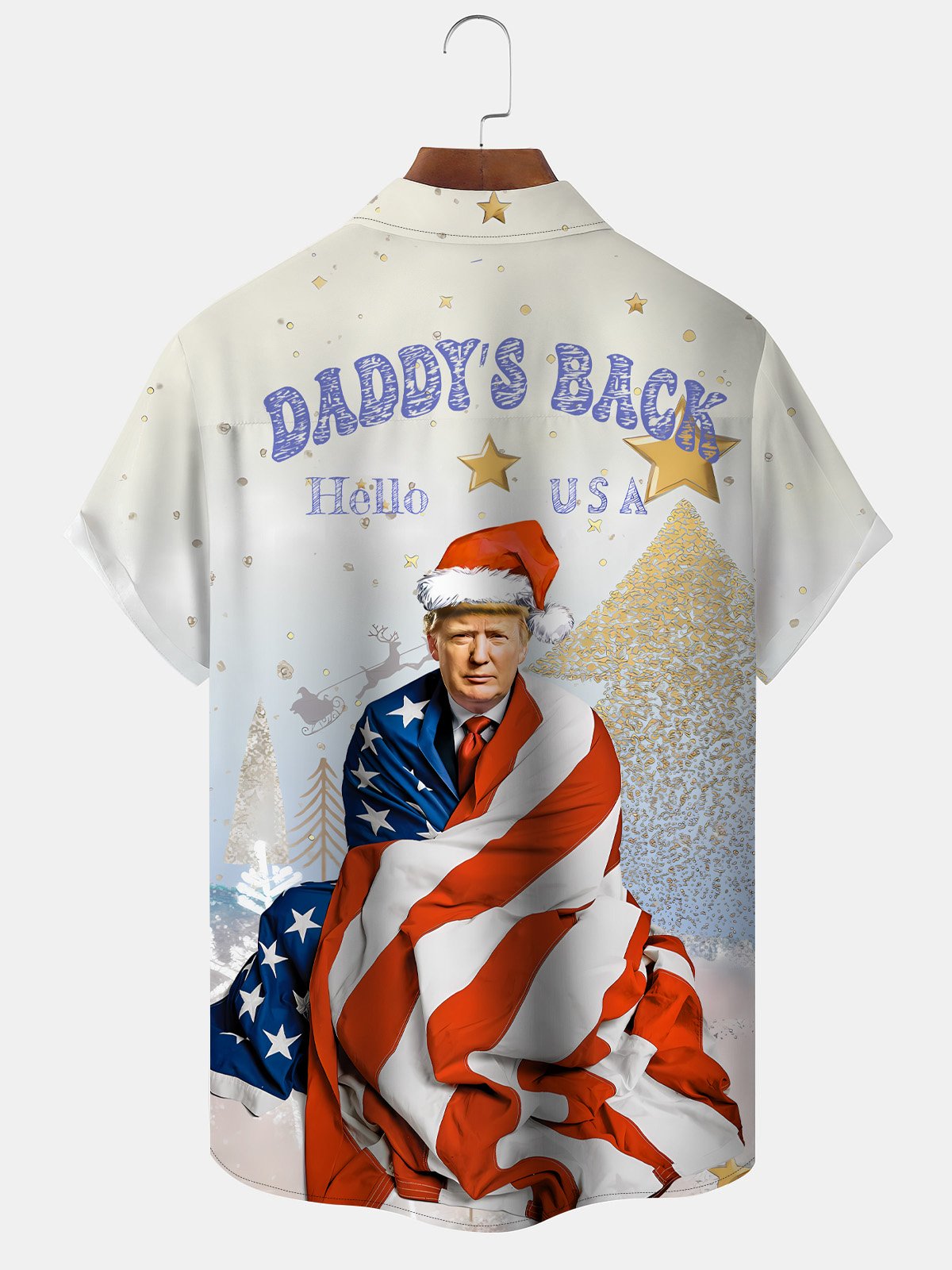 Camisa informal de manga corta con bolsillos y botones con la bandera de Trump de Navidad de Alohadaddy