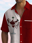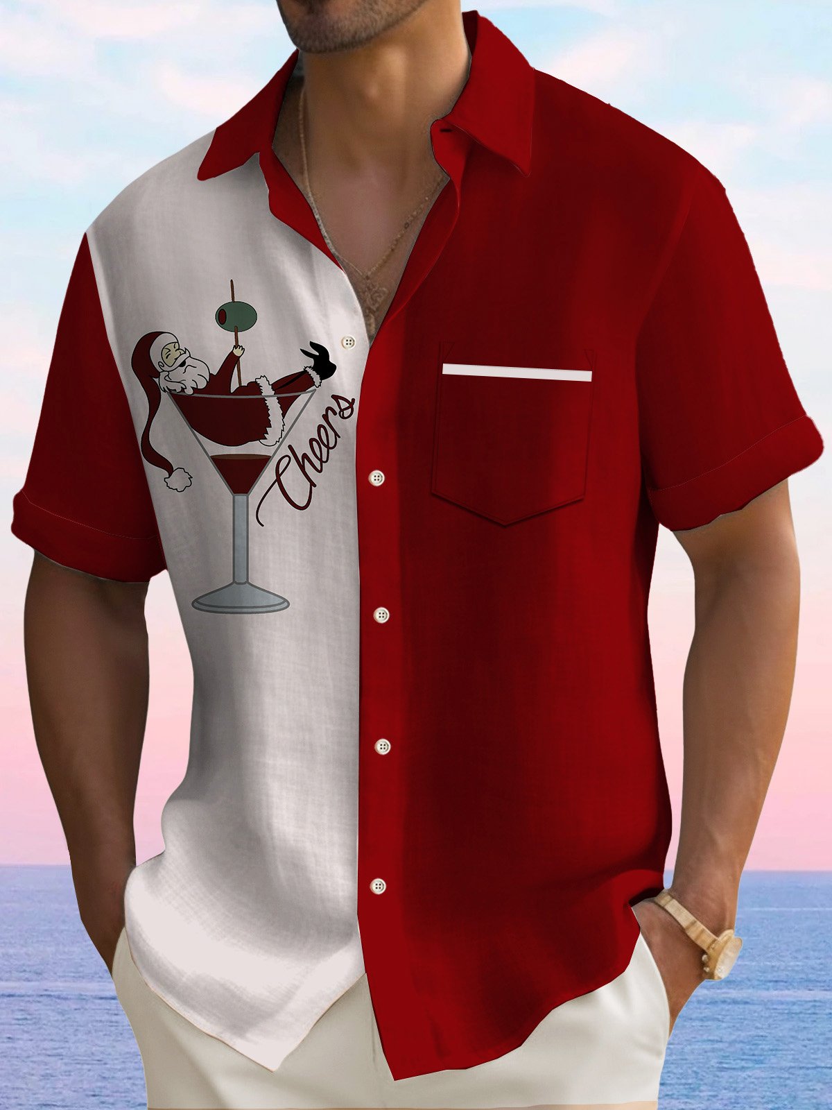 Camisa de manga corta con bolsillo delantero y estampado de Papá Noel con bolsa de regalos para hombre