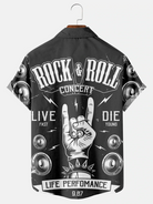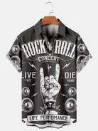 Camisa informal holgada de manga corta con estampado de póster de rock para hombre