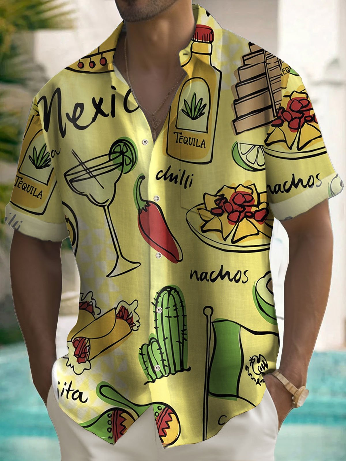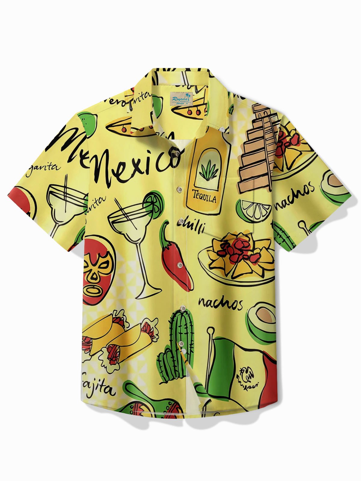 Camisa de manga corta con bolsillo para hombre con estampado de chili y cóctel mexicano Alohadaddy Cinco de Mayo