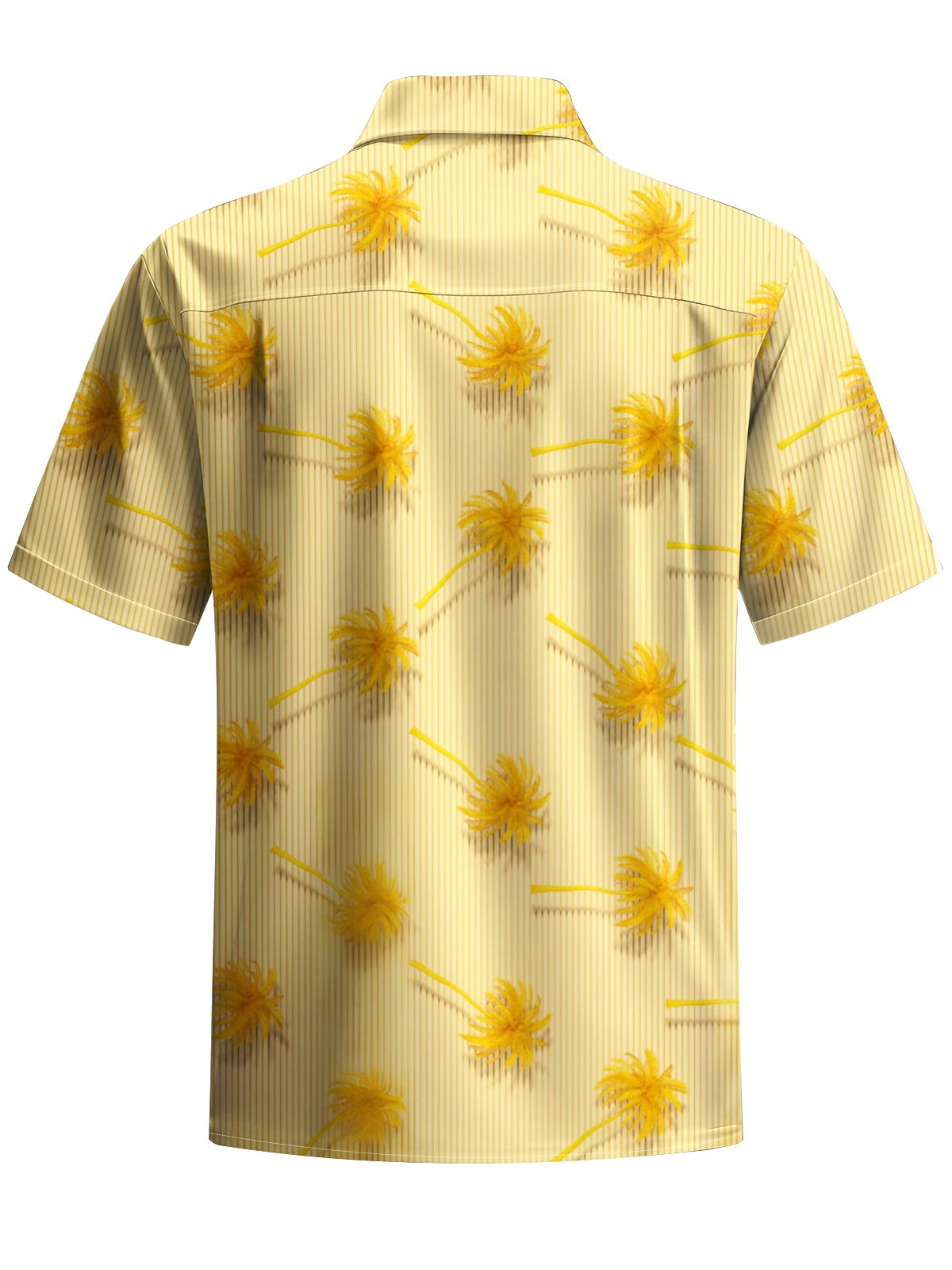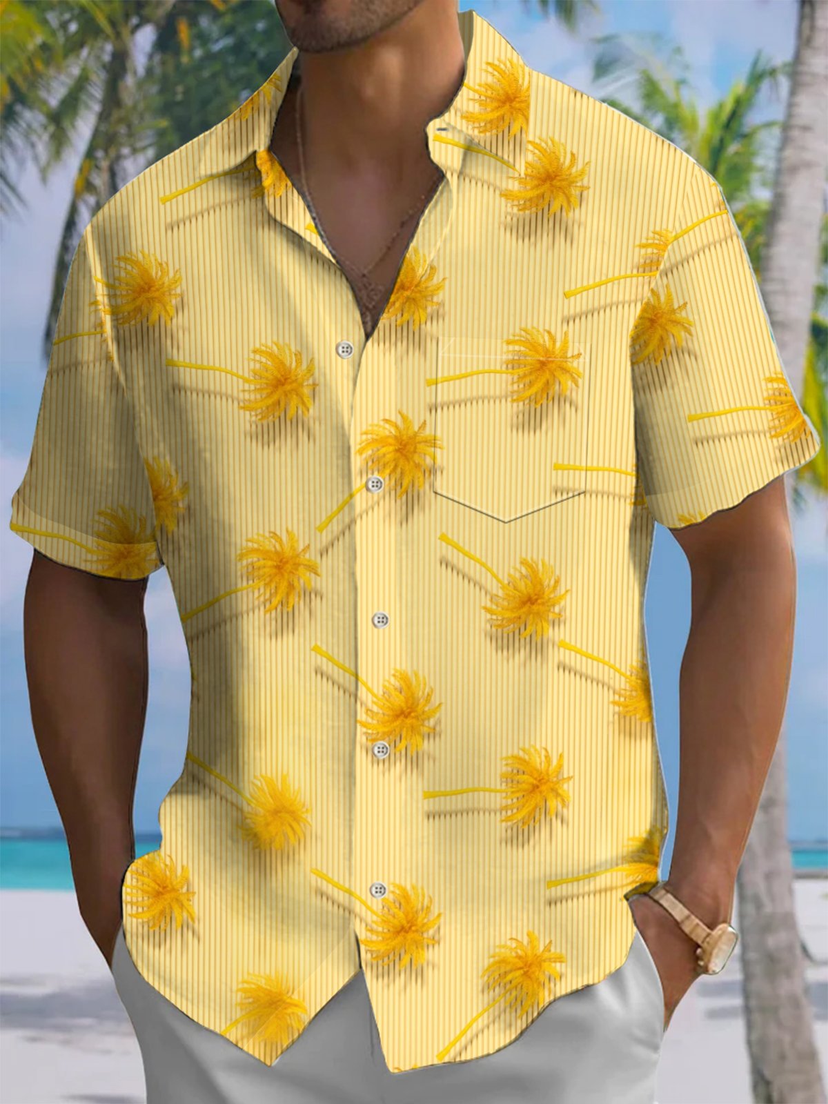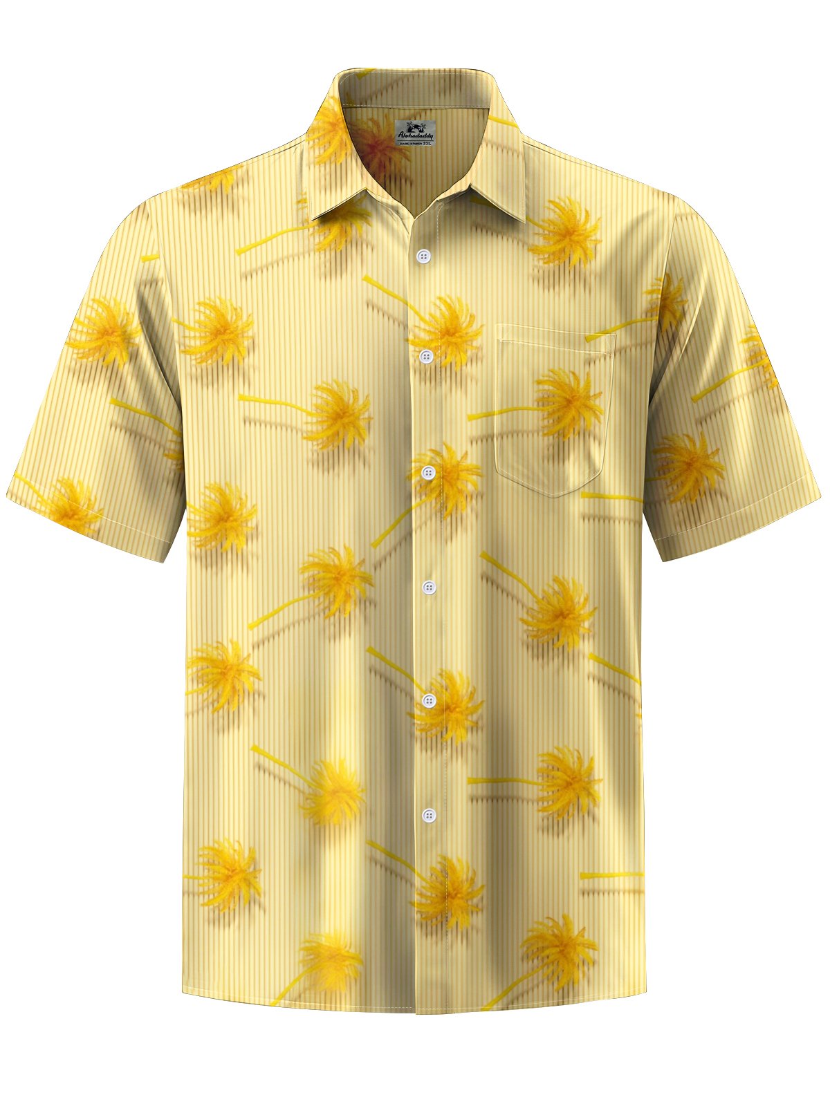 Alohadaddy® Hawaii Palm Tree Art Print Chest Pocket Mens Short Sleeve Shirt Big & Tall