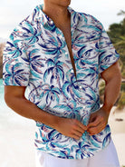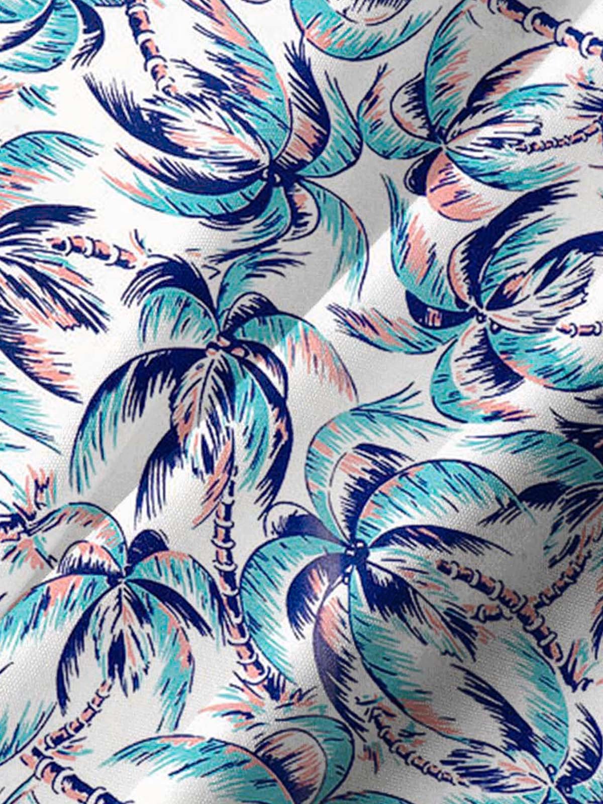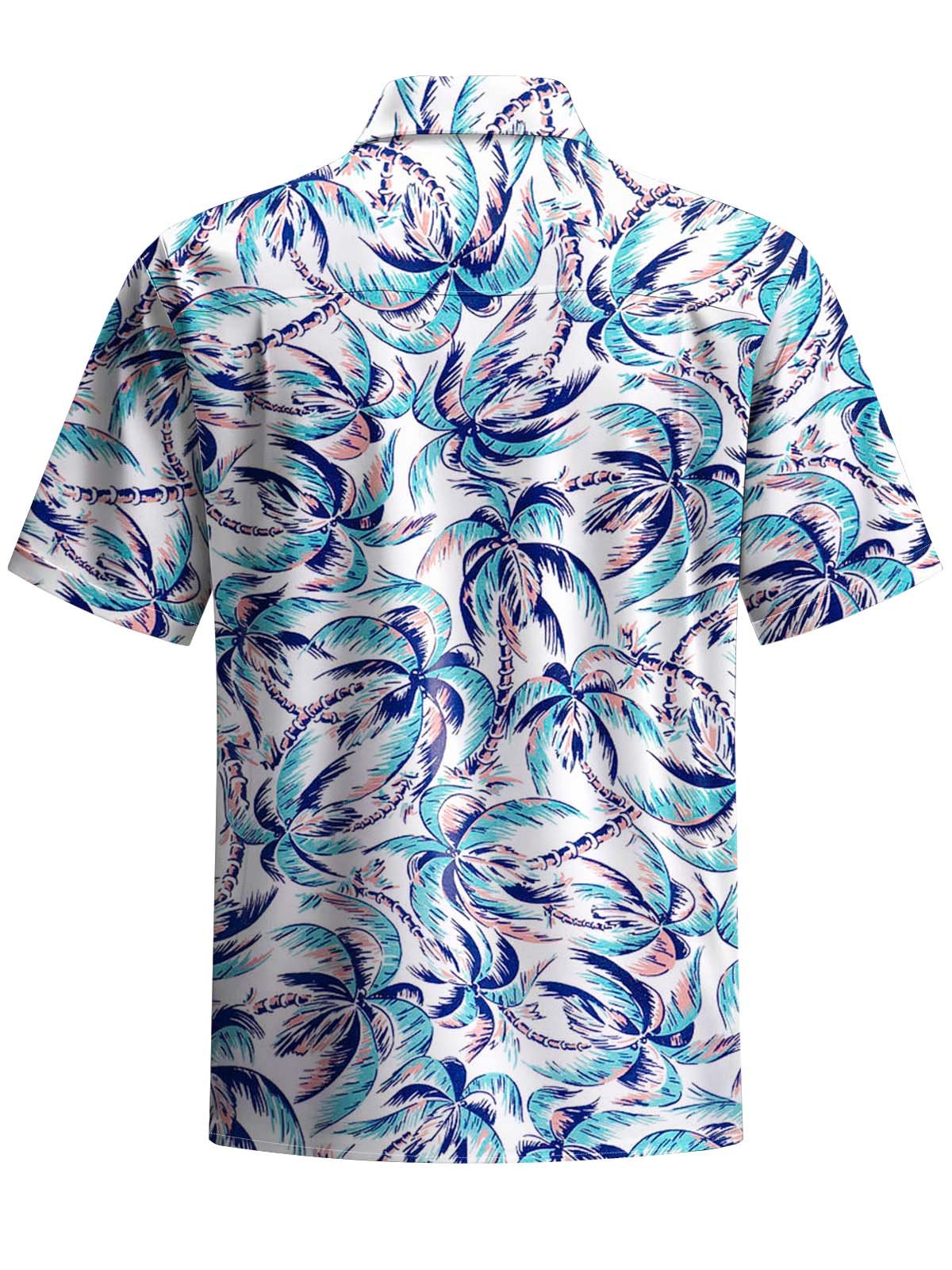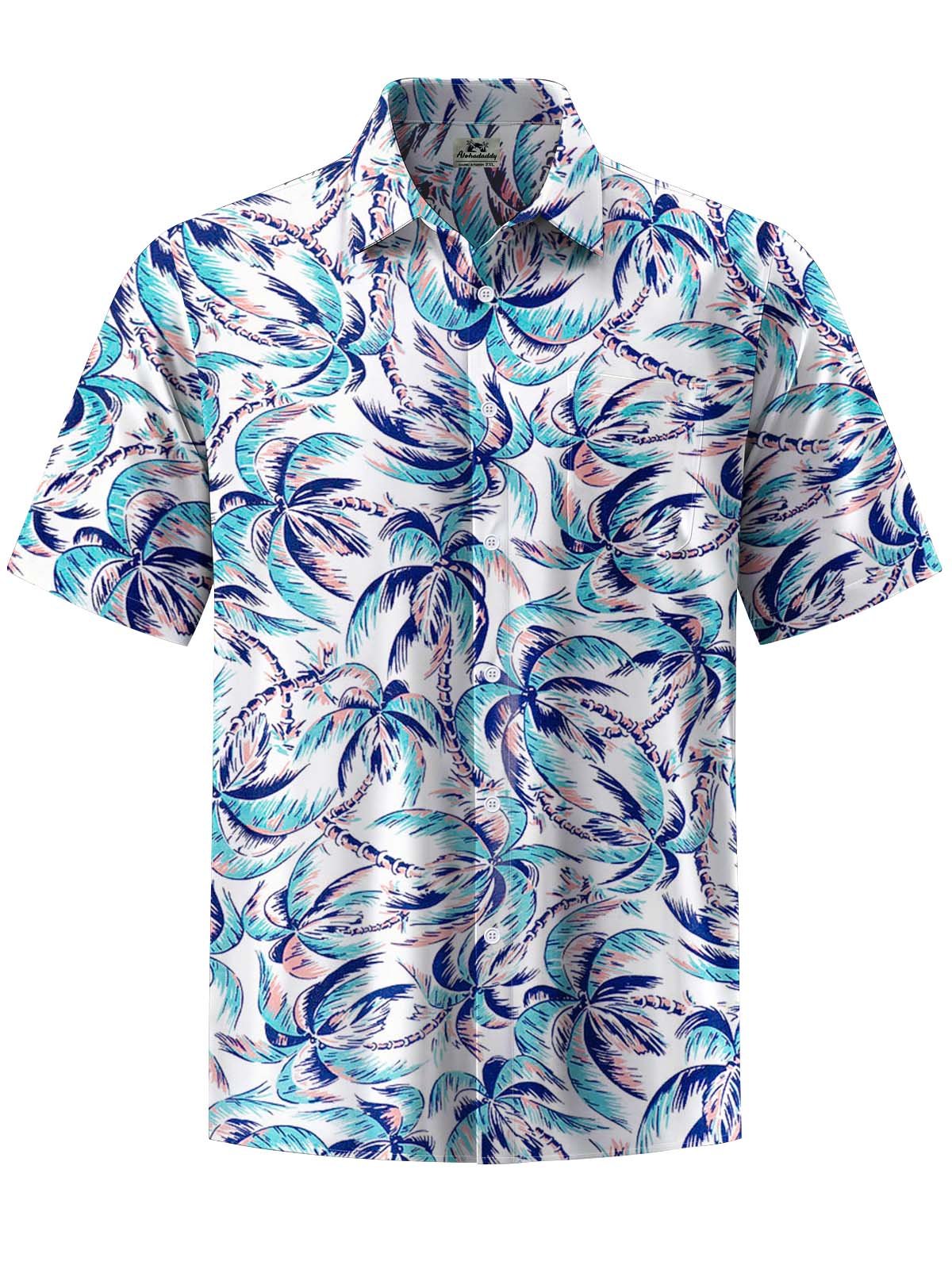 Alohadaddy® Hawaiian Coconut Tree Art Print Chest Pocket Men's Stretch Short Sleeve Shirt Big & Tall