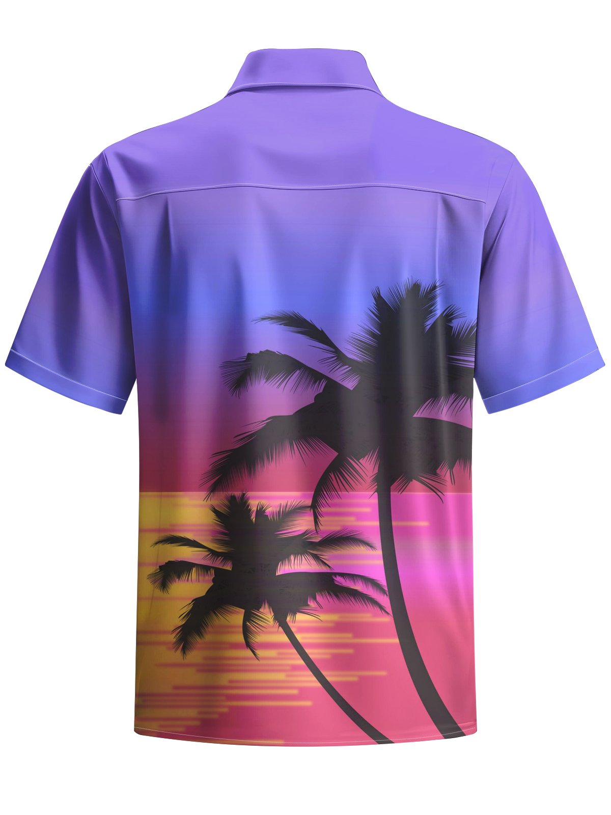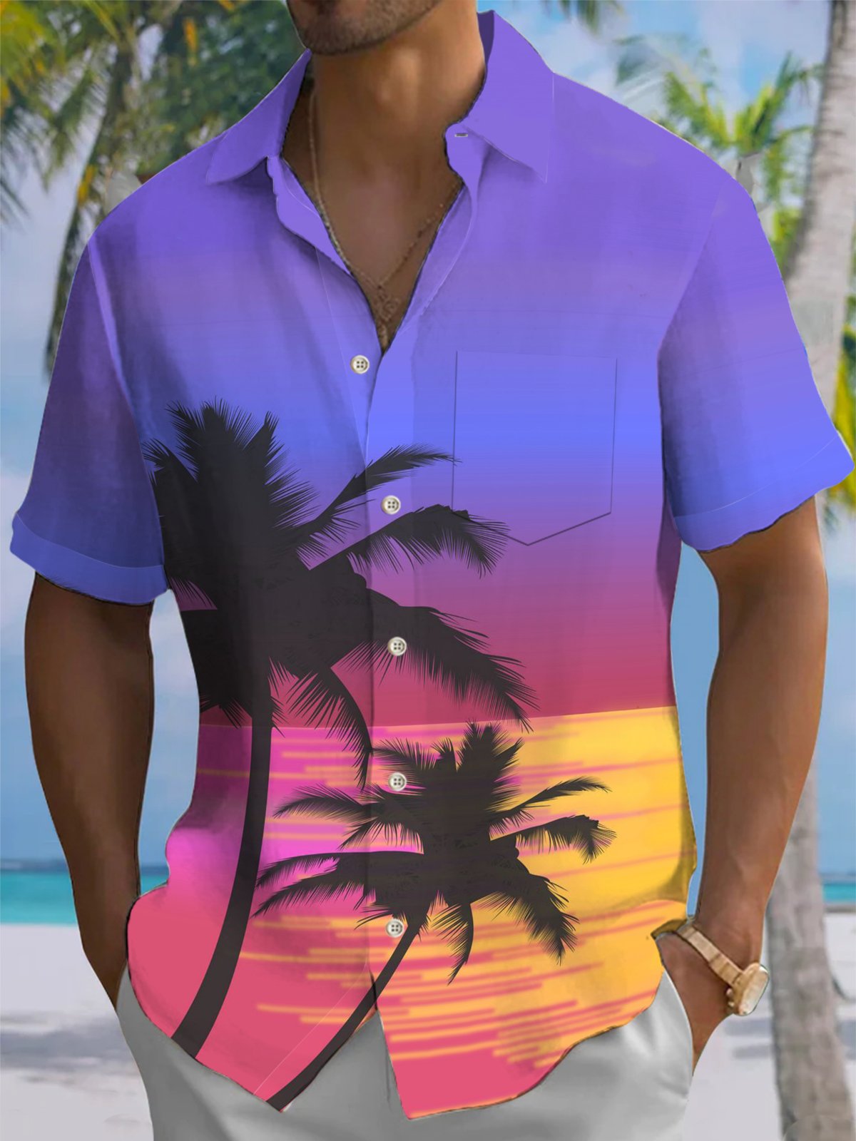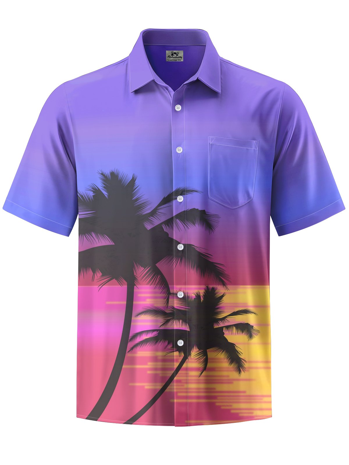 Alohadaddy® Hawaiian Palm Tree Art Print Pocket Stretch Men's Short Sleeve Shirt Big & Tall