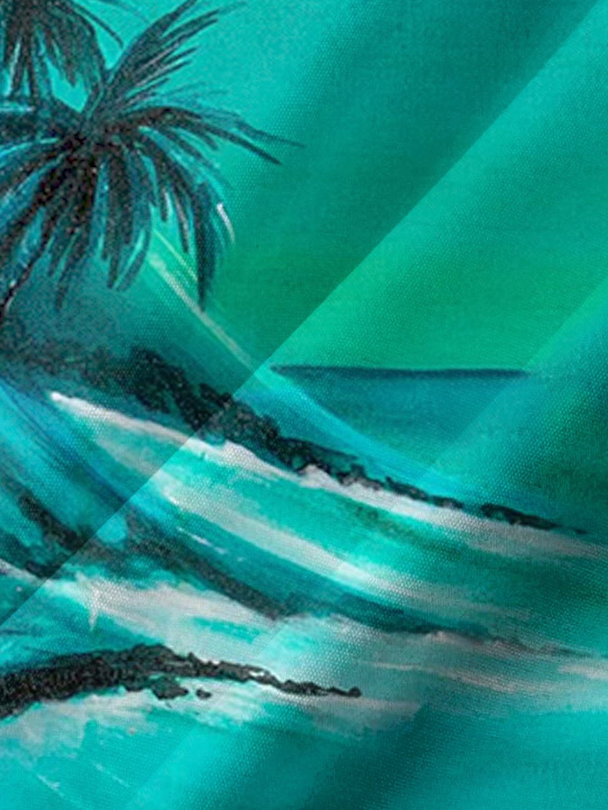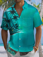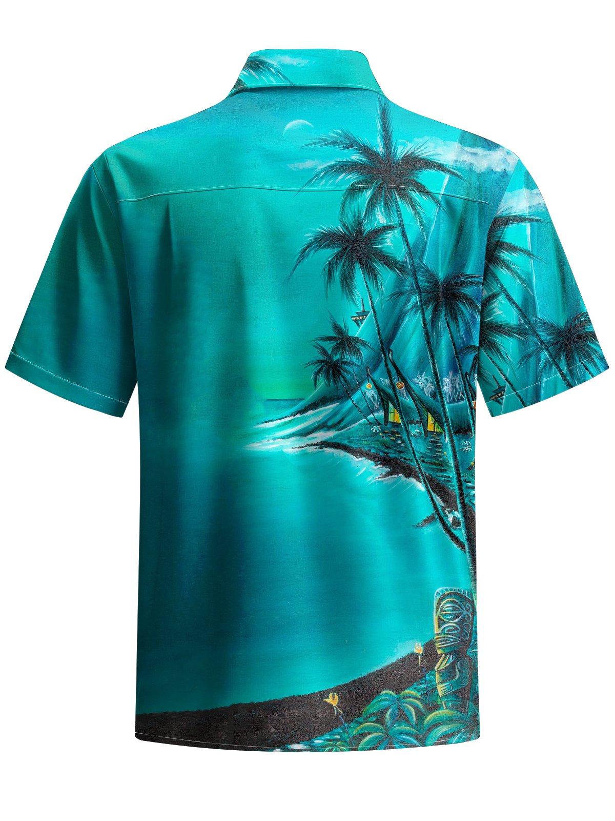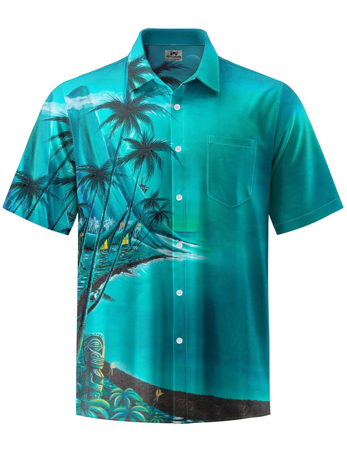 Alohadaddy® Retro Tiki Beach Holiday Art Print Chest Pocket Stretch Men's Short Sleeve Shirt Big & Tall