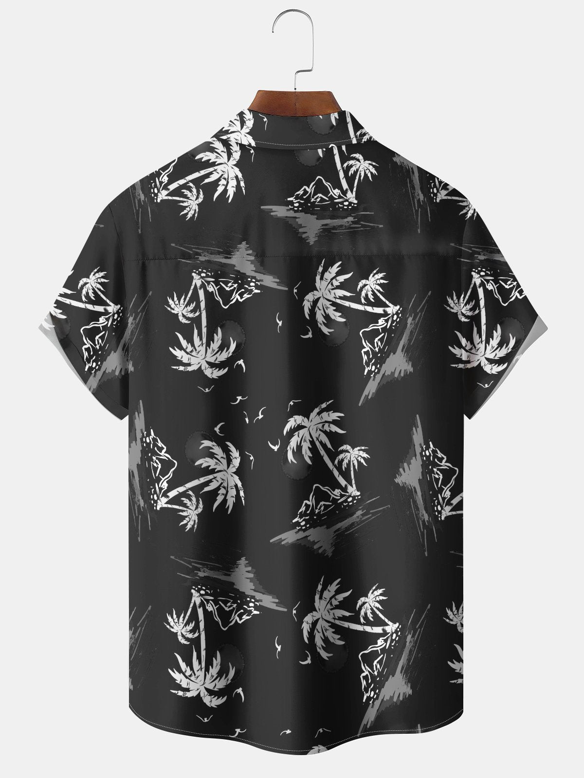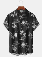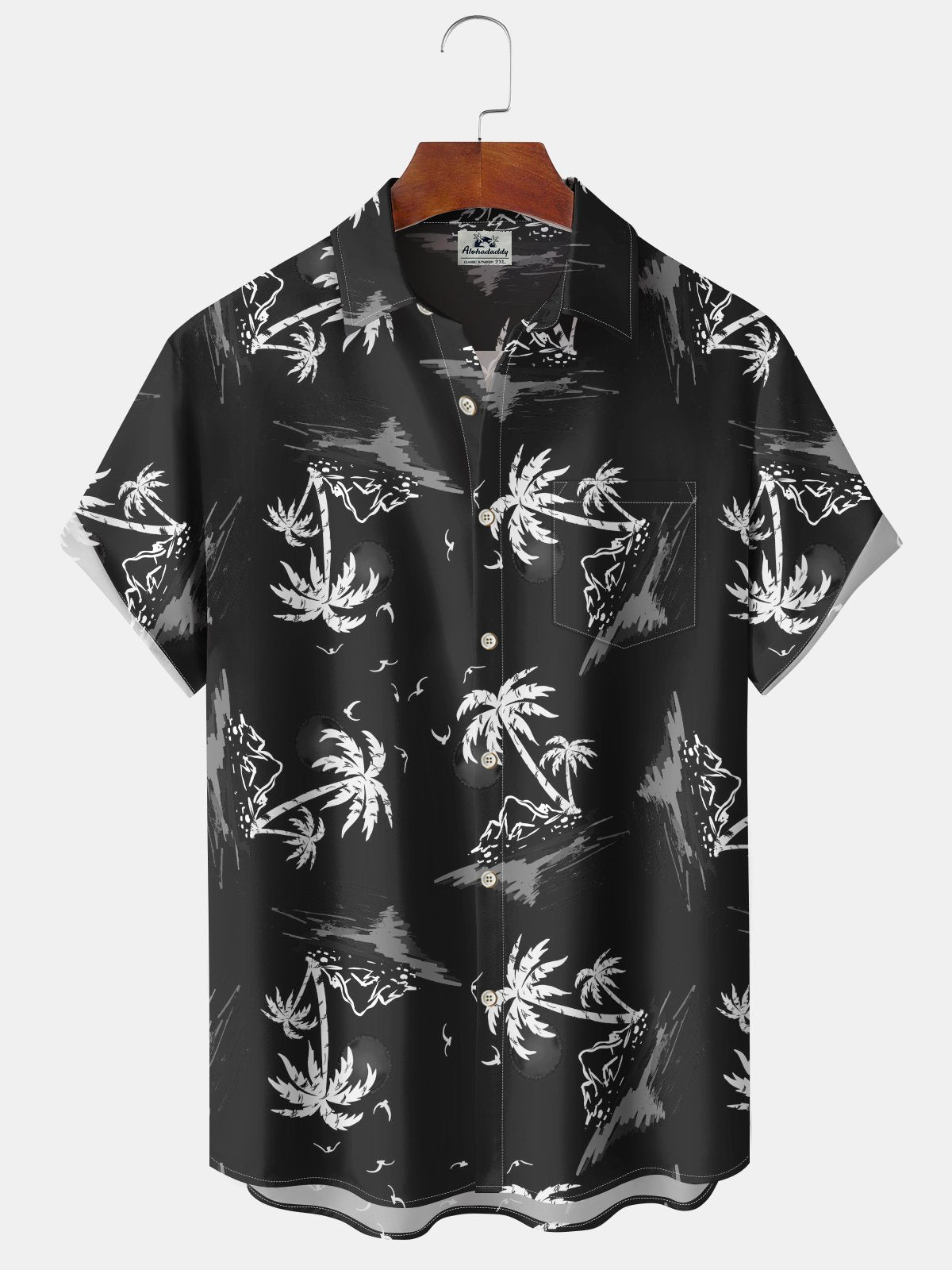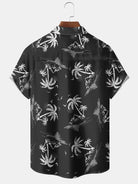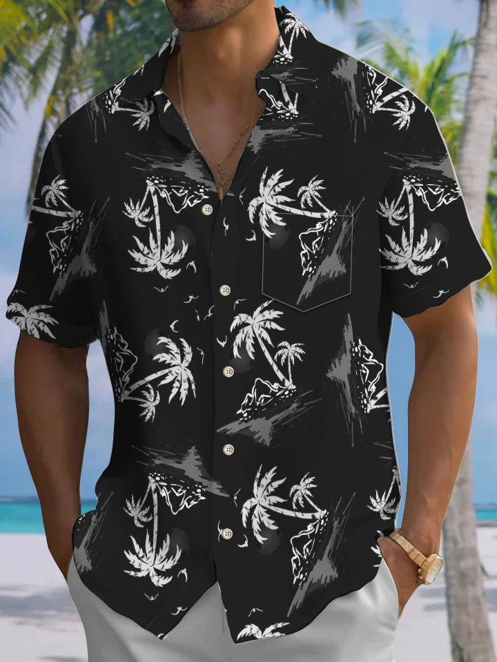 Alohadaddy Casual Collection Vacation Beach Palm Trees Print Art Button Cardigan Pocket Polyester Stretch Short Sleeve Shirt