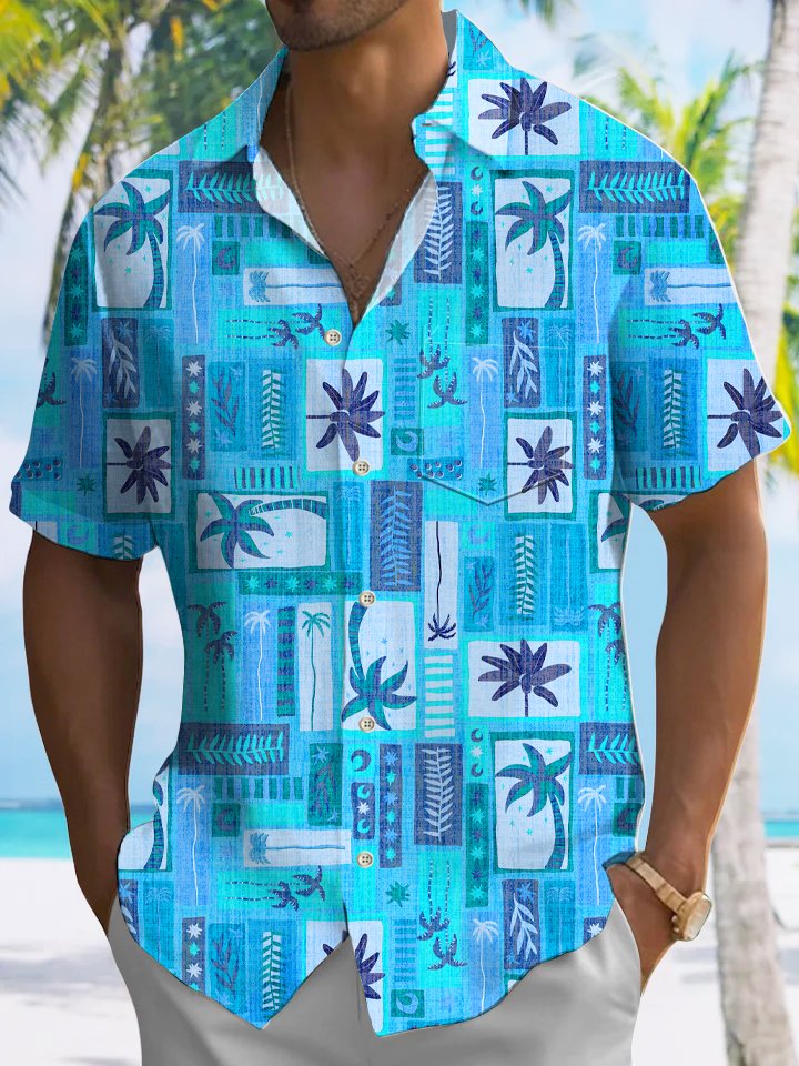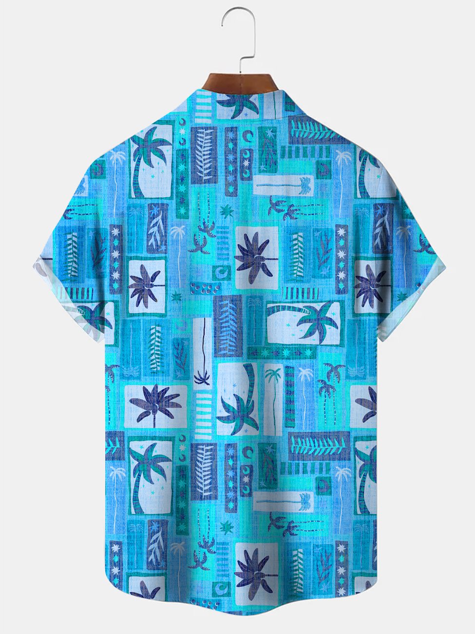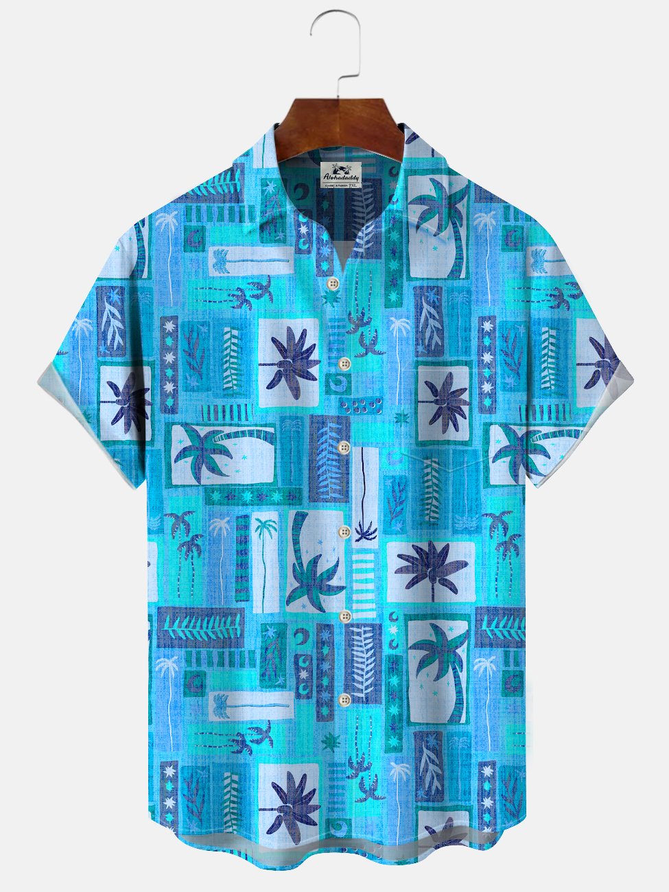 Alohadaddy Coconut Tree Beach Button Pocket Casual Short Sleeve Shirt