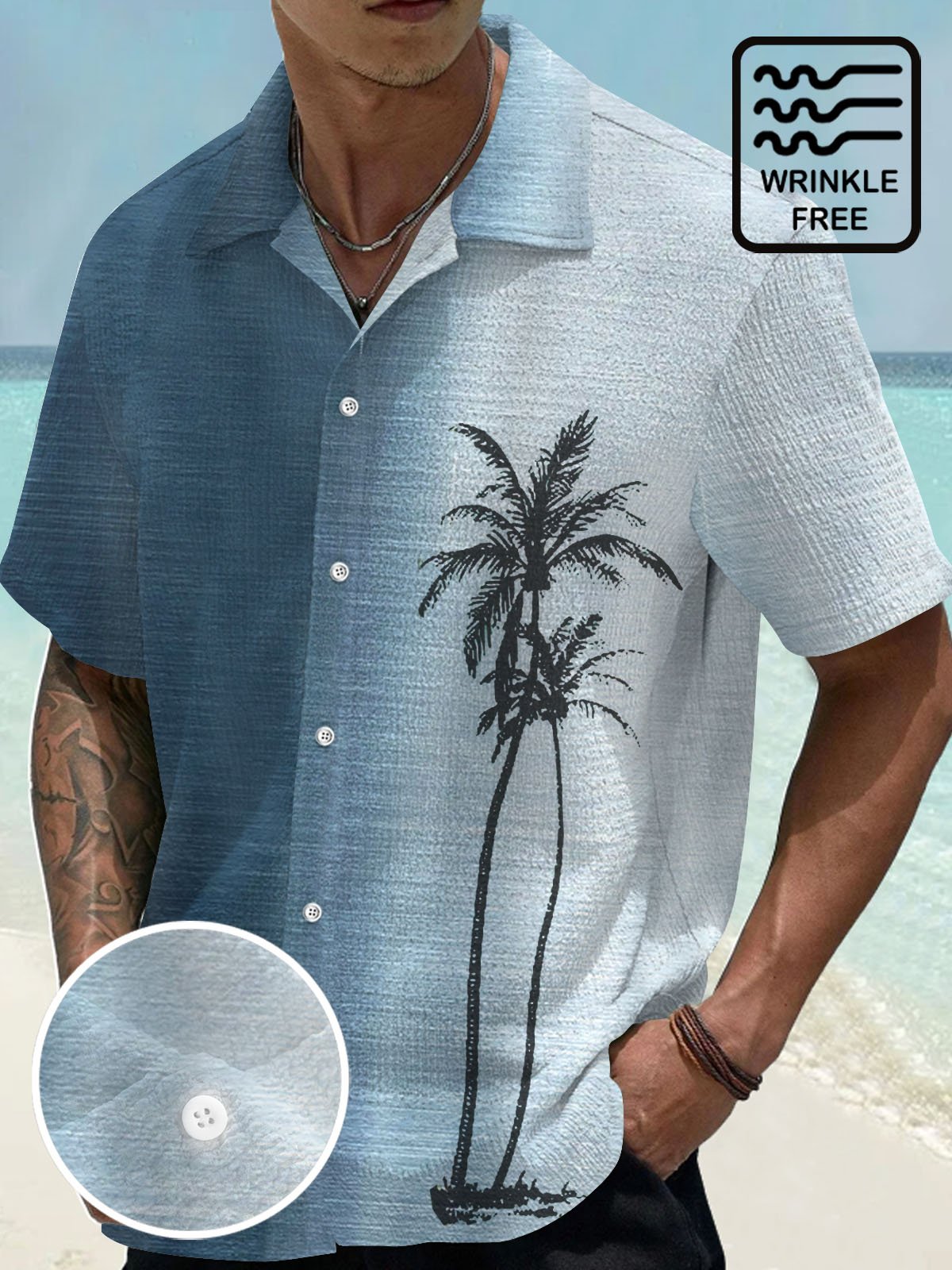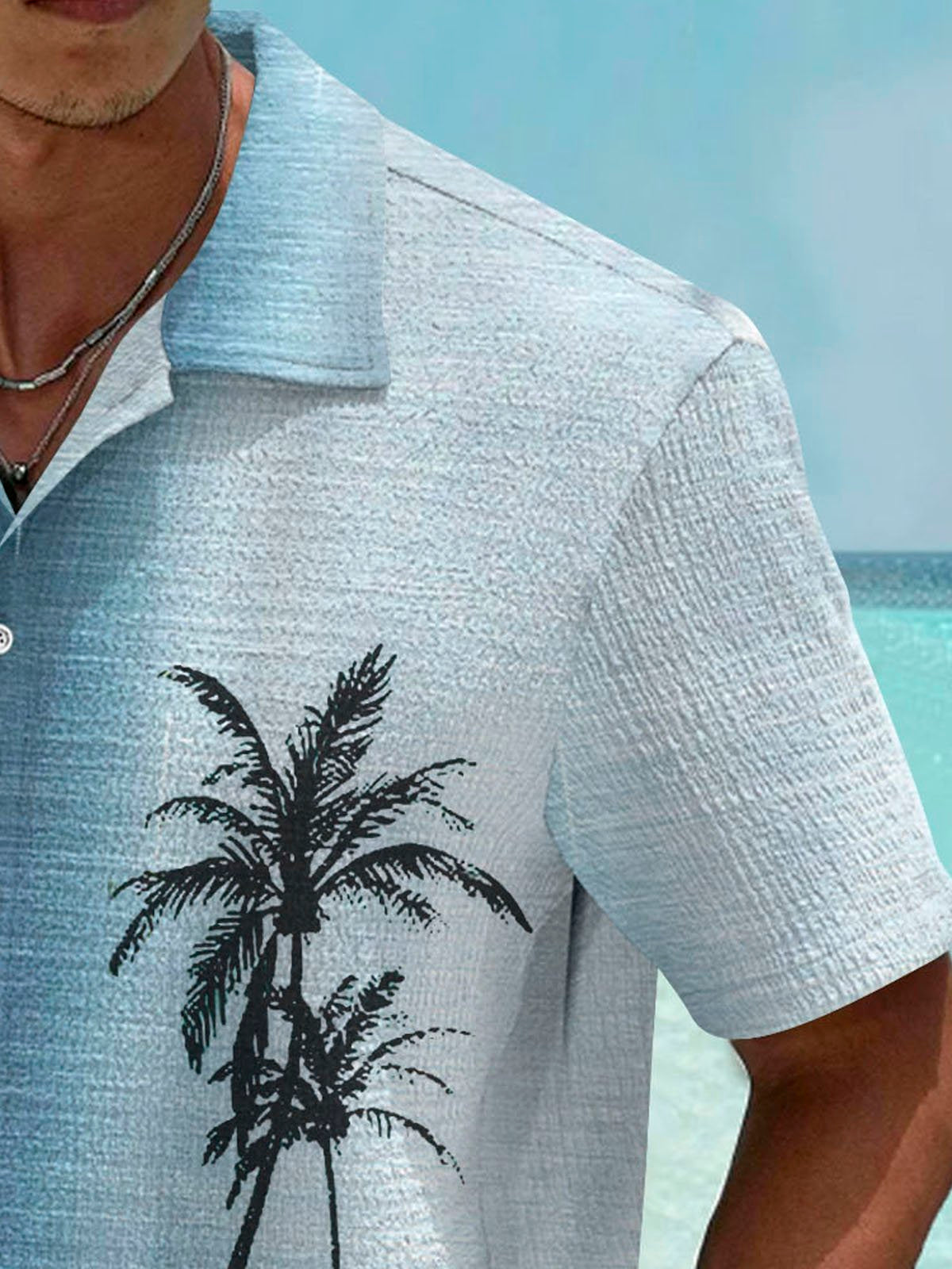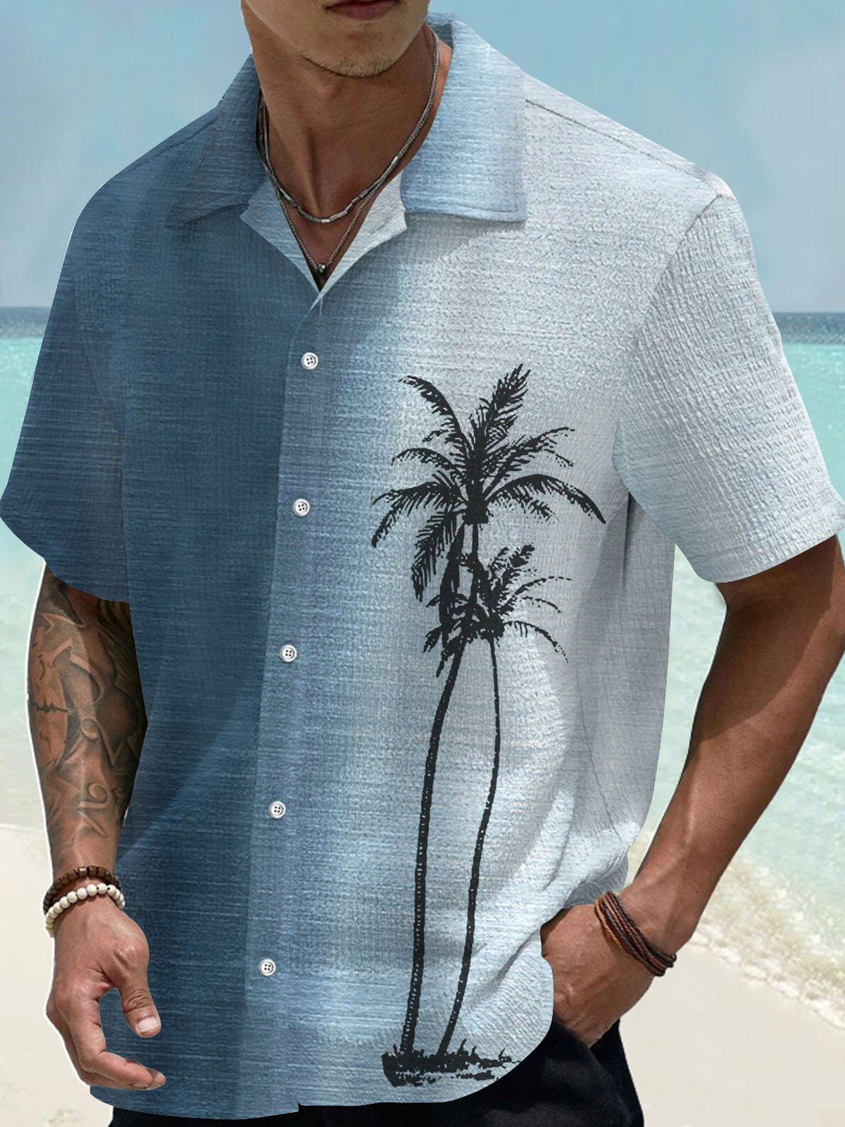 Camisa de manga corta con bolsillo abotonado y estampado digital 3D con degradado de cocotero hawaiano para hombre de Alohadaddy, talla grande y alta