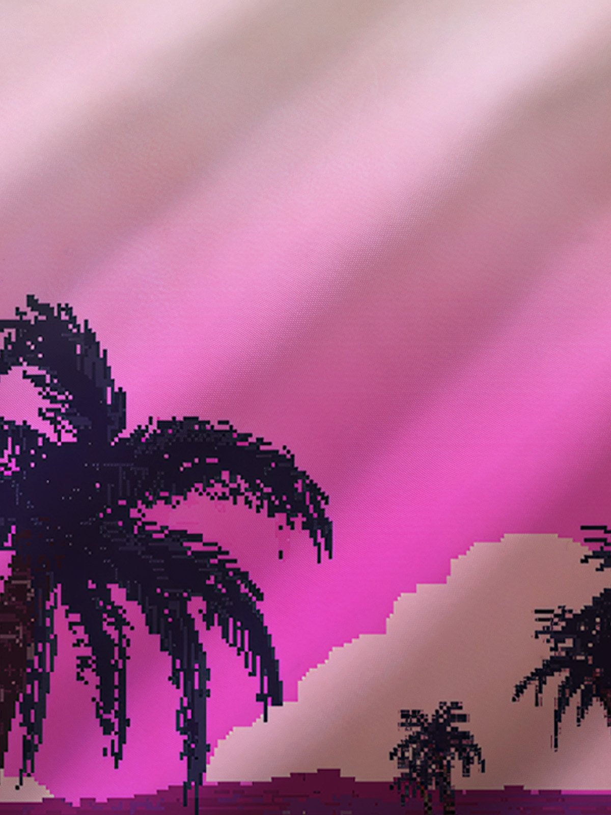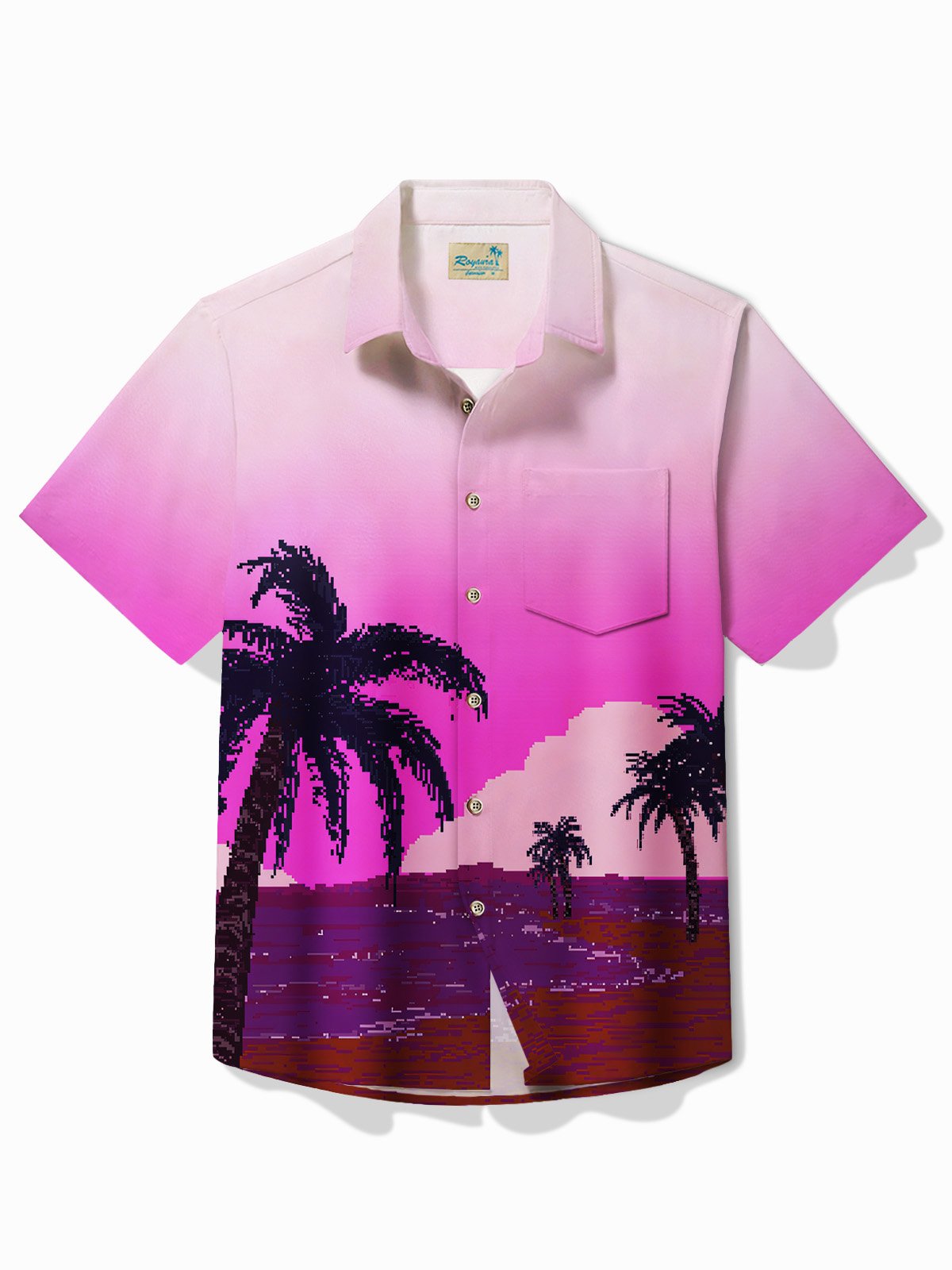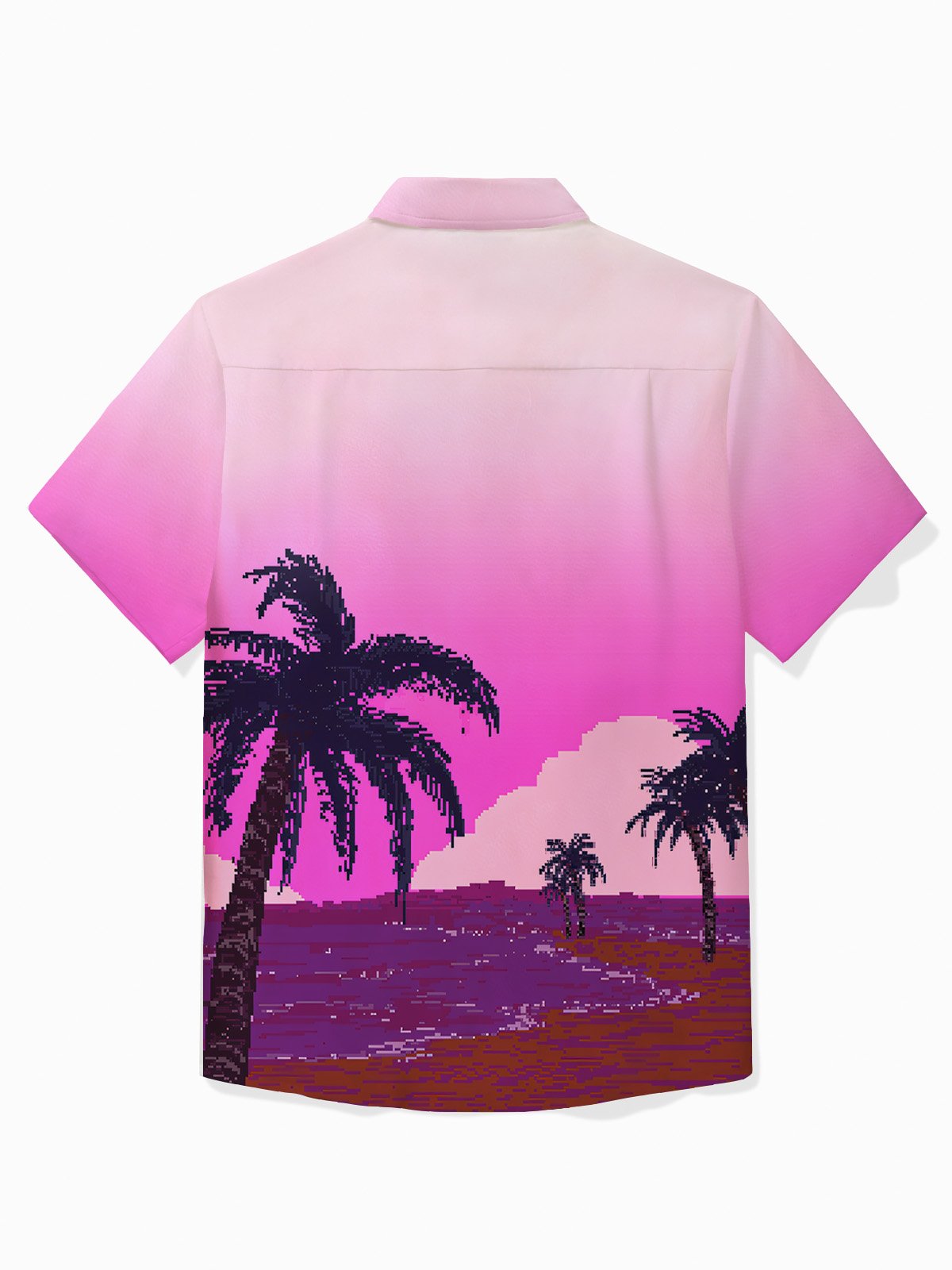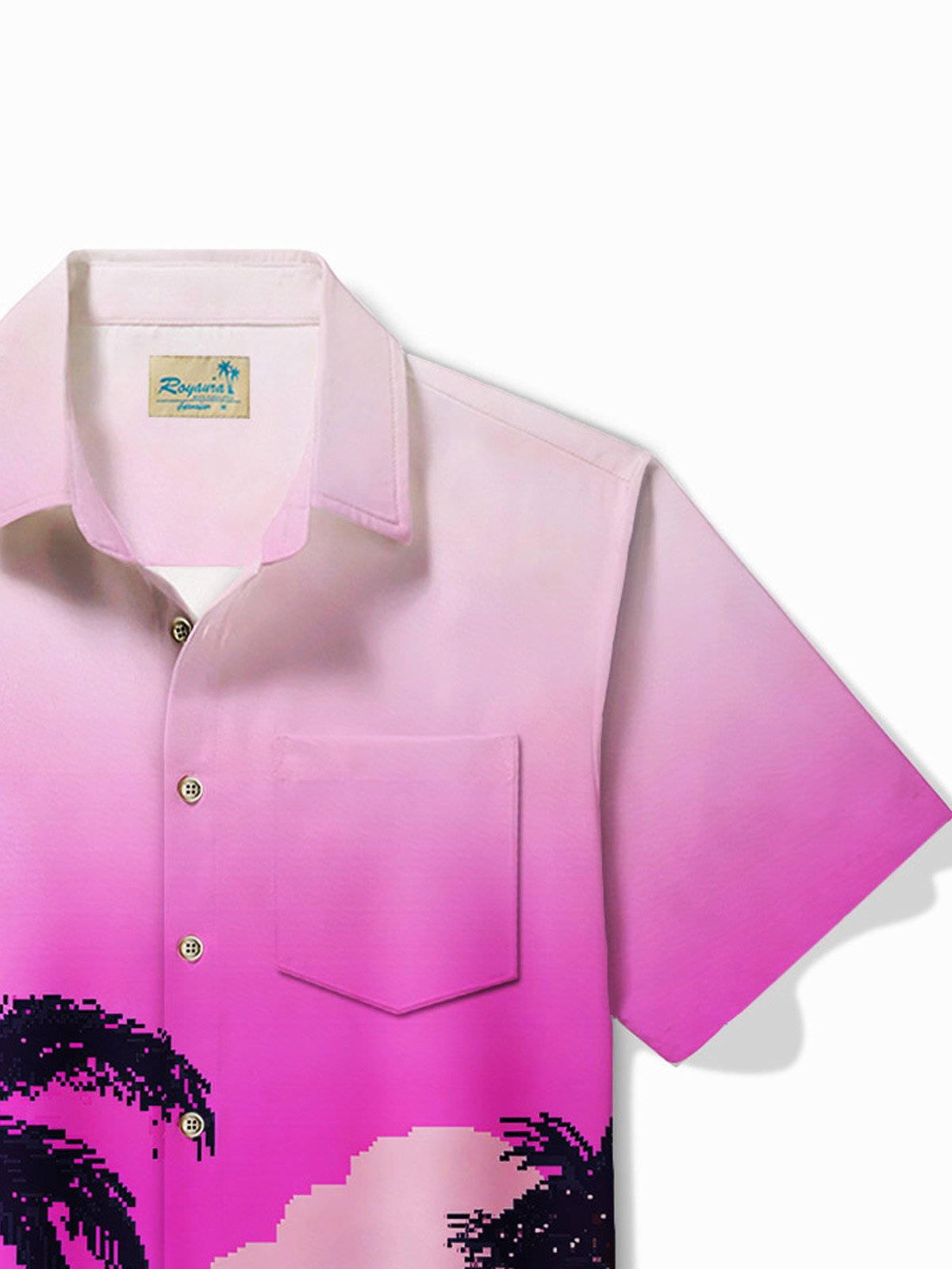 Camisa de manga corta con bolsillo abotonado para hombre con estampado de árbol de coco en degradado rosa hawaiano Alohadaddy