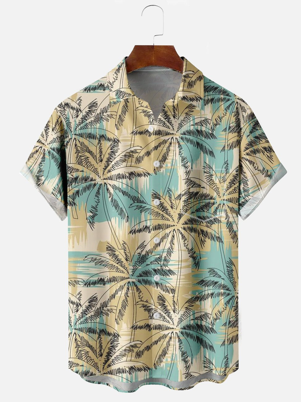 Camisas casuales de talla grande con estampado de cocoteros de color caqui de Alohadaddy