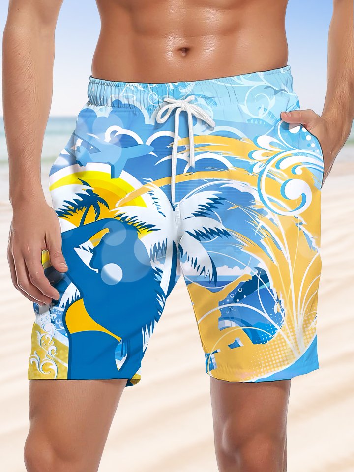 Alohadaddy Plants Coconut Trees Vacation Buttons Pockets Casual Shorts