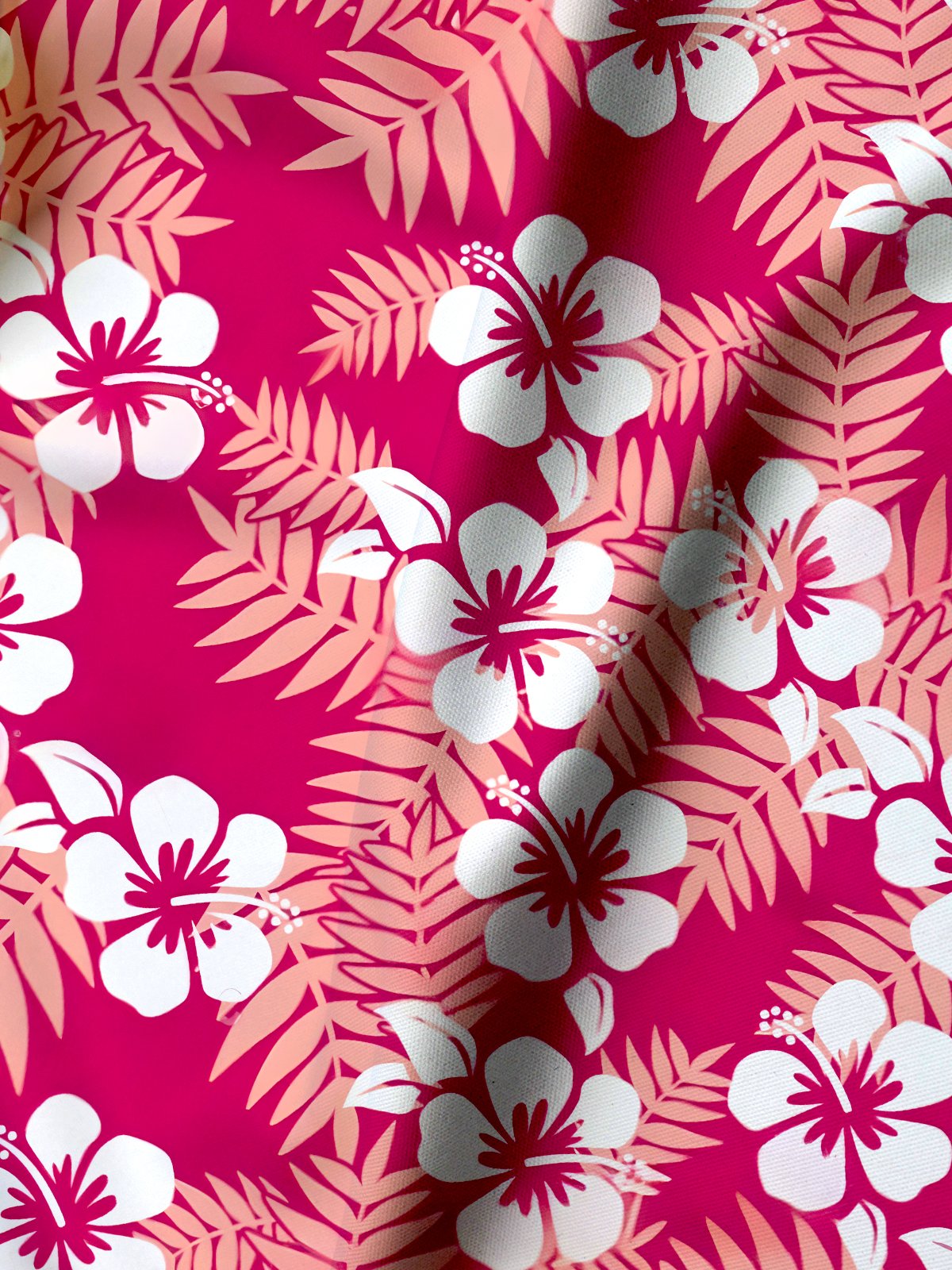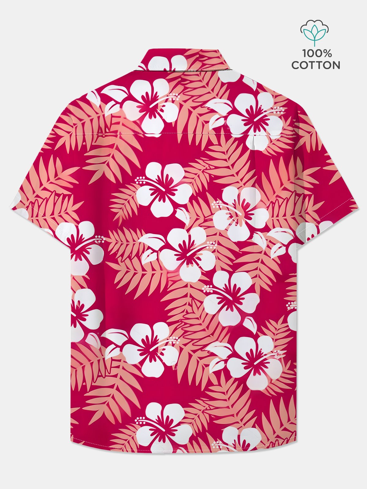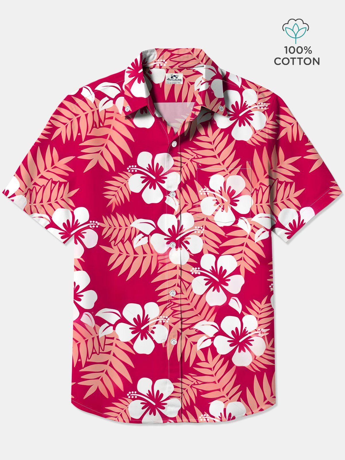 Alohadaddy® Cotton Hibiscus Flower Art Print Chest Pocket Cardigan Oversized Long Hawaiian Short Sleeve Shirt
