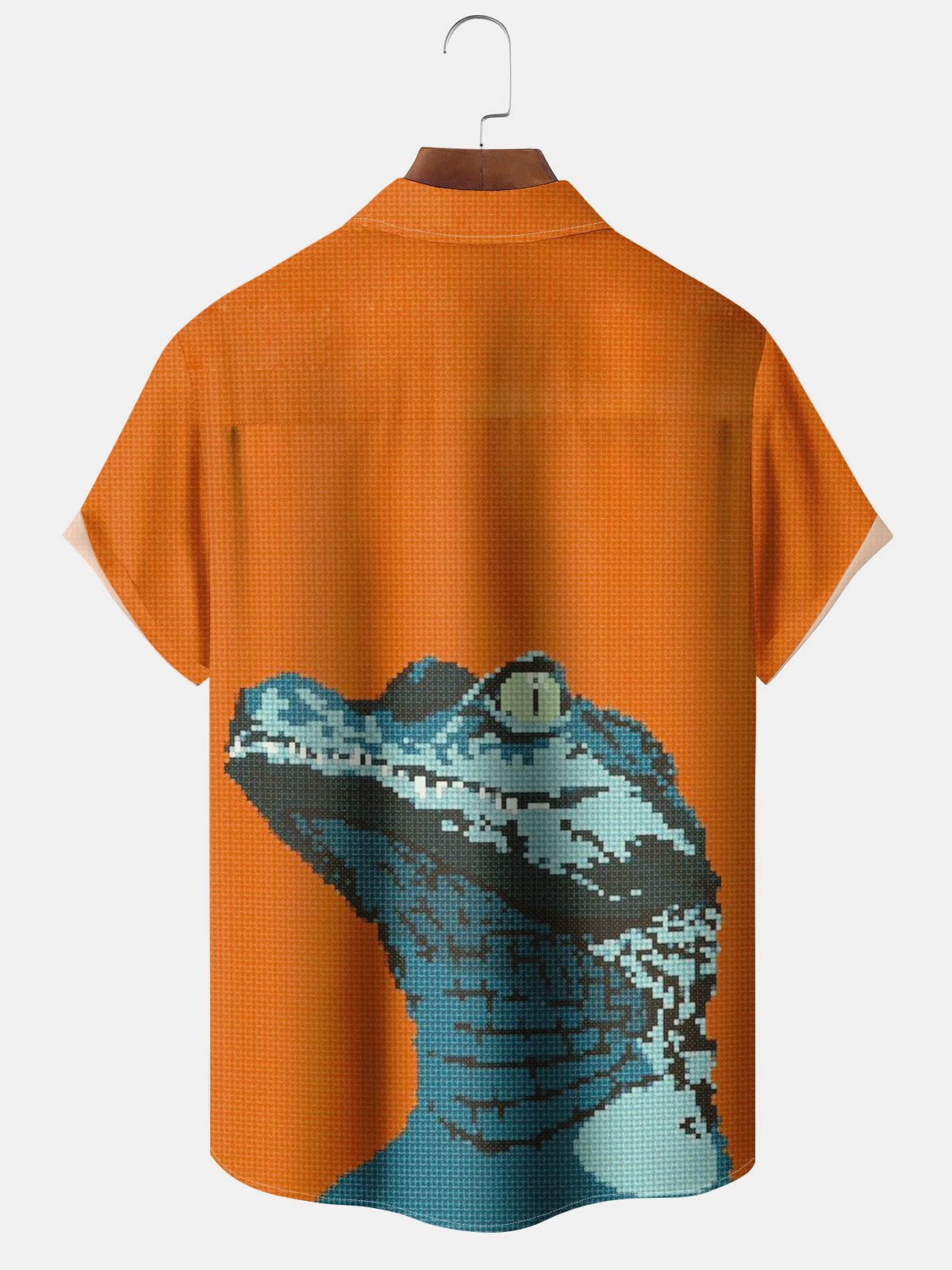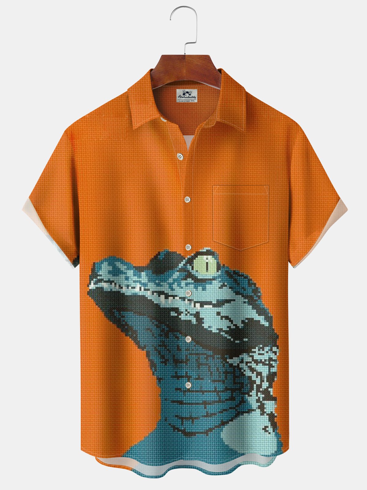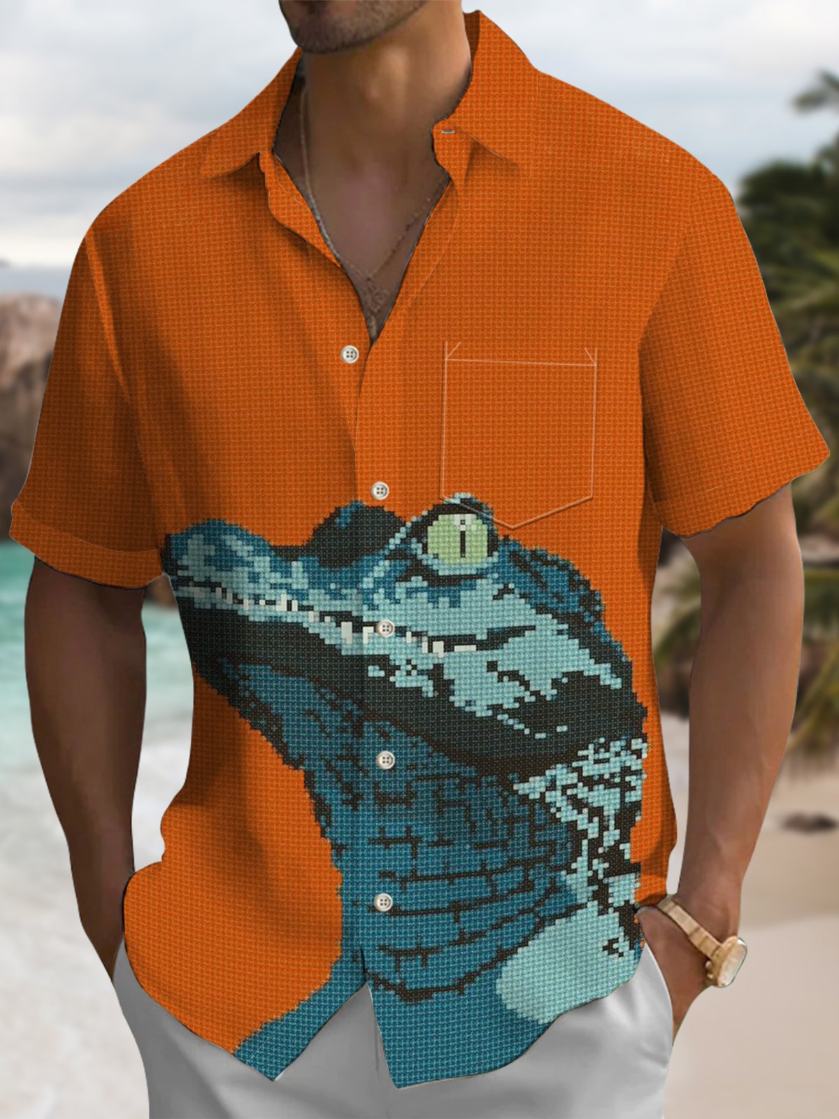 Alohadaddy® Men's Casual Crocodile Print Pocket Stretch Button Short Sleeve Shirt Big & Tall