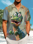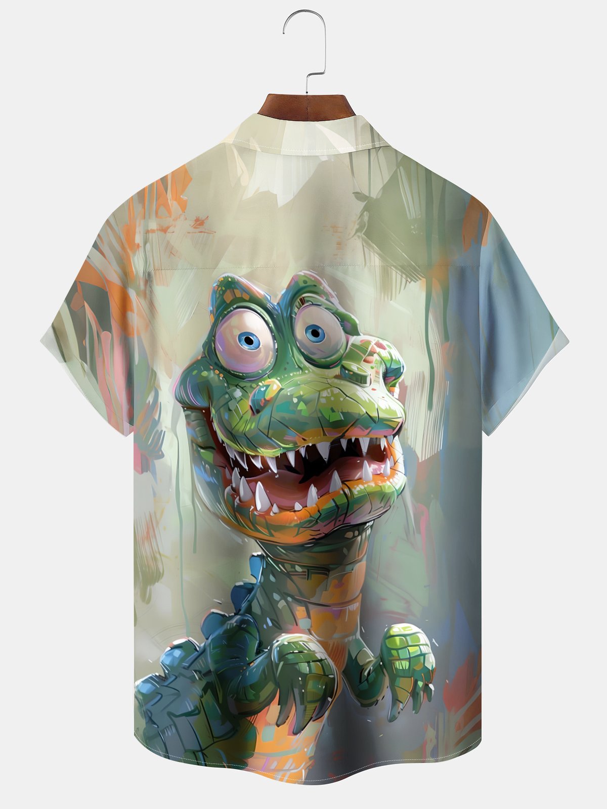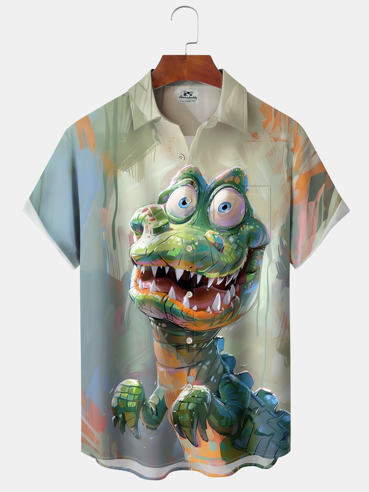 Alohadaddy Casual Crocodile Ink Painting Art Button Cardigan Pocket Elastic Large Size Long Short Sleeve Shirt