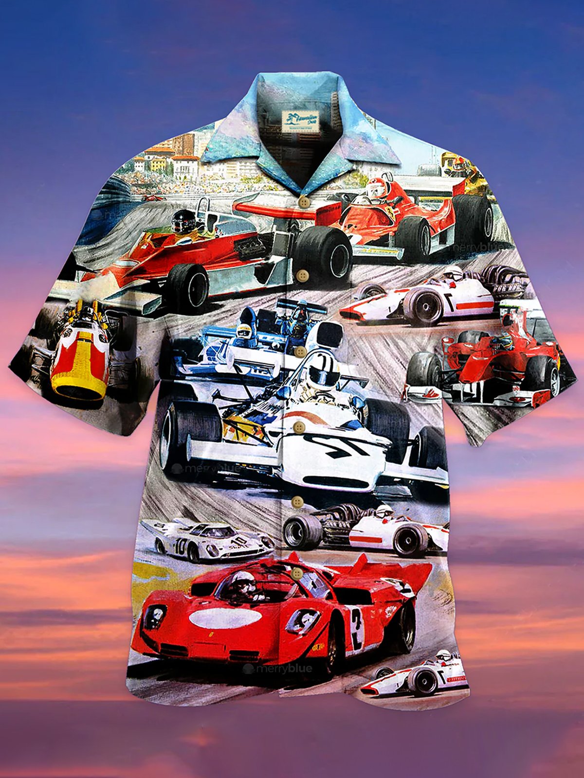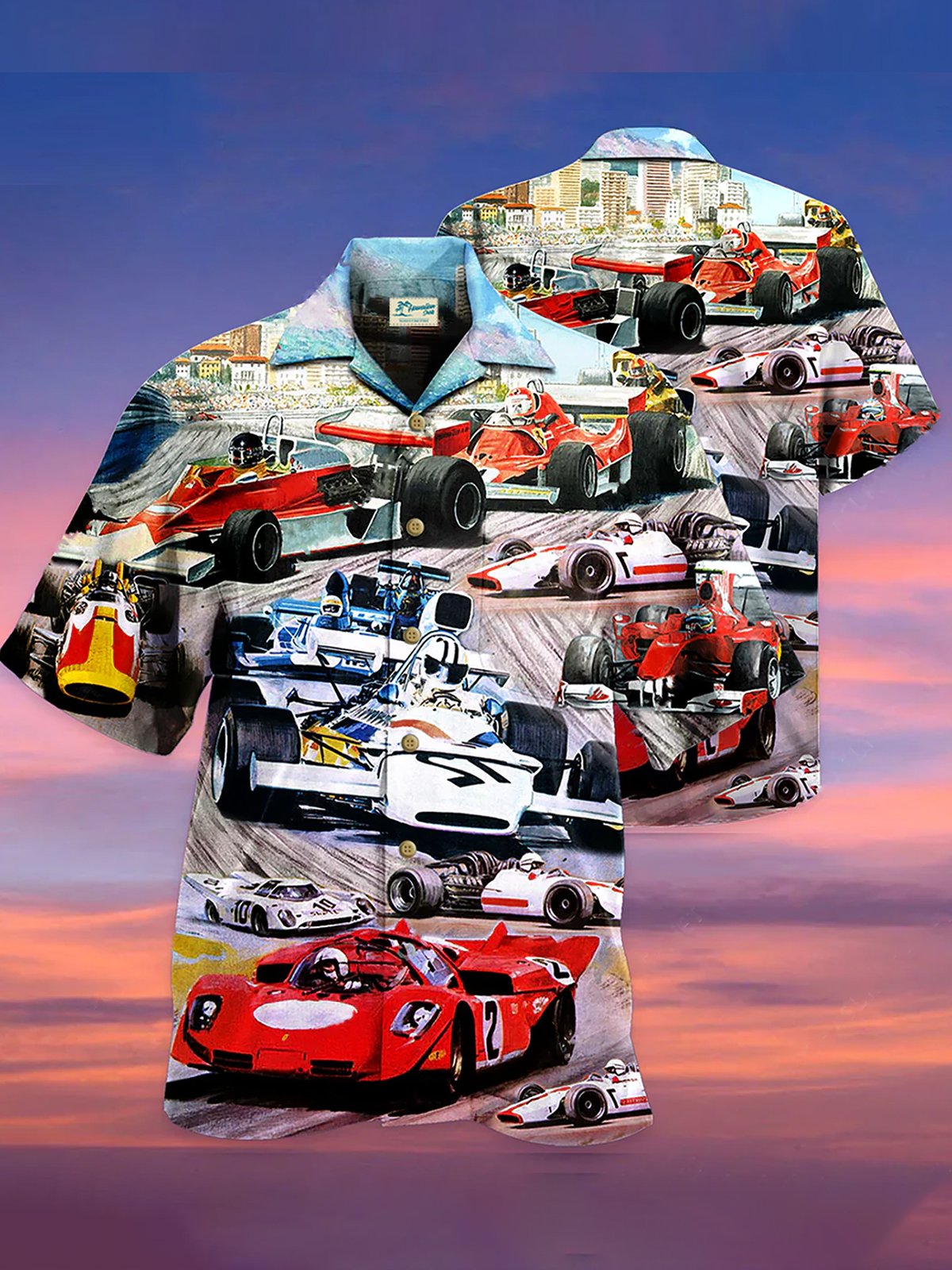Camisa hawaiana de Fórmula Racing para hombre, camisas hawaianas de gran tamaño y elásticas con botones
