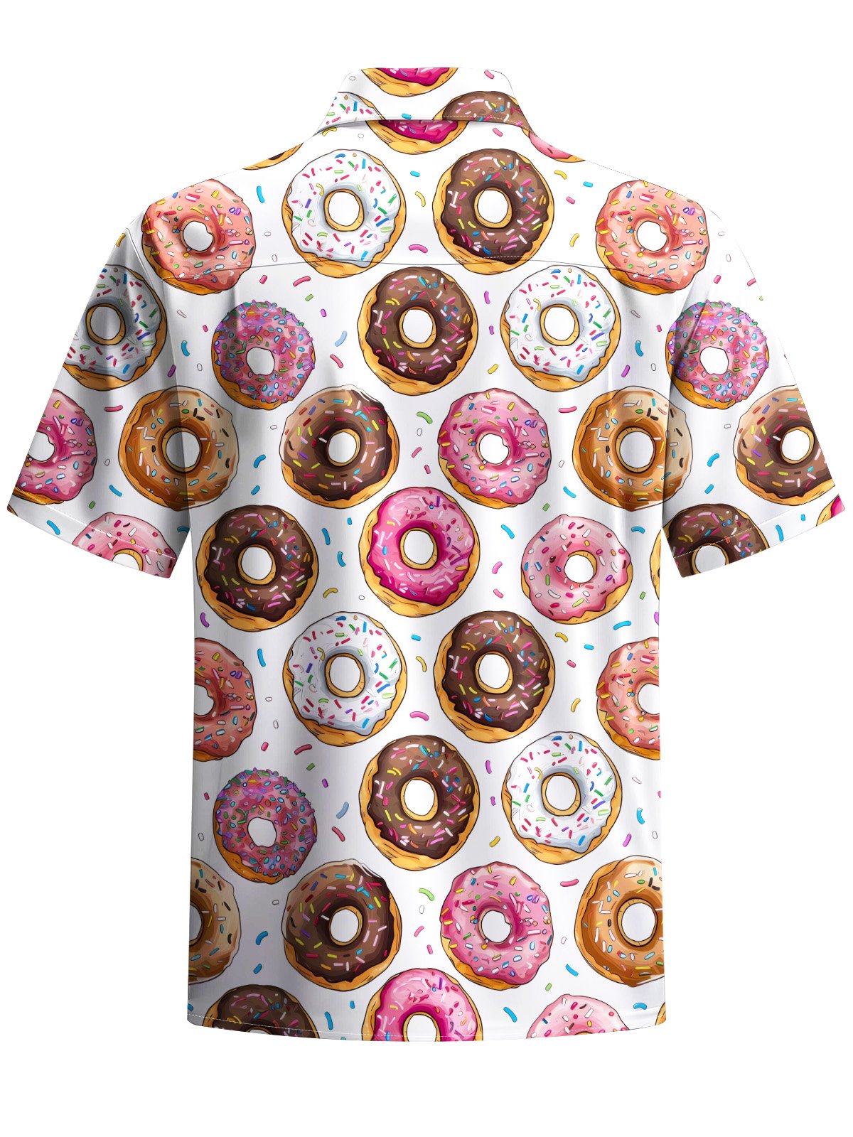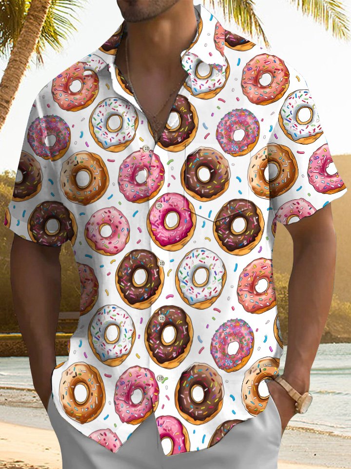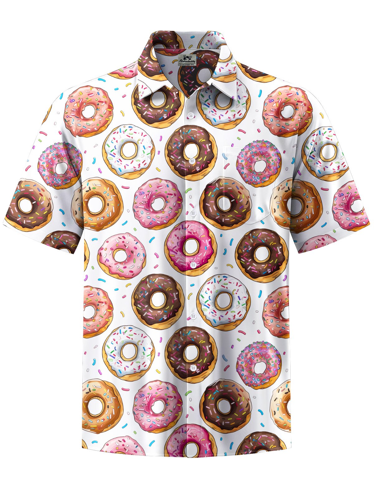 Alohadaddy® Hawaiian Casual Donuts Print Art Chest Pocket Mens Short Sleeve Shirts Big & Tall
