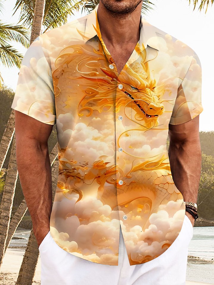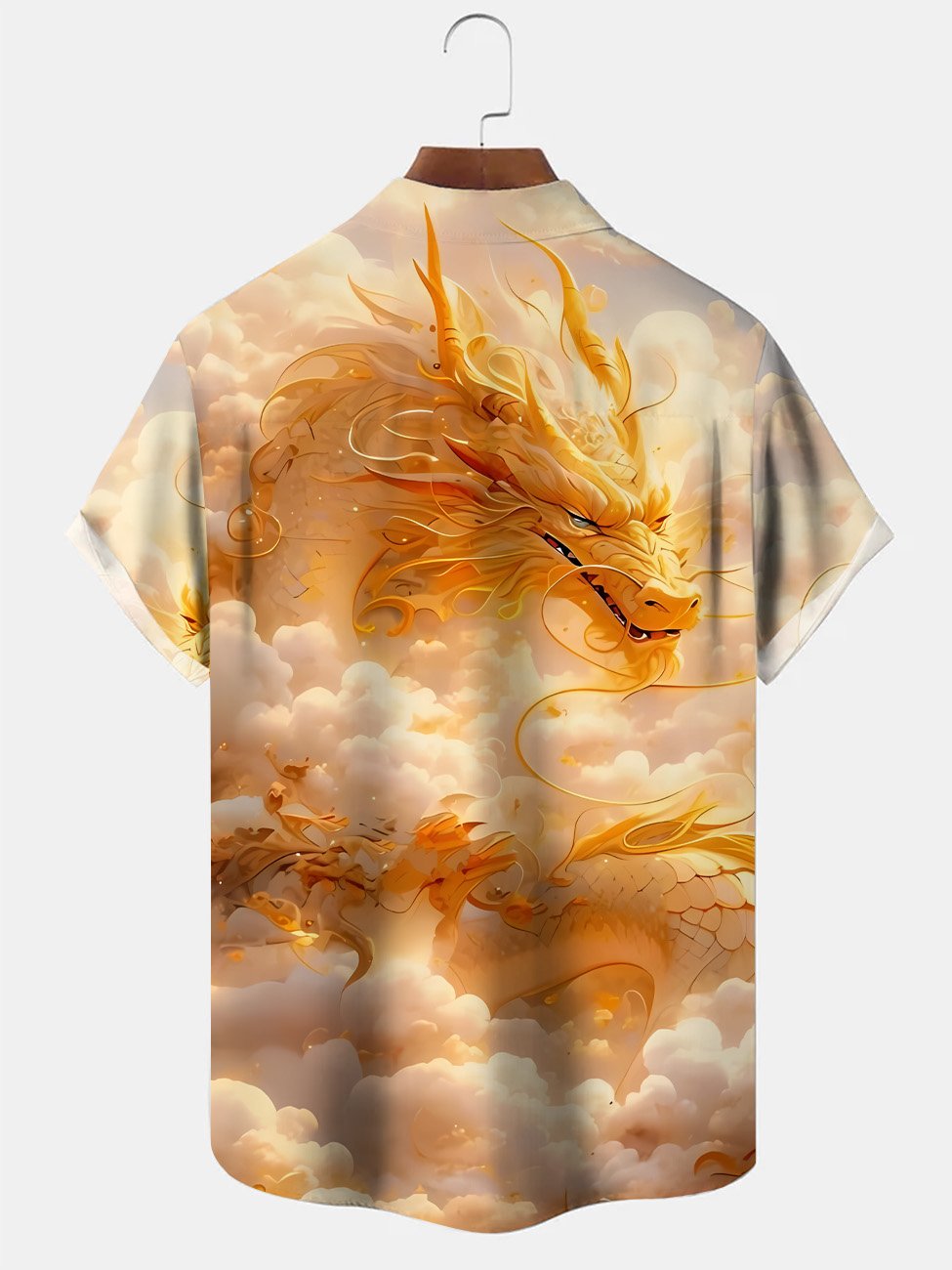Camisa casual de manga corta con botones para hombre Alohadaddy Sky Clouds Dragon