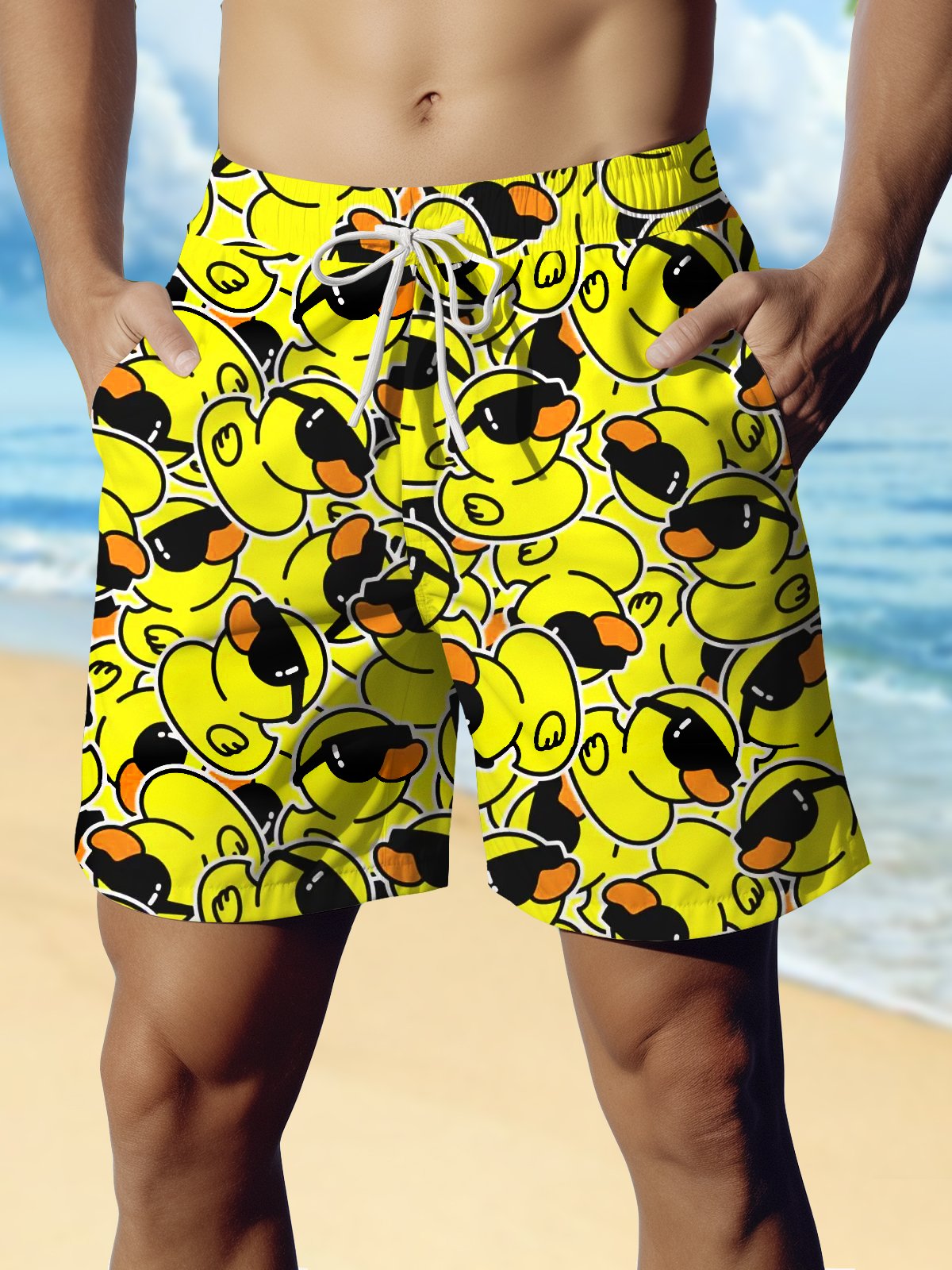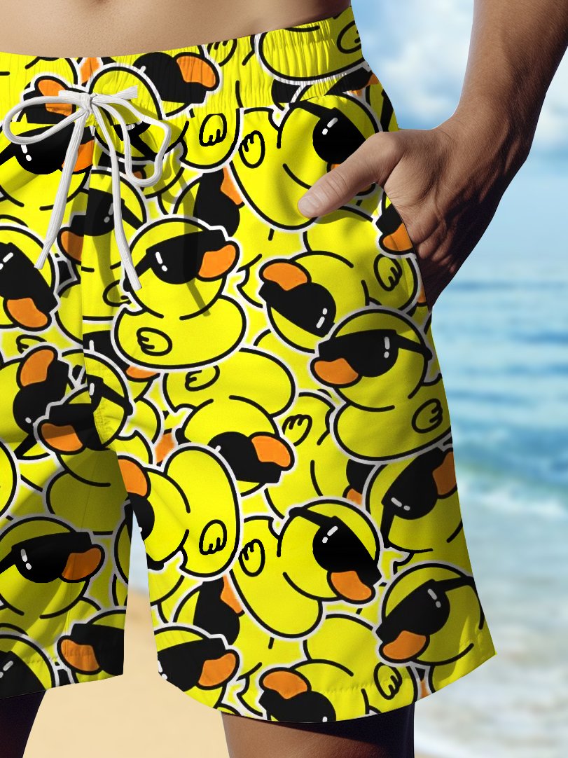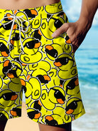 Pantalones cortos de playa para hombre con estampado hawaiano de pato amarillo Alohadaddy