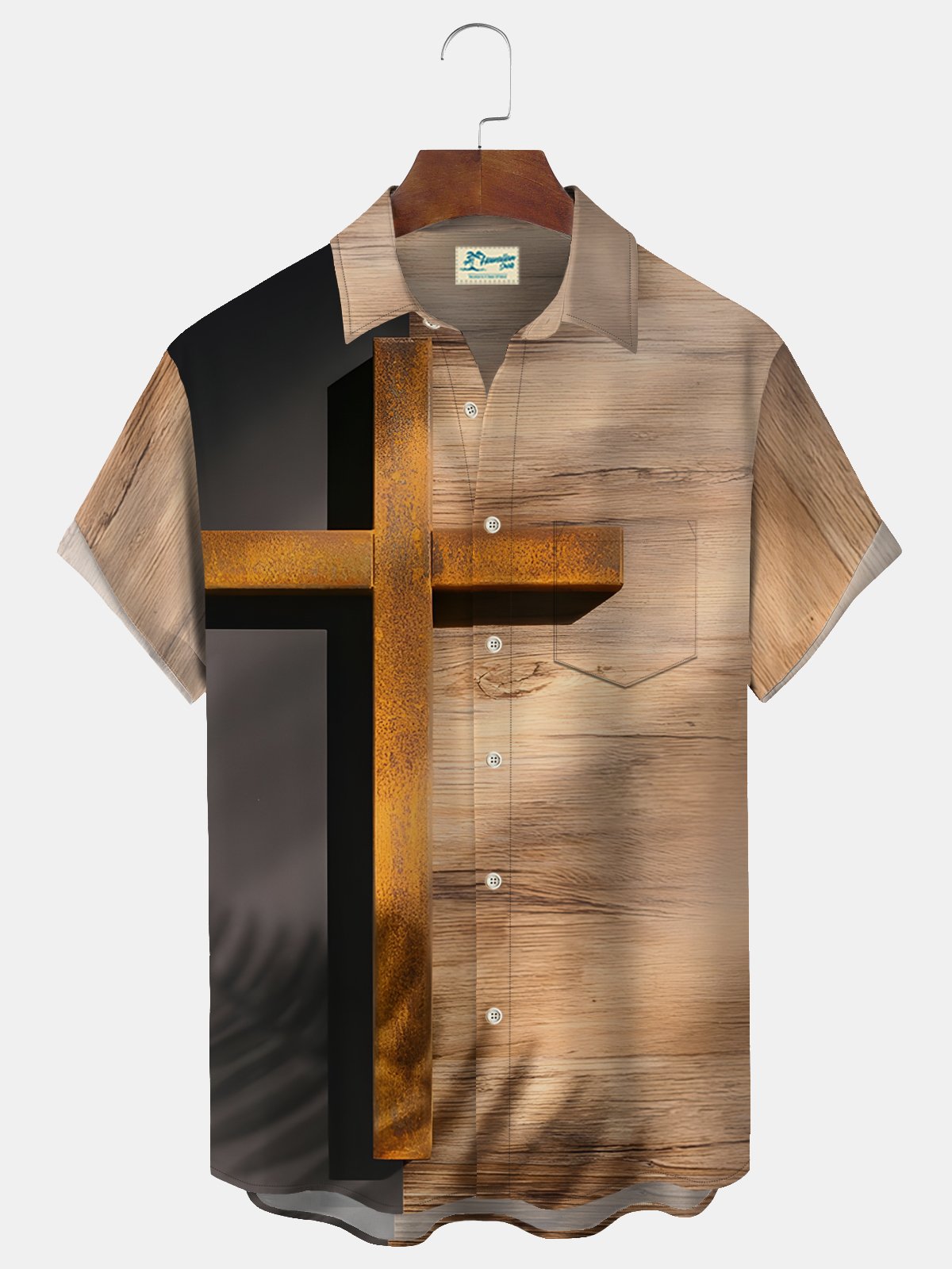 Camisa de hombre color caqui con diseño de cruz de Pascua de Alohadaddy, camisa de festival con bolsillo de fácil cuidado, talla grande