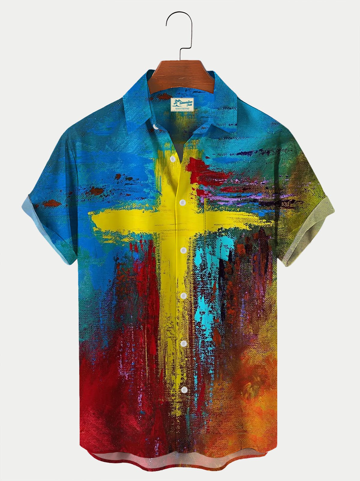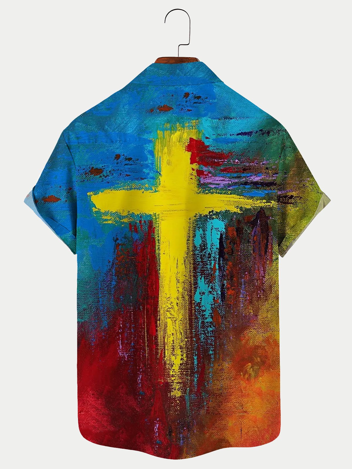 Camisa hawaiana personalizada con estampado artístico de cruz cristiana para hombre, camisa transpirable de talla grande