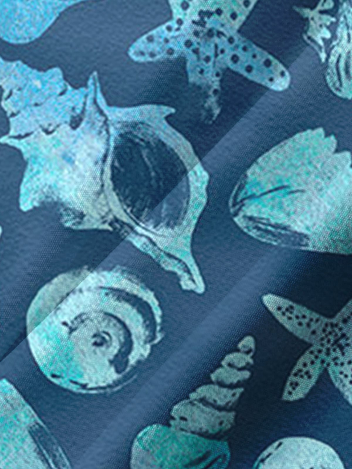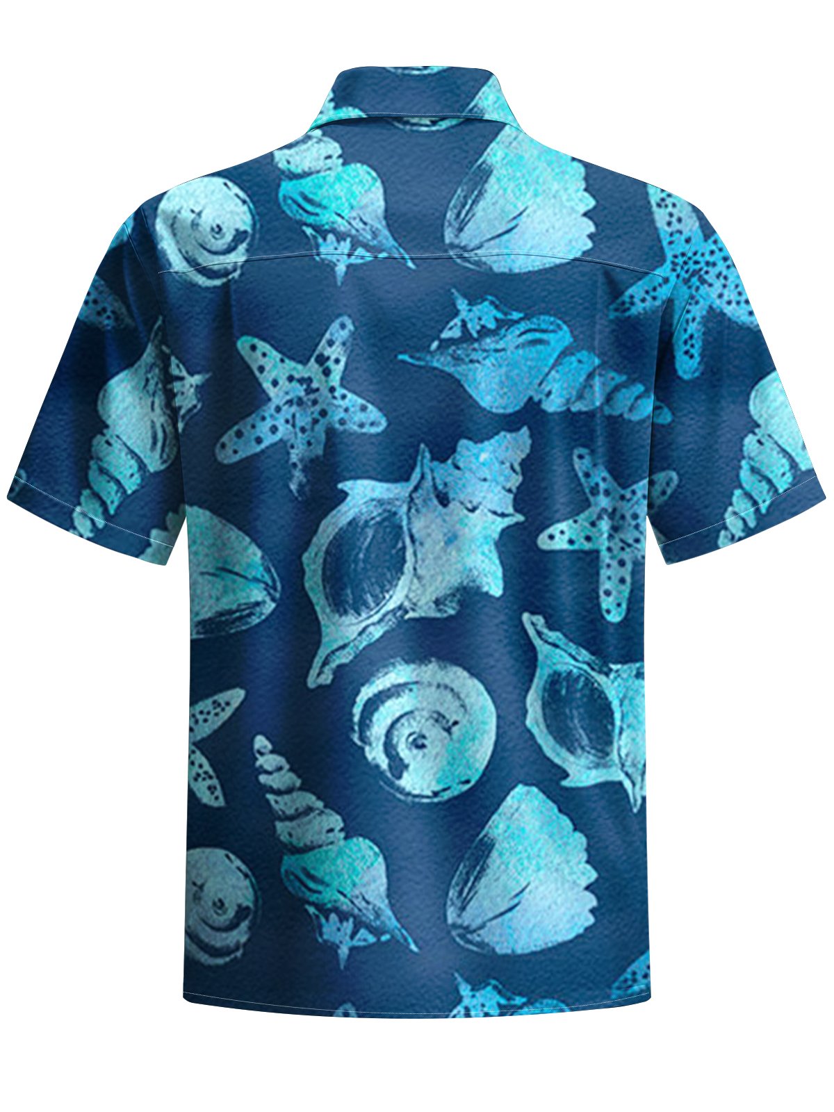 Alohadaddy® Hawaiian Conch Art Print Chest Pocket Men's Short Sleeve Shirt Big & Tall