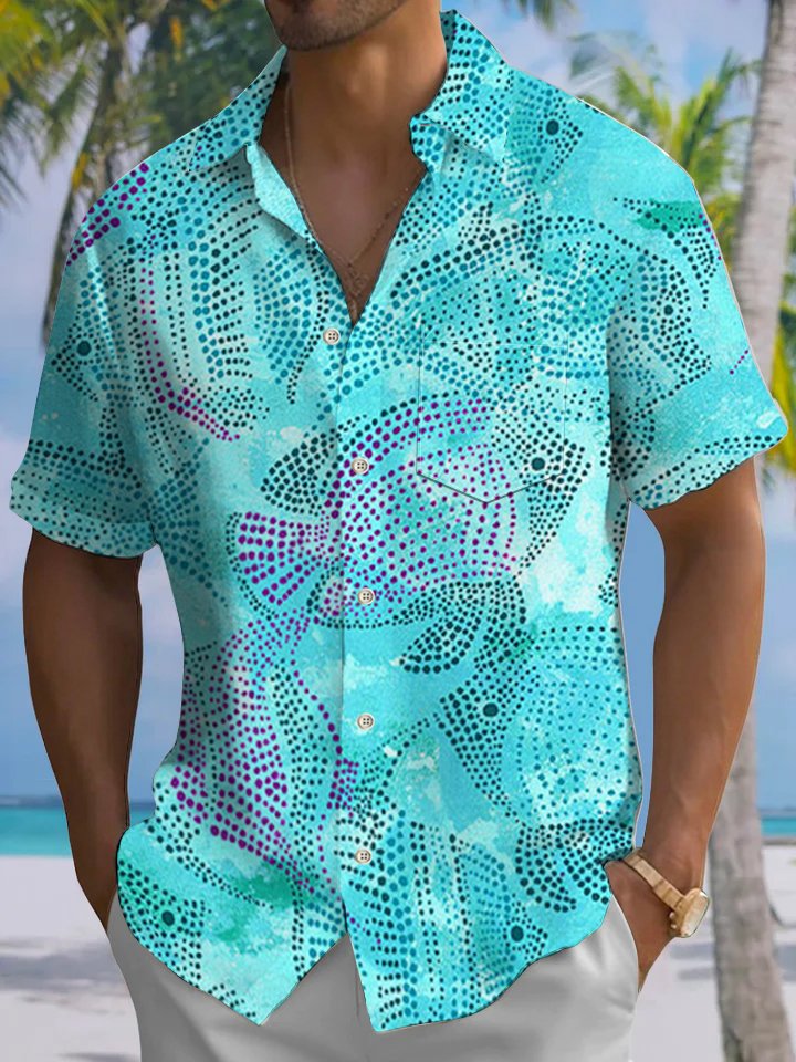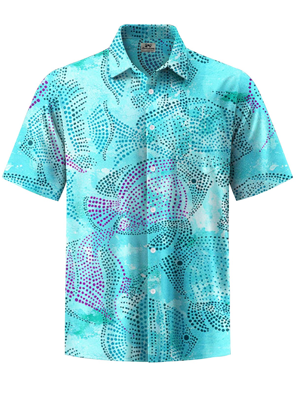 Alohadaddy® Hawaiian Fish Art Print Chest Pocket Men's Short Sleeve Shirt Big & Tall