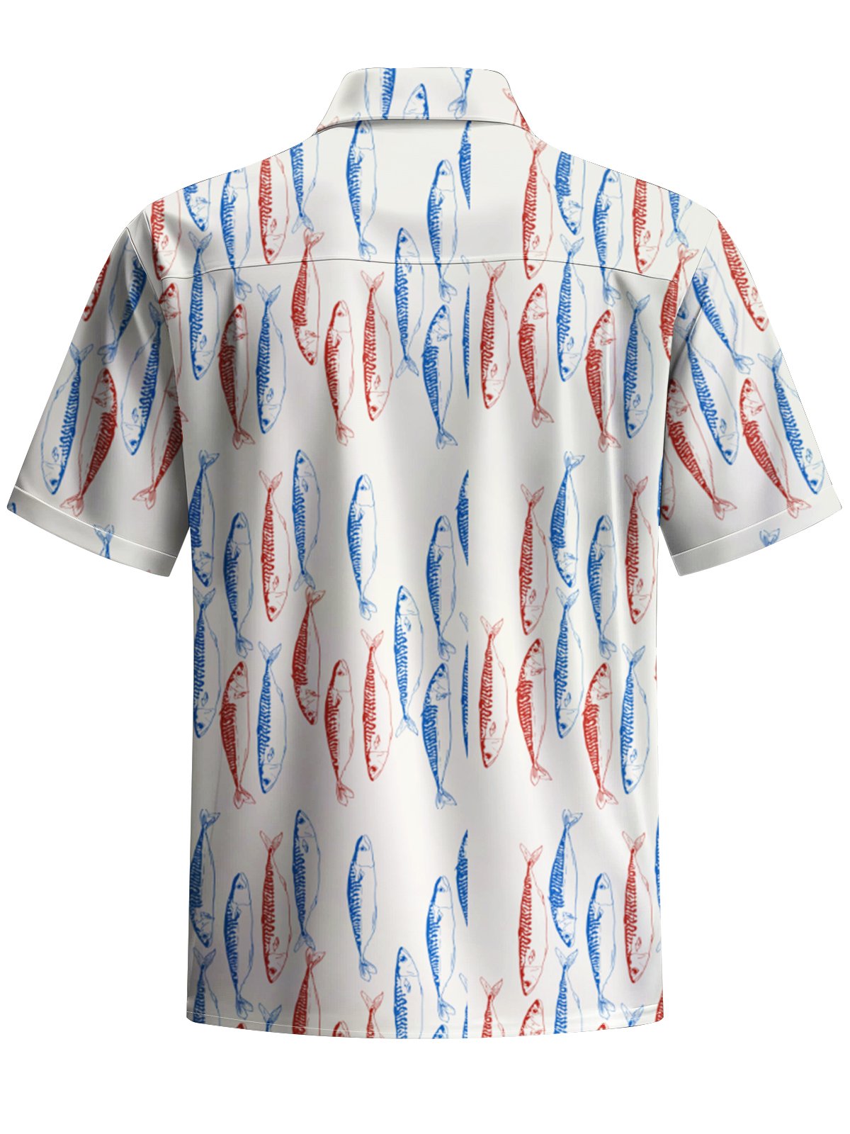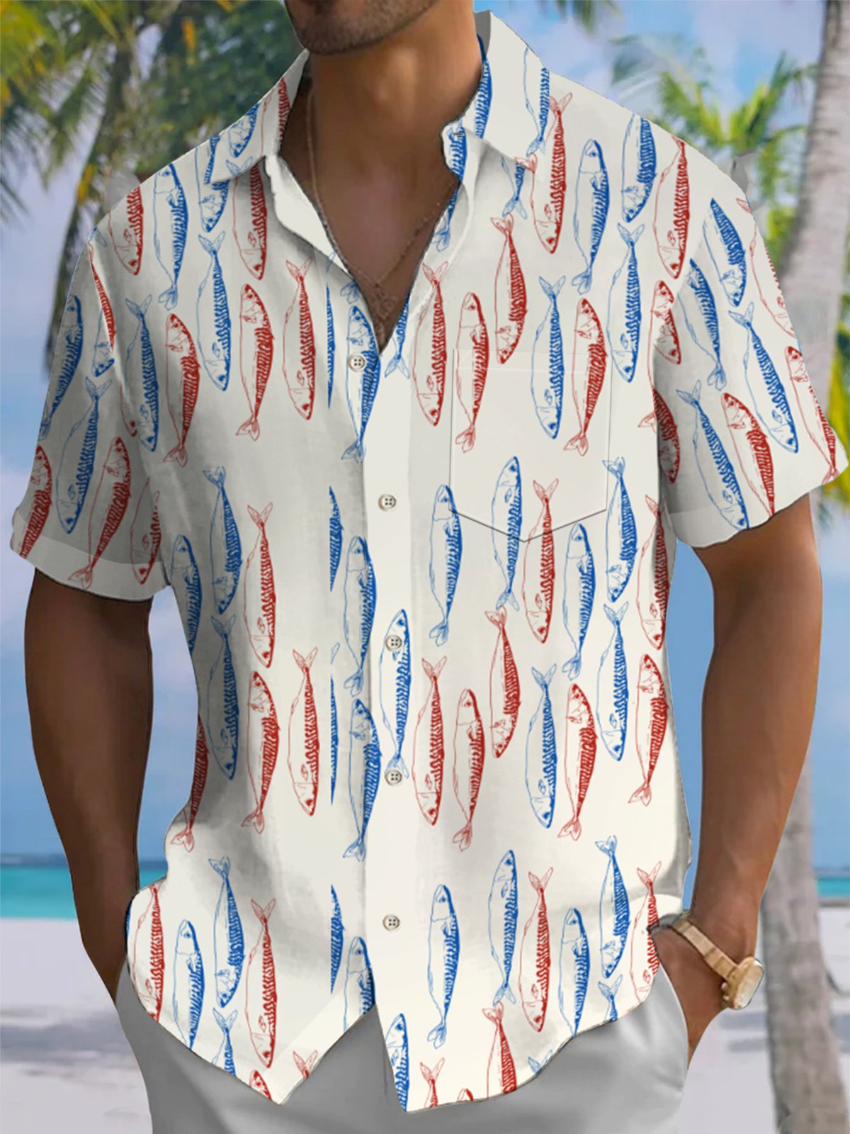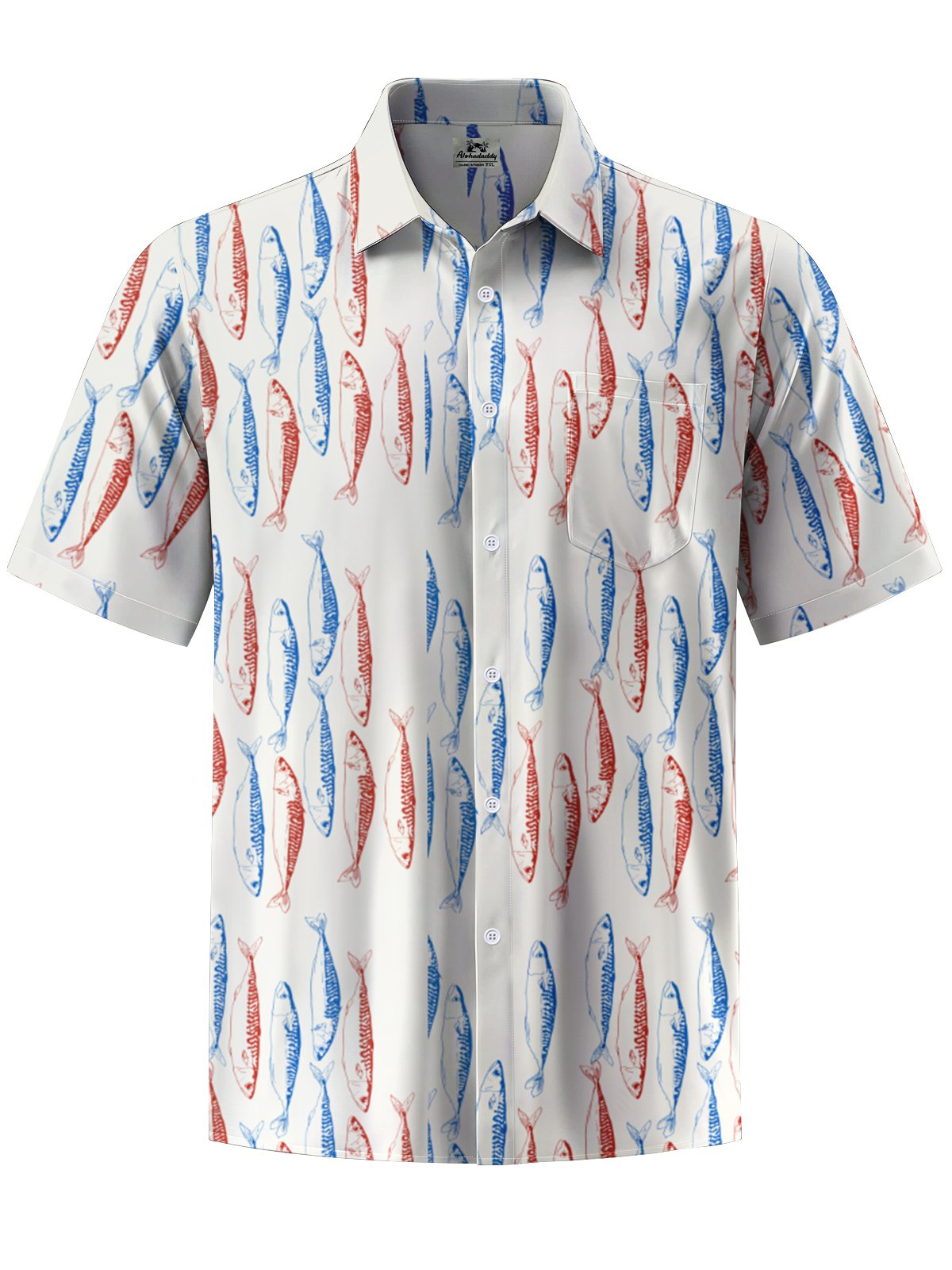 Alohadaddy® Men's Casual Fish Printed Art Pocket Stretch Short Sleeve Shirt Big & Tall