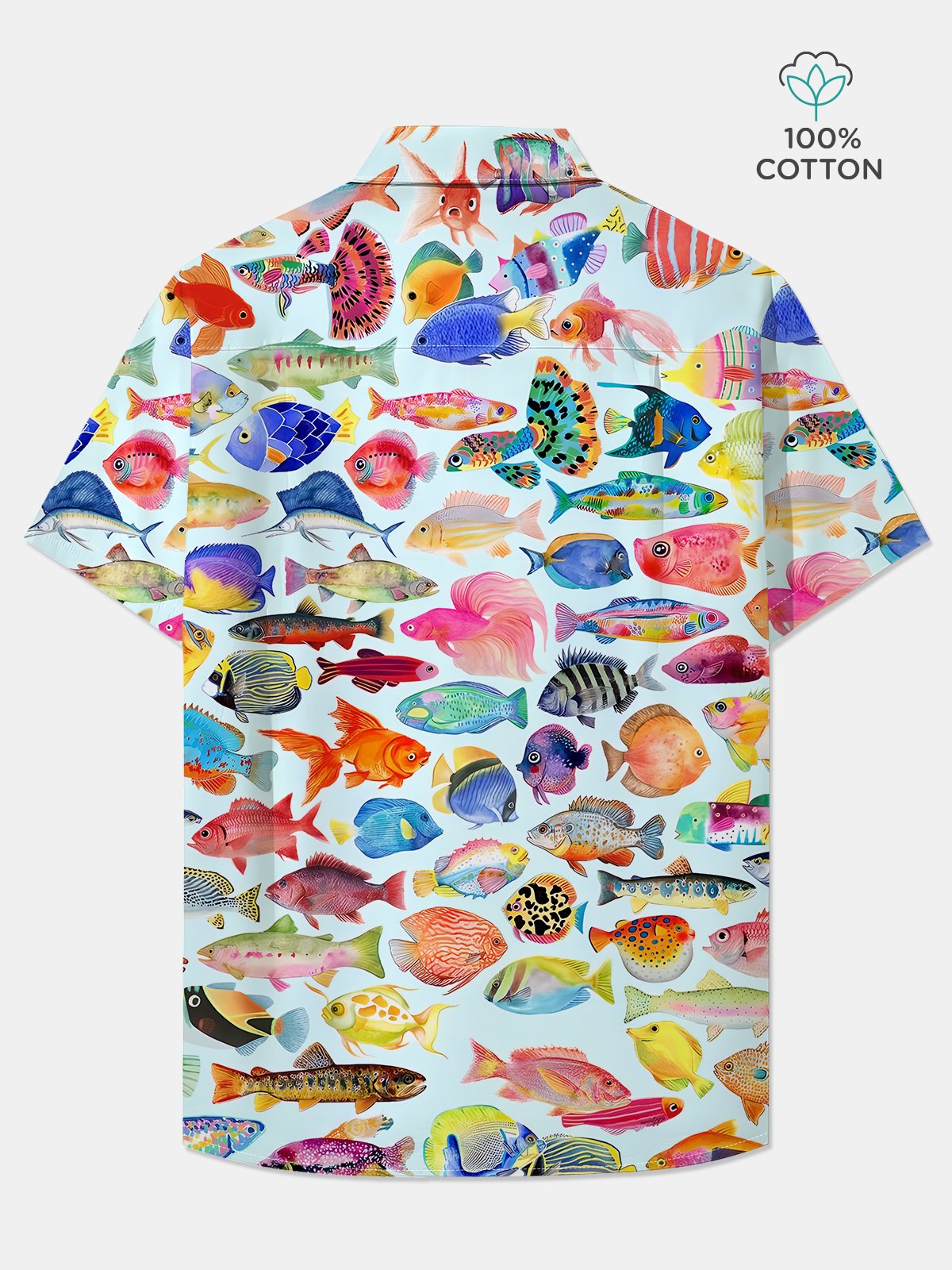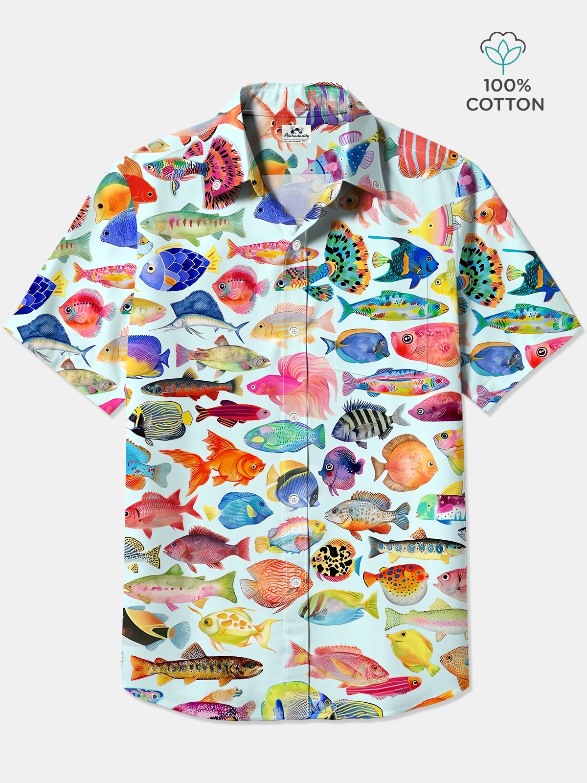 Alohadaddy Cotton Ocean Fish Art Print Moisture Wicking Chest Pocket Cardigan Hawaiian Oversized Short Sleeve Shirt