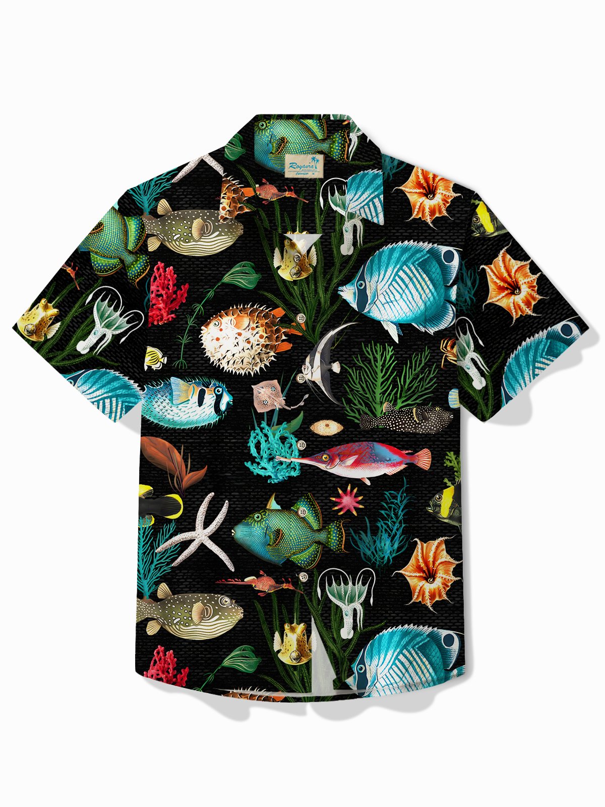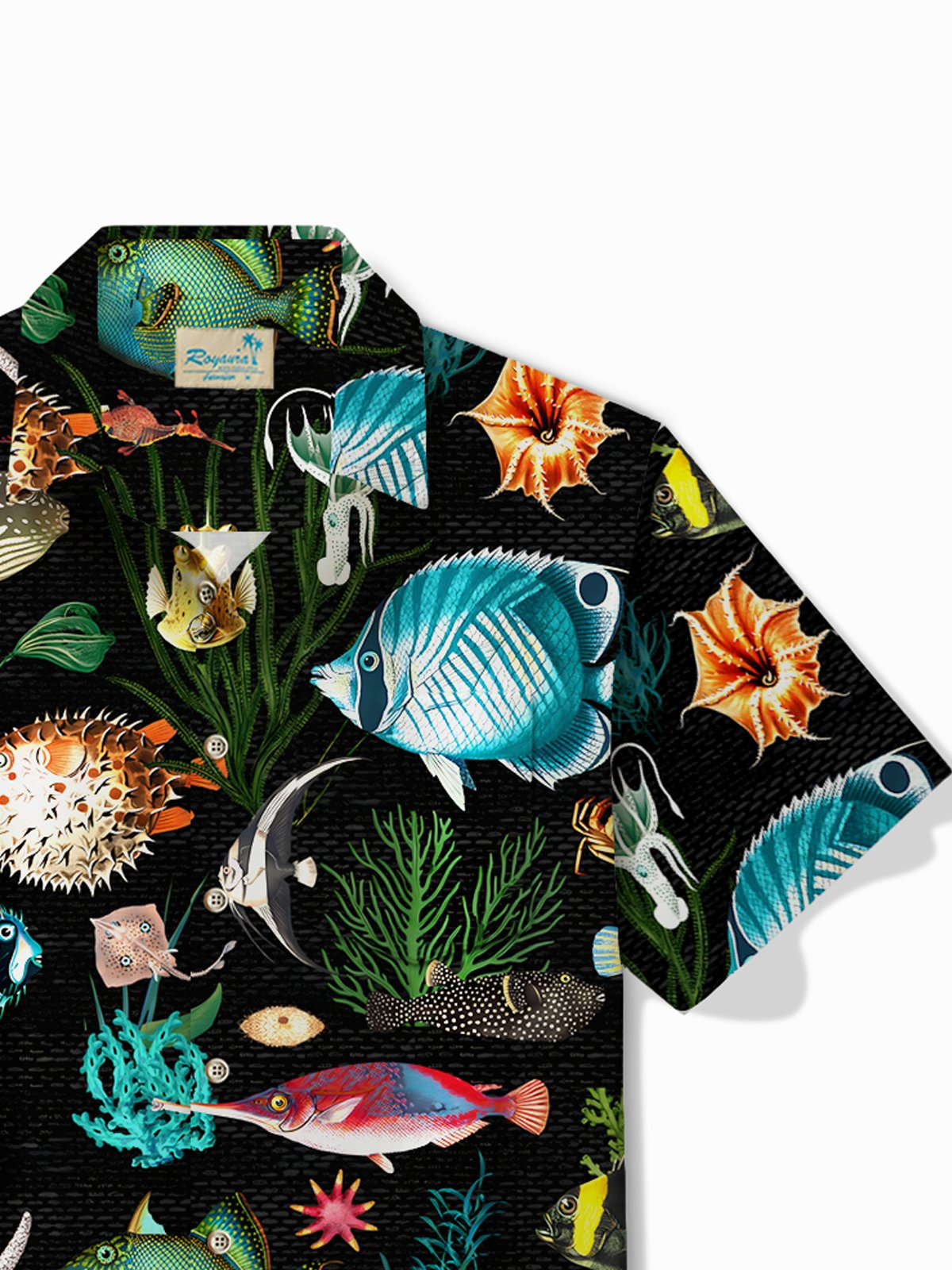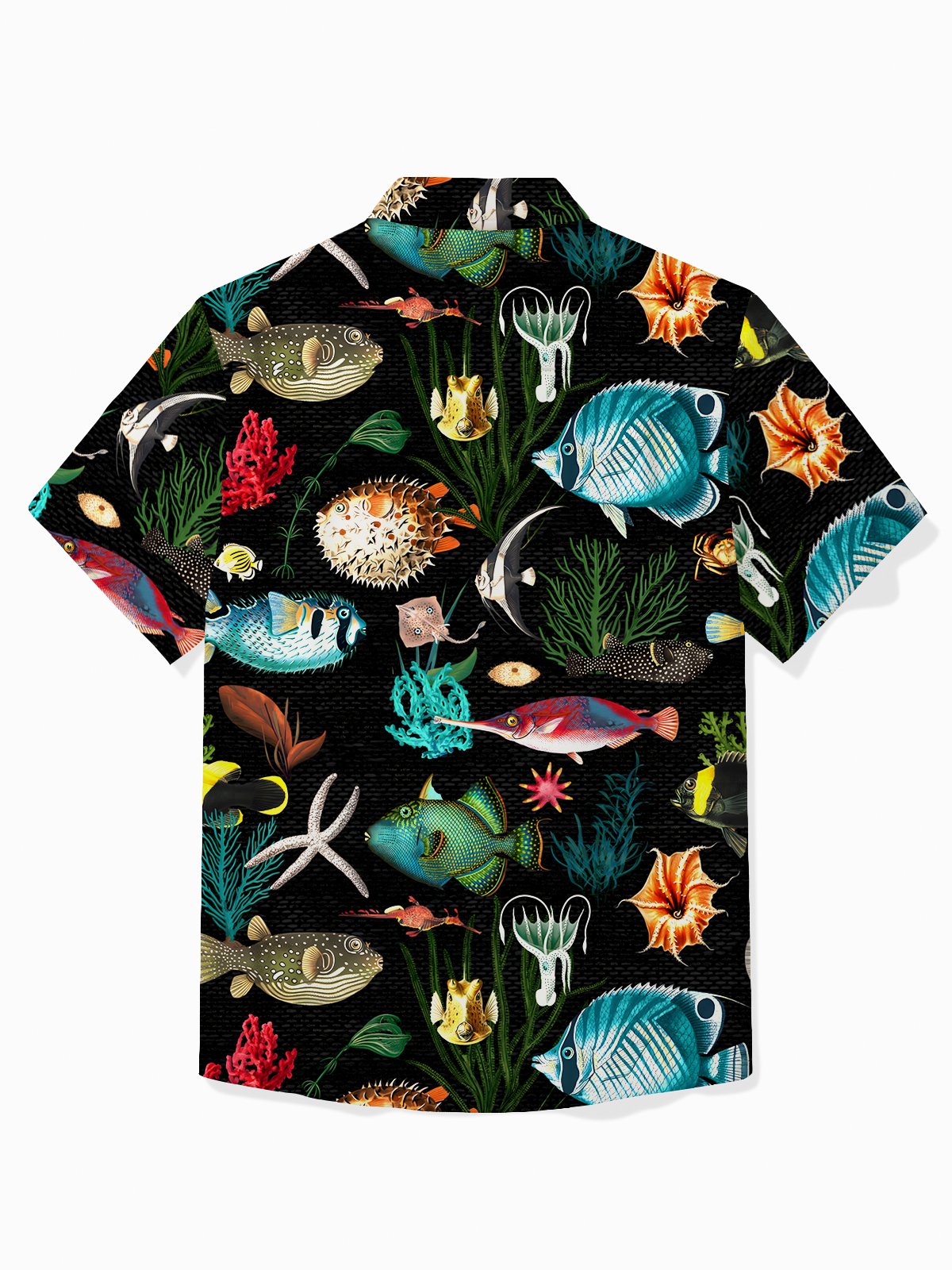 Camisa de manga corta con bolsillo abotonado y estampado de peces marinos de Hawaii de Alohadaddy para hombre
