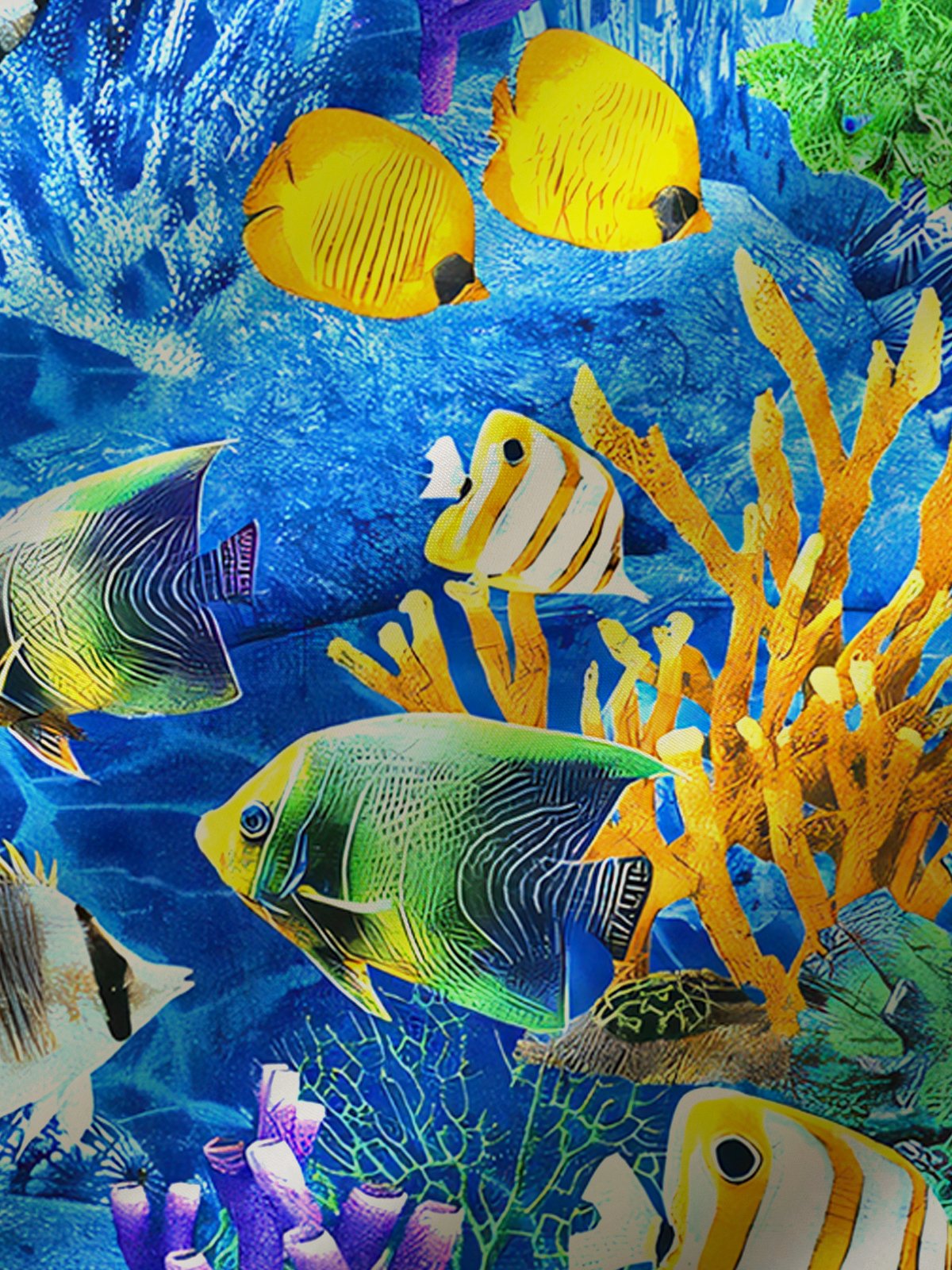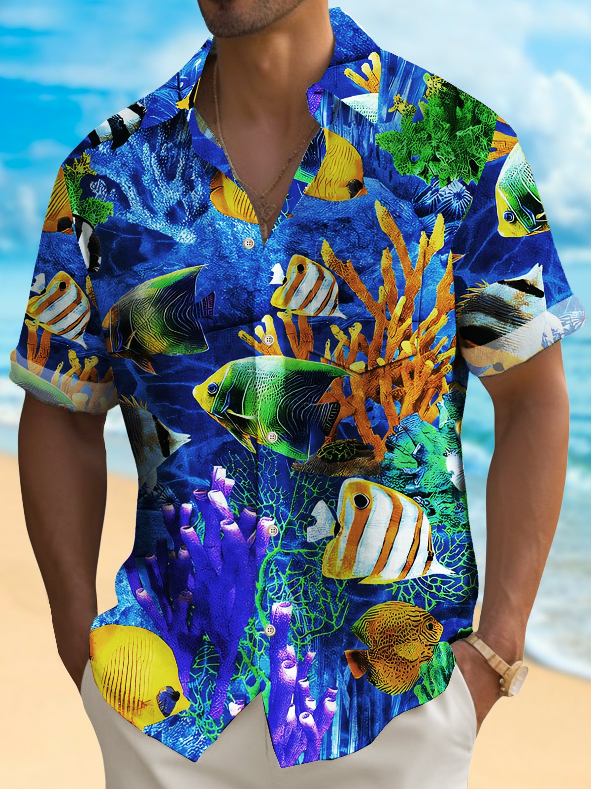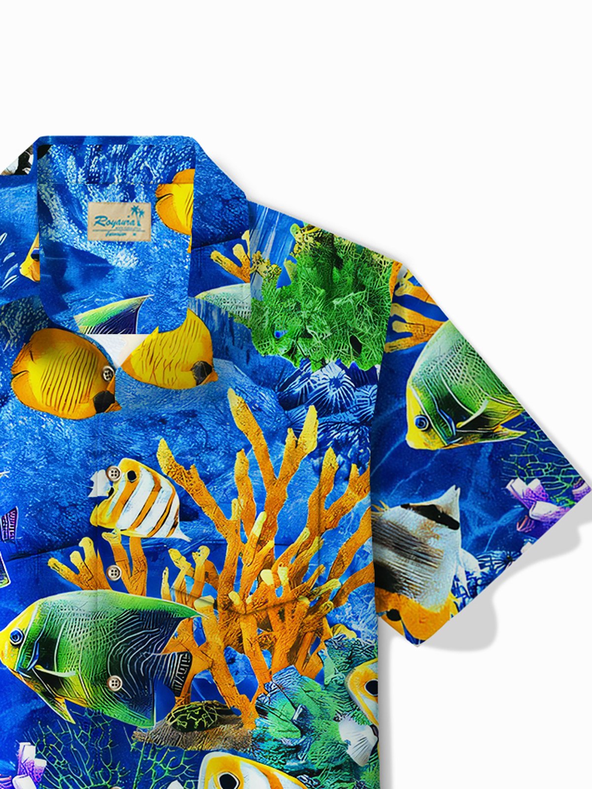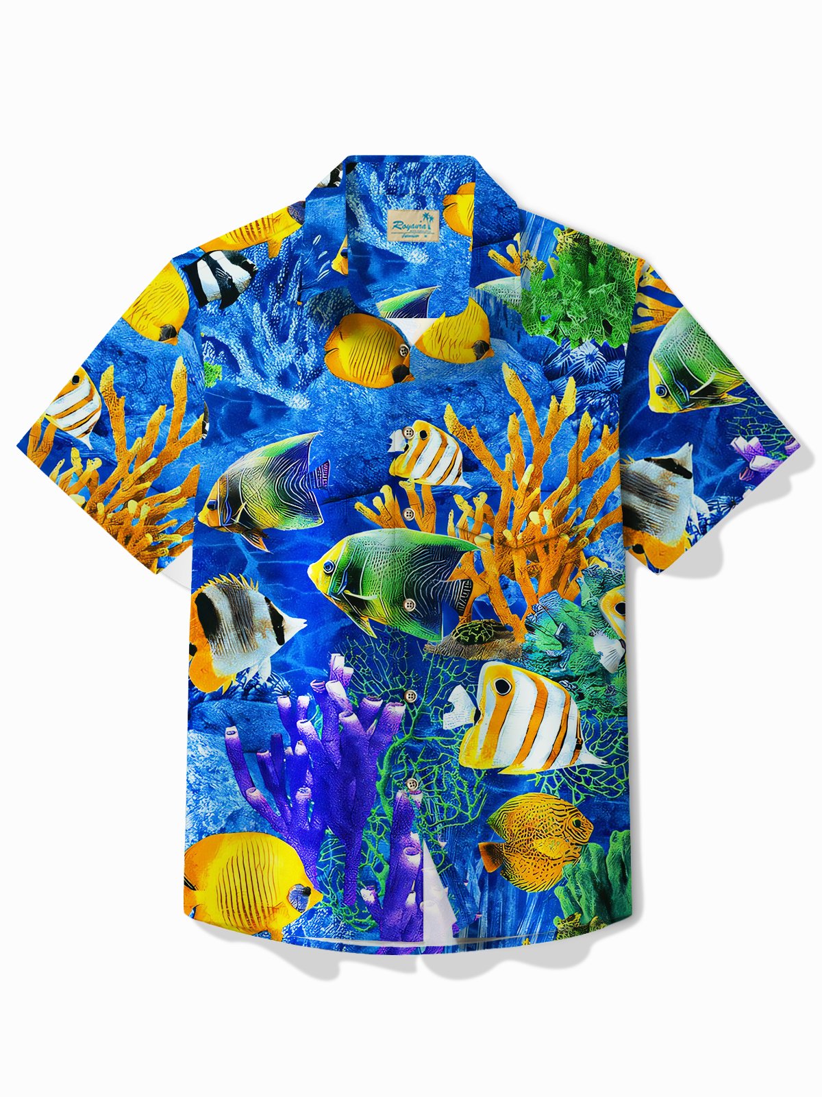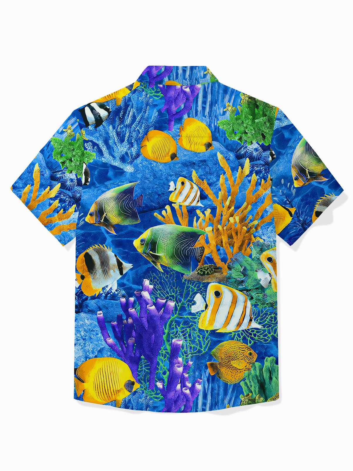 Camisa de manga corta con bolsillo abotonado para hombre con estampado de peces marinos hawaianos de Alohadaddy