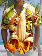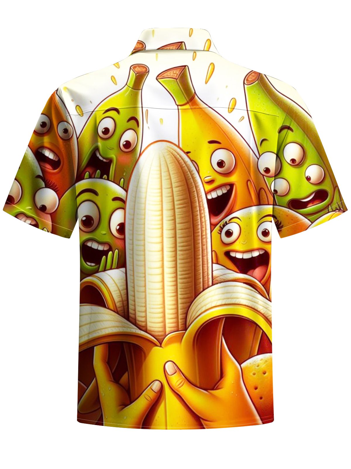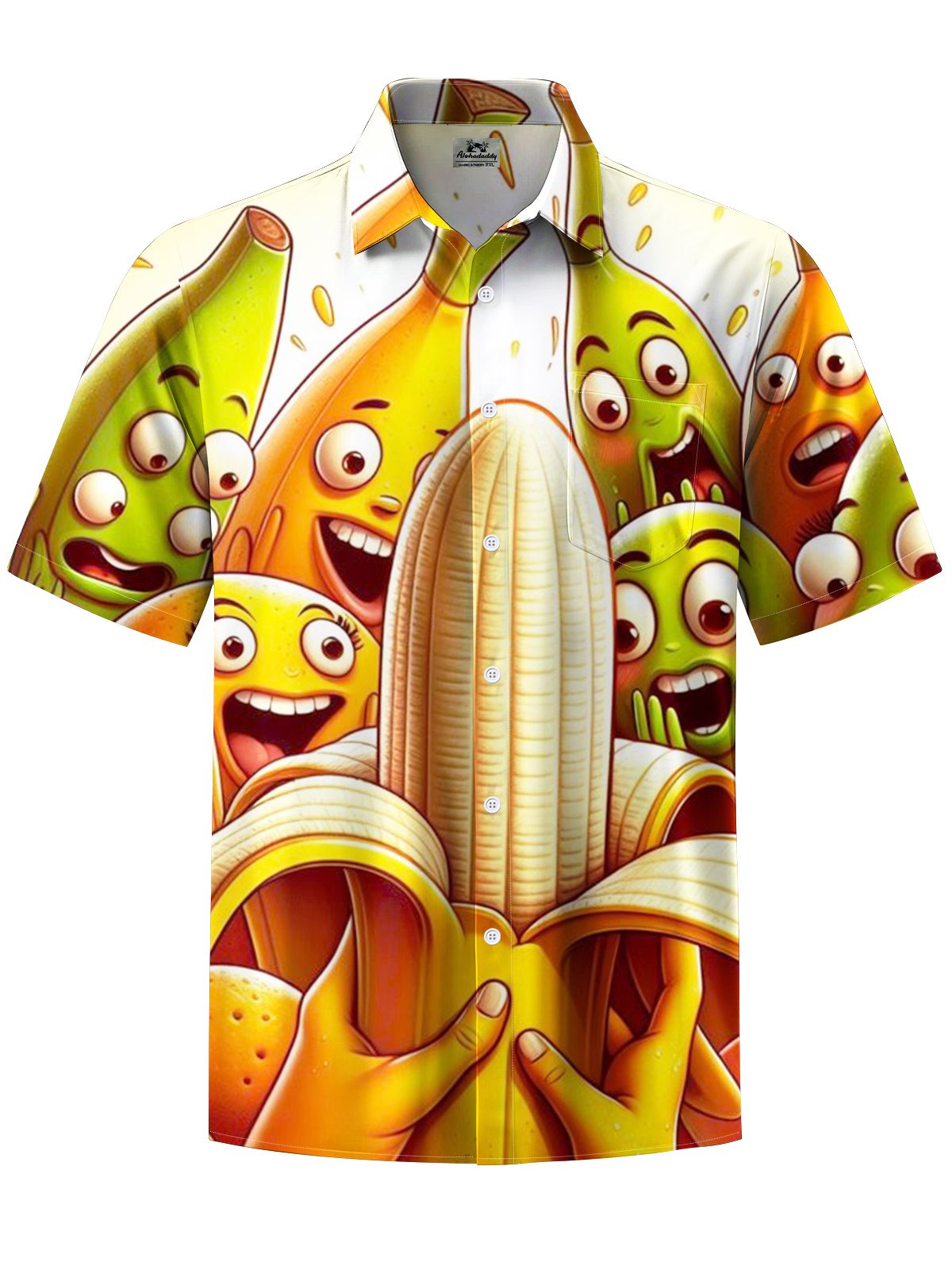 Alohadaddy® Casual Cartoon Fun Print Art Chest Pocket Men's Short Sleeve Shirt Big & Tall