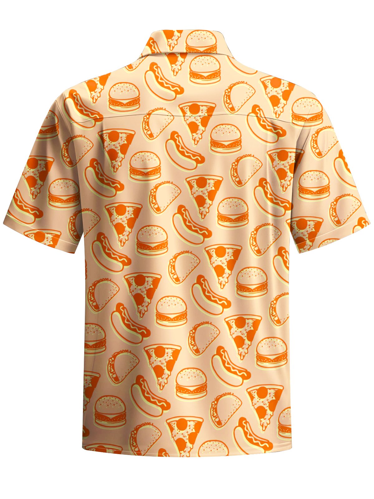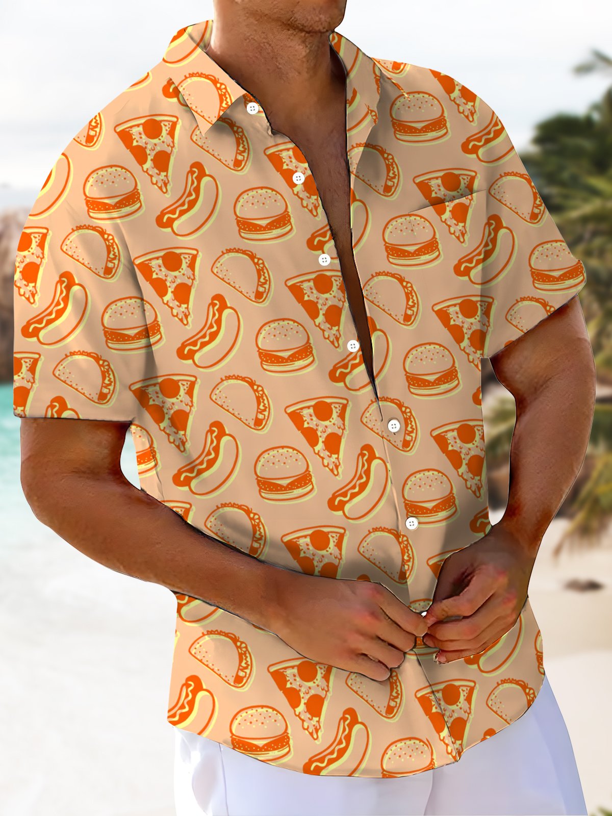 Alohadaddy® Men's Casual Hot Dog Printed Chest Pocket Stretch Short Sleeve Shirt Big & Tall
