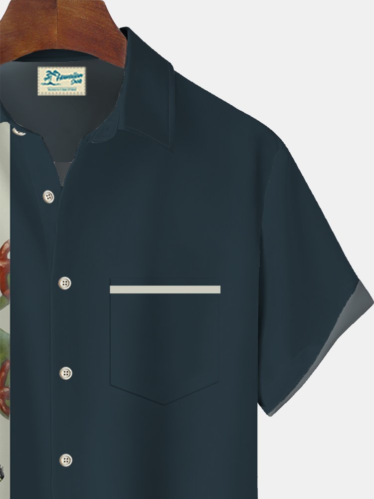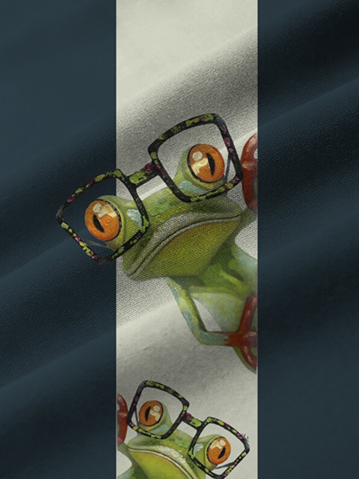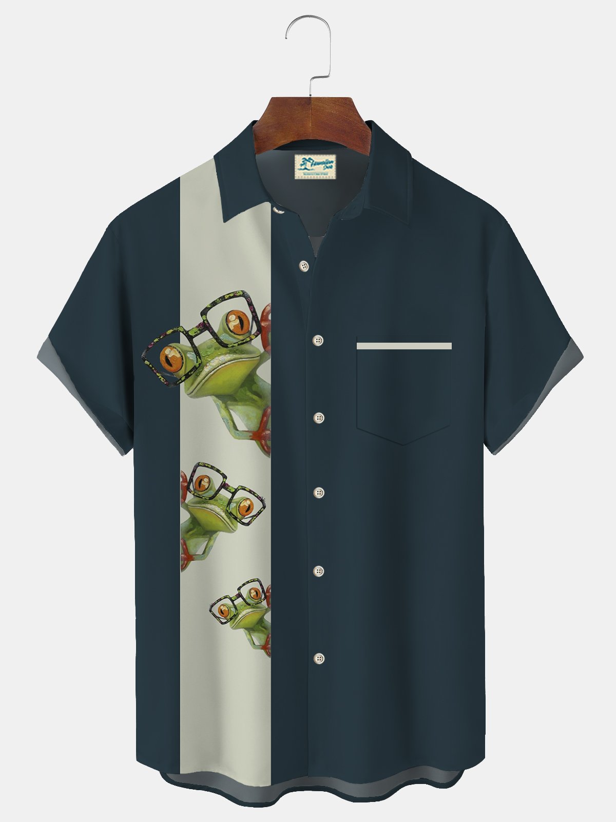 Camisa de bolos informal con estampado de rana Alohadaddy y gafas, camisa de gran tamaño para hombre con bolsillos