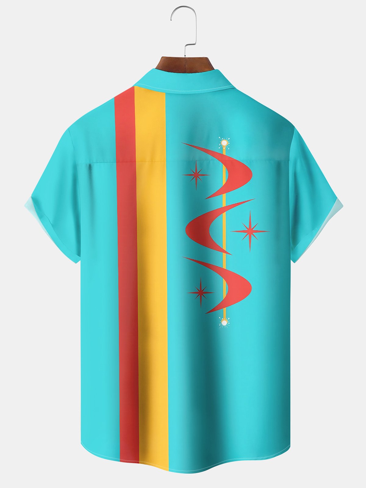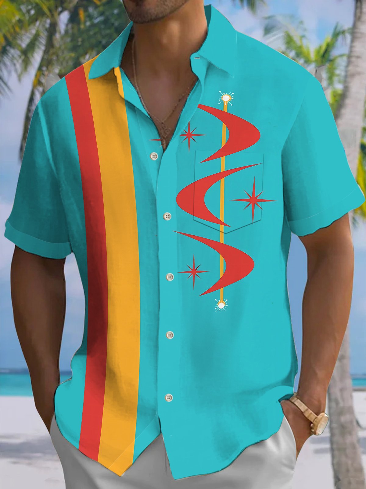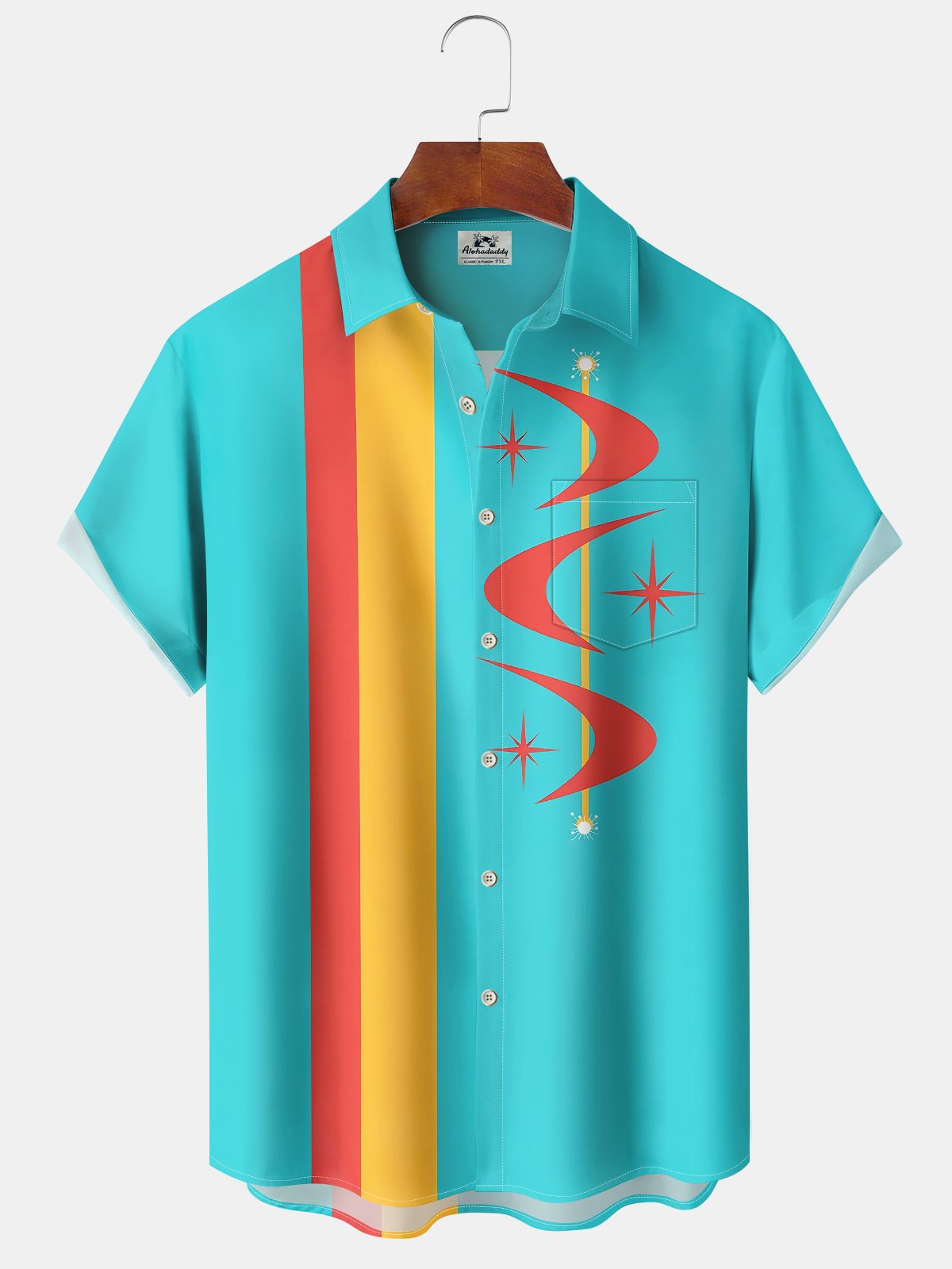 Alohadaddy® Atomic Geometric Boomerang Print Pocket Elastic Button Men's Short Sleeve Shirt Big & Tall