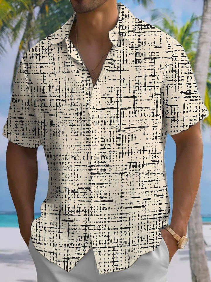 Alohadaddy® Casual Abstract Print Chest Pocket Men's Short Sleeve Shirt Big & Tall