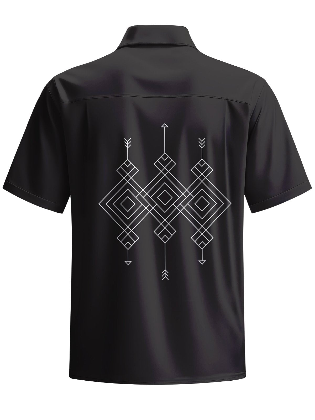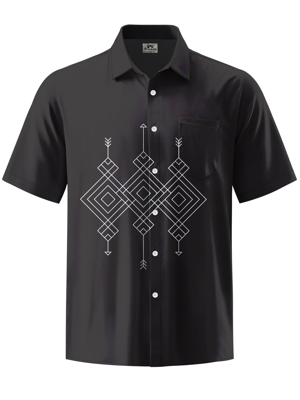 Alohadaddy® Casual Geometric Art Print Chest Pocket Men's Stretch Short Sleeve Shirt Big & Tall