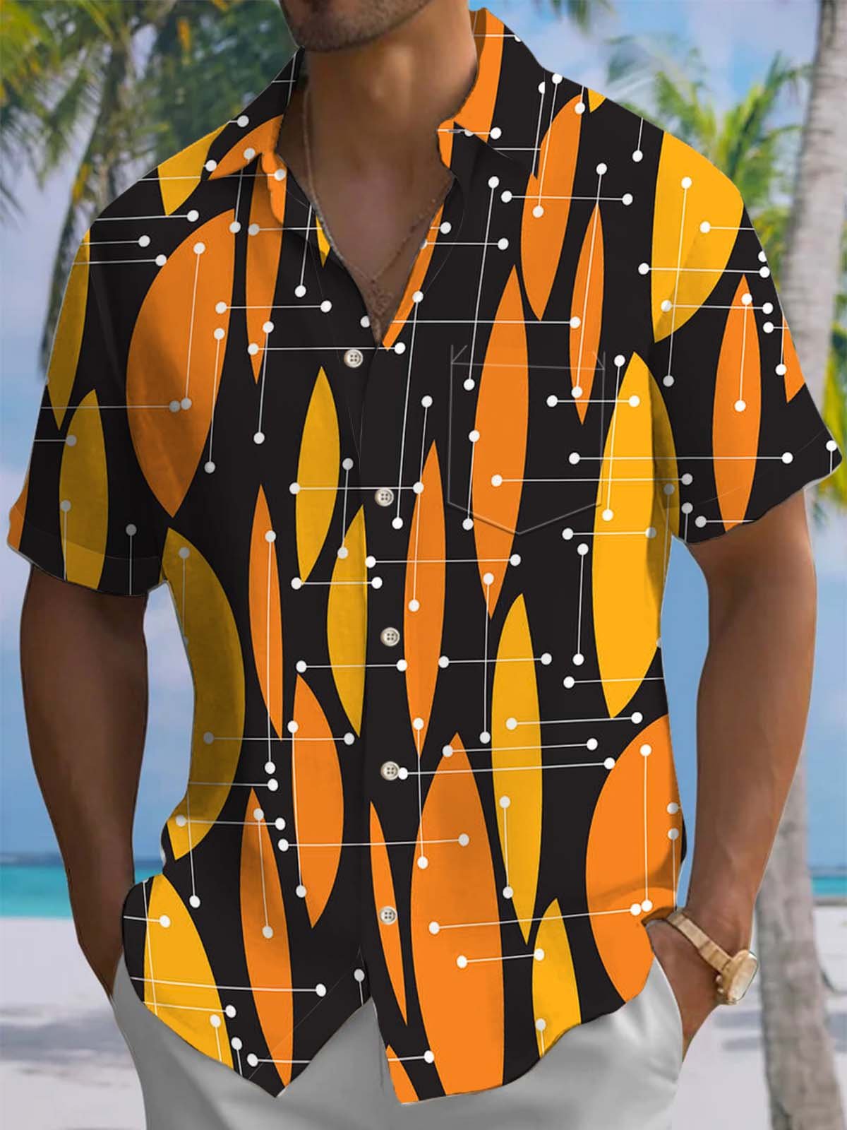 Alohadaddy® Casual Geometric Plaid Art Print Chest Pocket Men's Short Sleeve Shirt Big & Tall