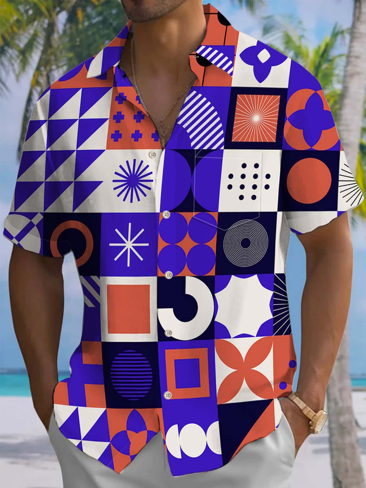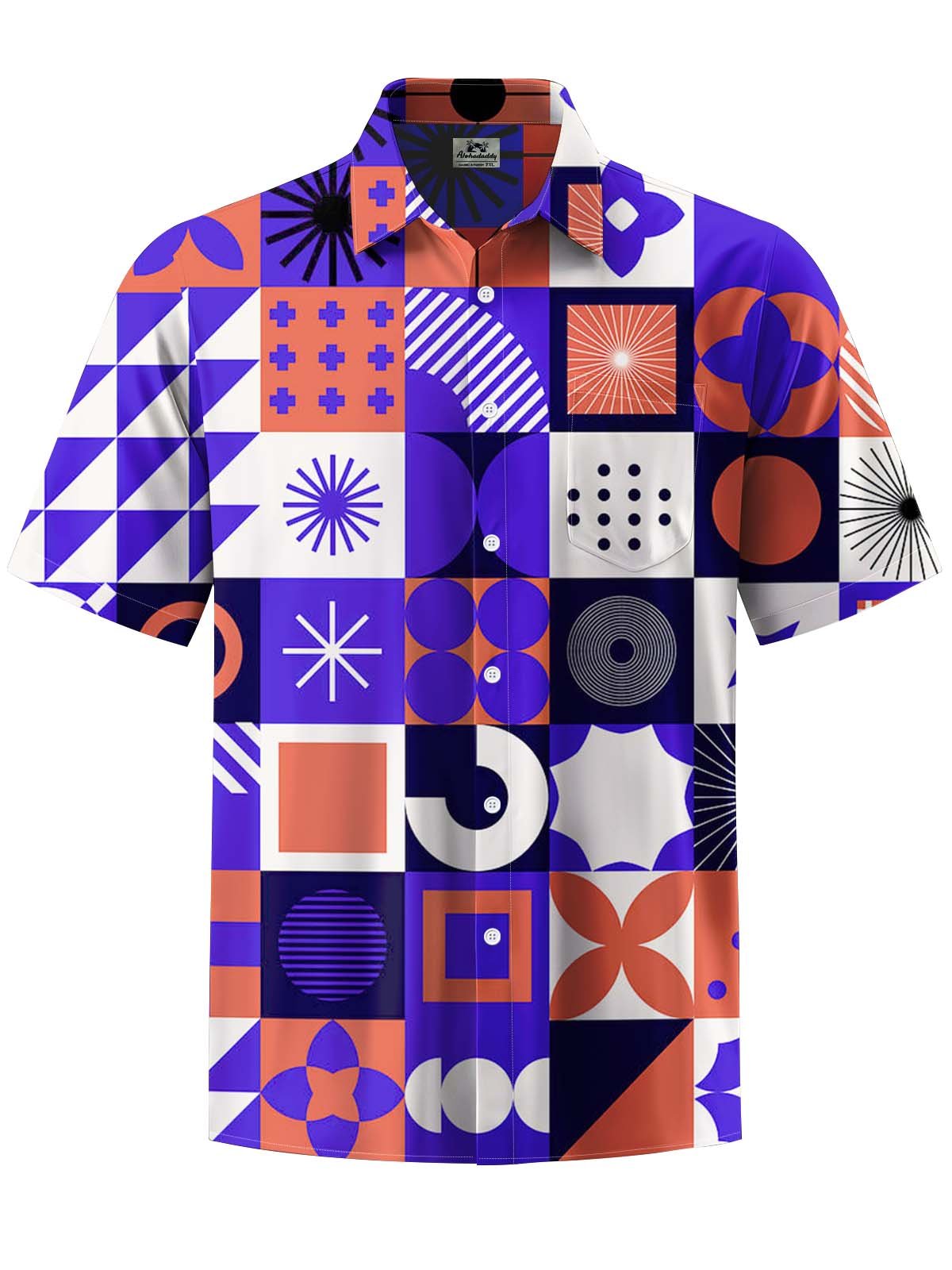 Alohadaddy® Casual Geometric Plaid Art Print Chest Pocket Men's Short Sleeve Shirt Big & Tall