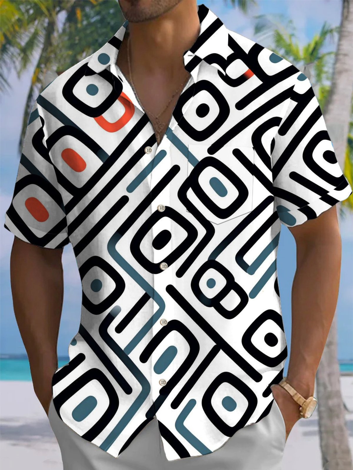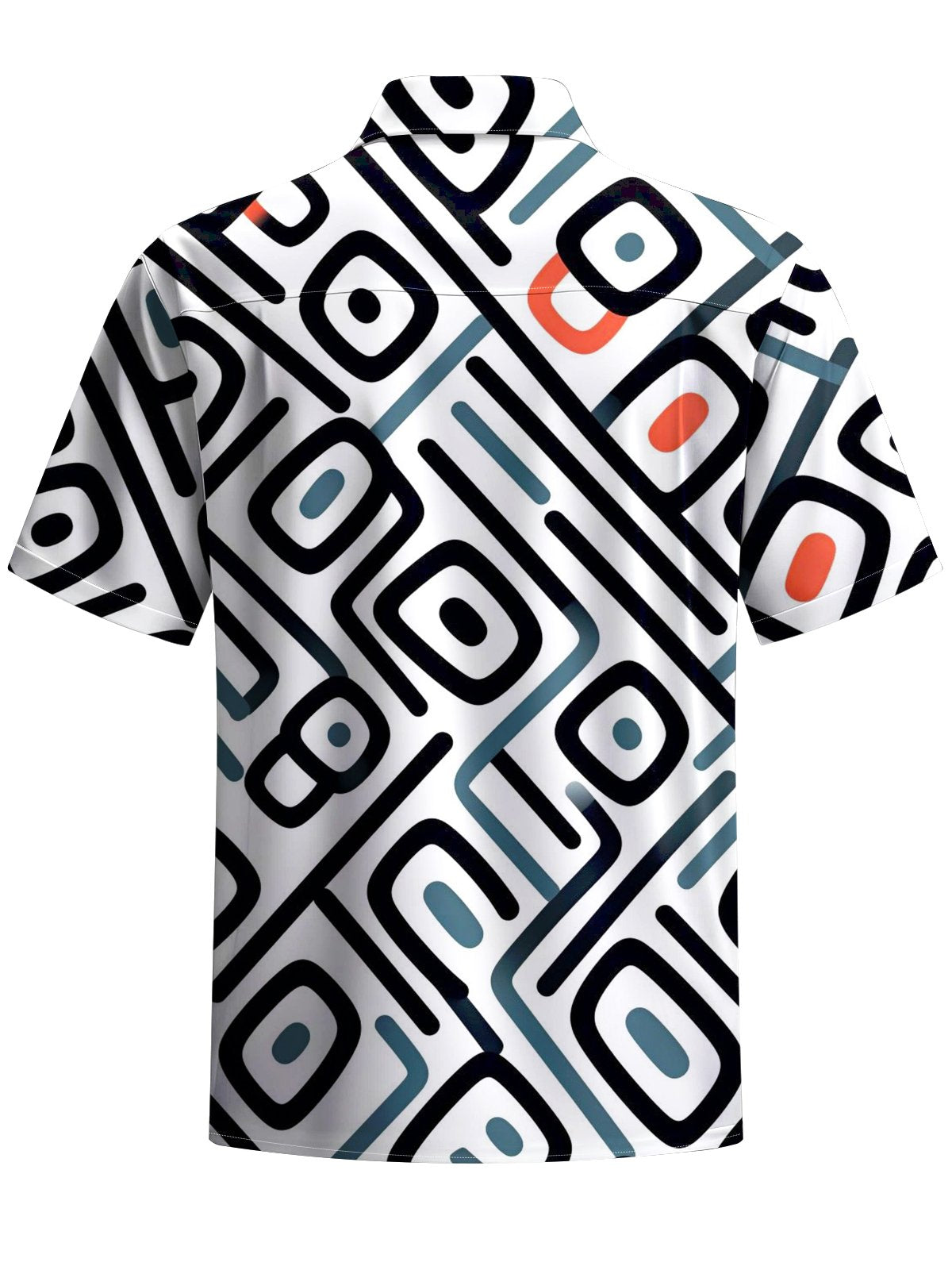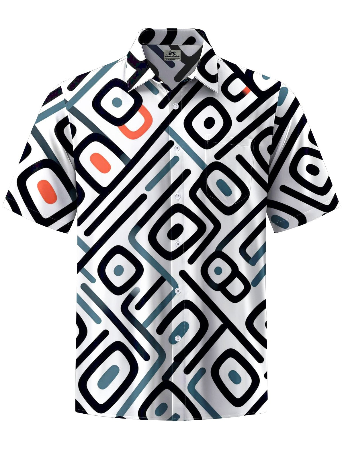 Alohadaddy® Casual Geometric Print Button Pocket Stretch Men's Short Sleeve Shirt Big & Tall