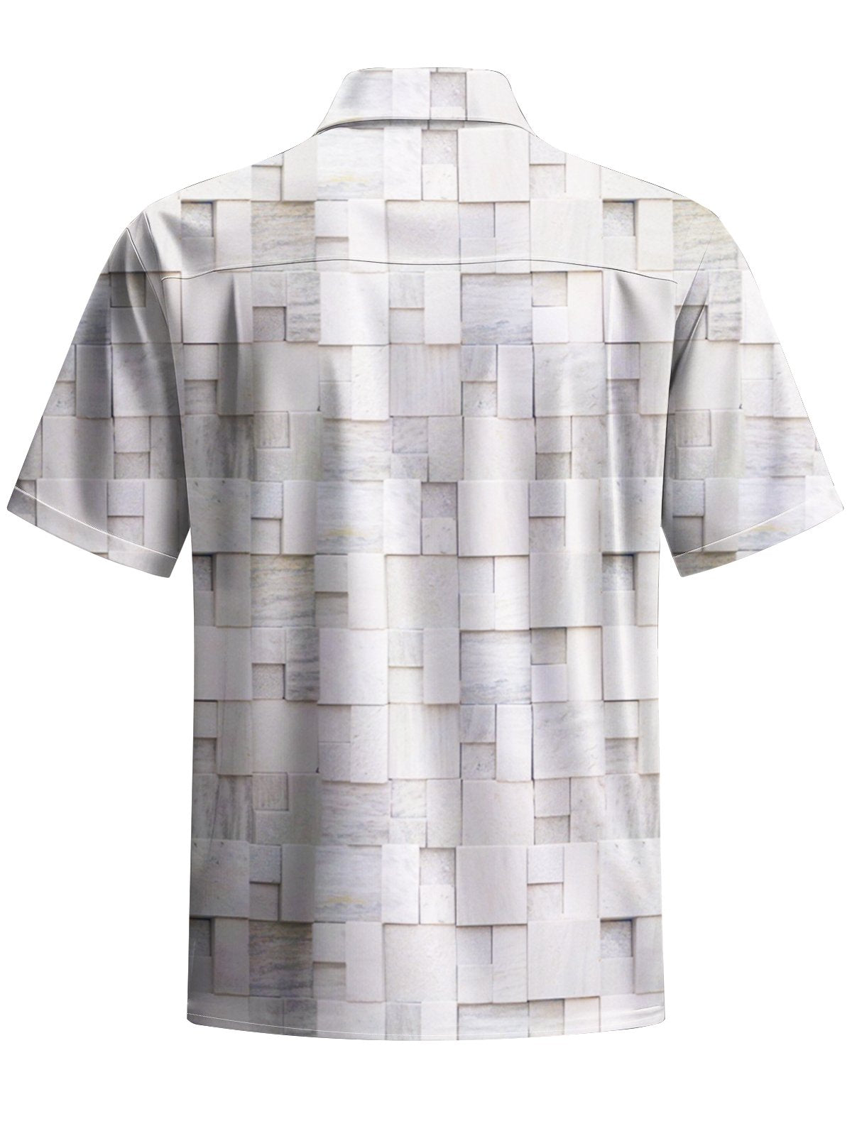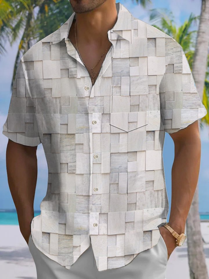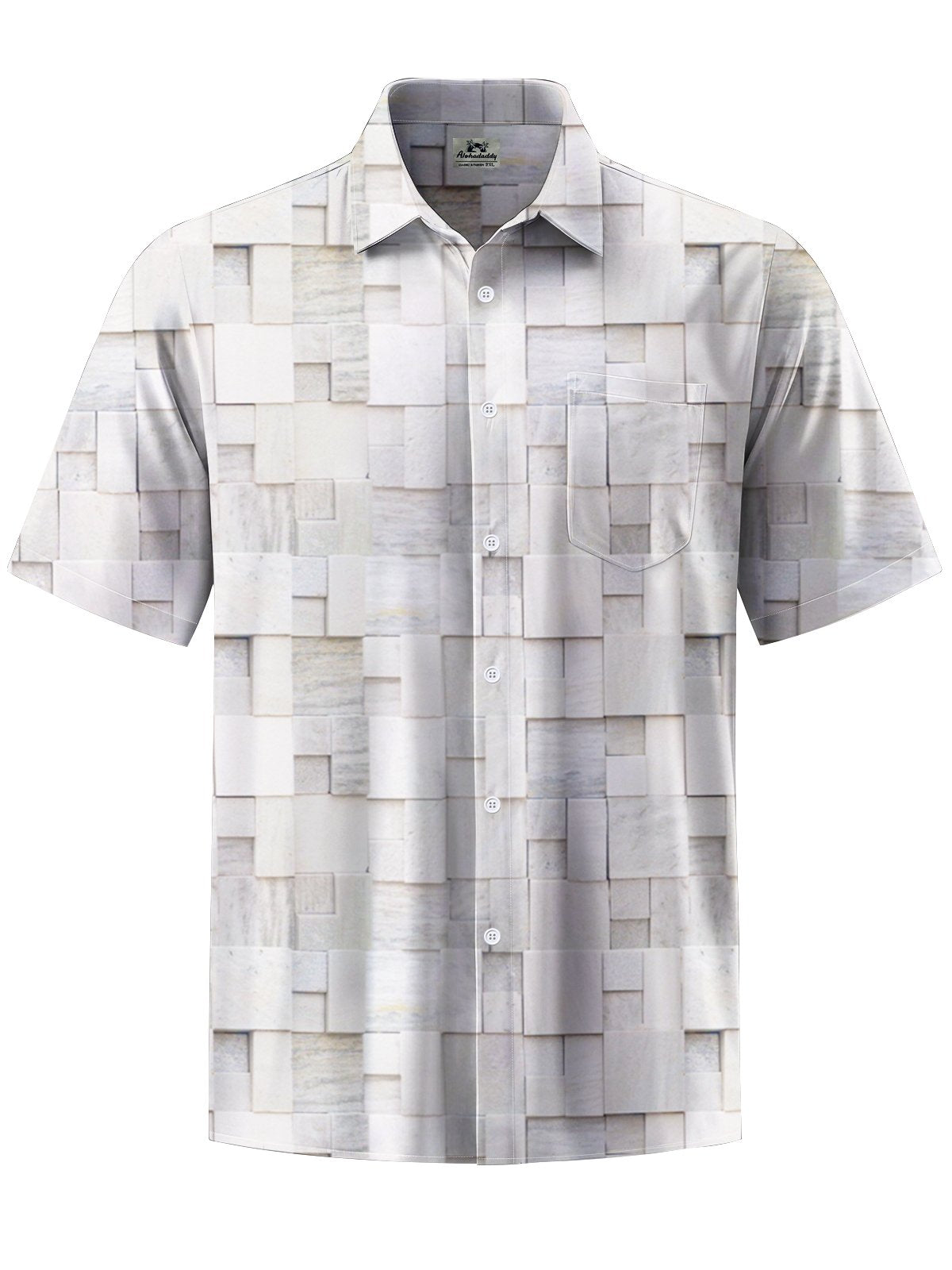 Alohadaddy® Casual Geometric Stone Art Print Chest Pocket Men's Short Sleeve Shirt Big & Tall