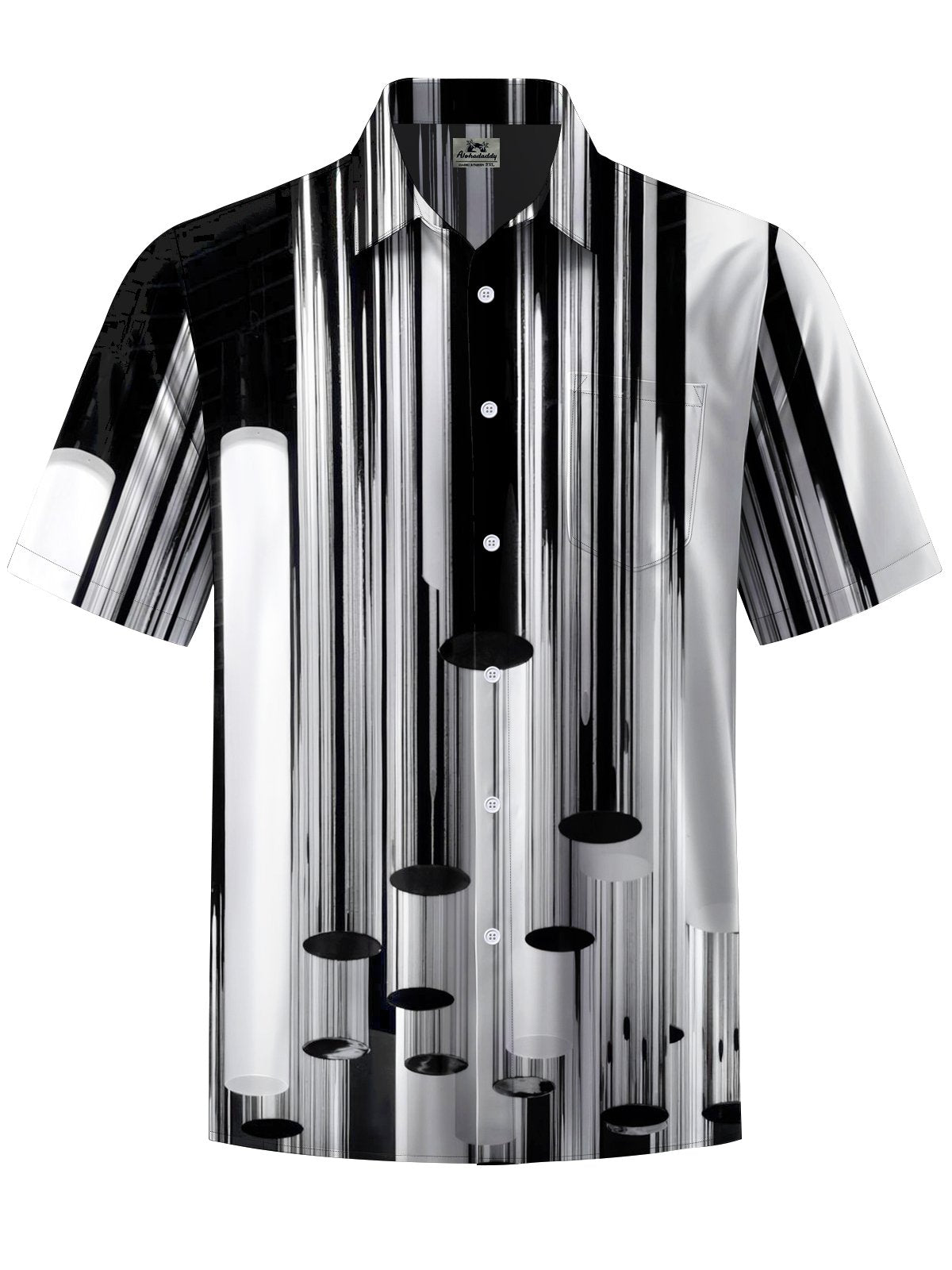 Alohadaddy® Casual Geometric Stripe Print Art Pocket Stretch Men's Short Sleeve Shirt Big & Tall
