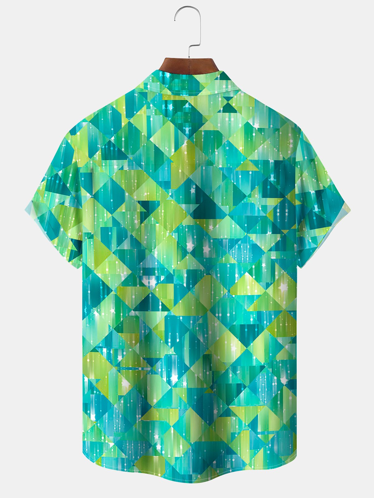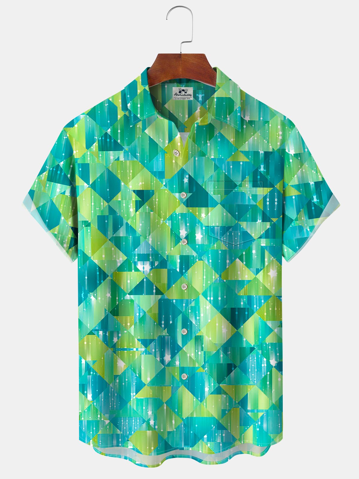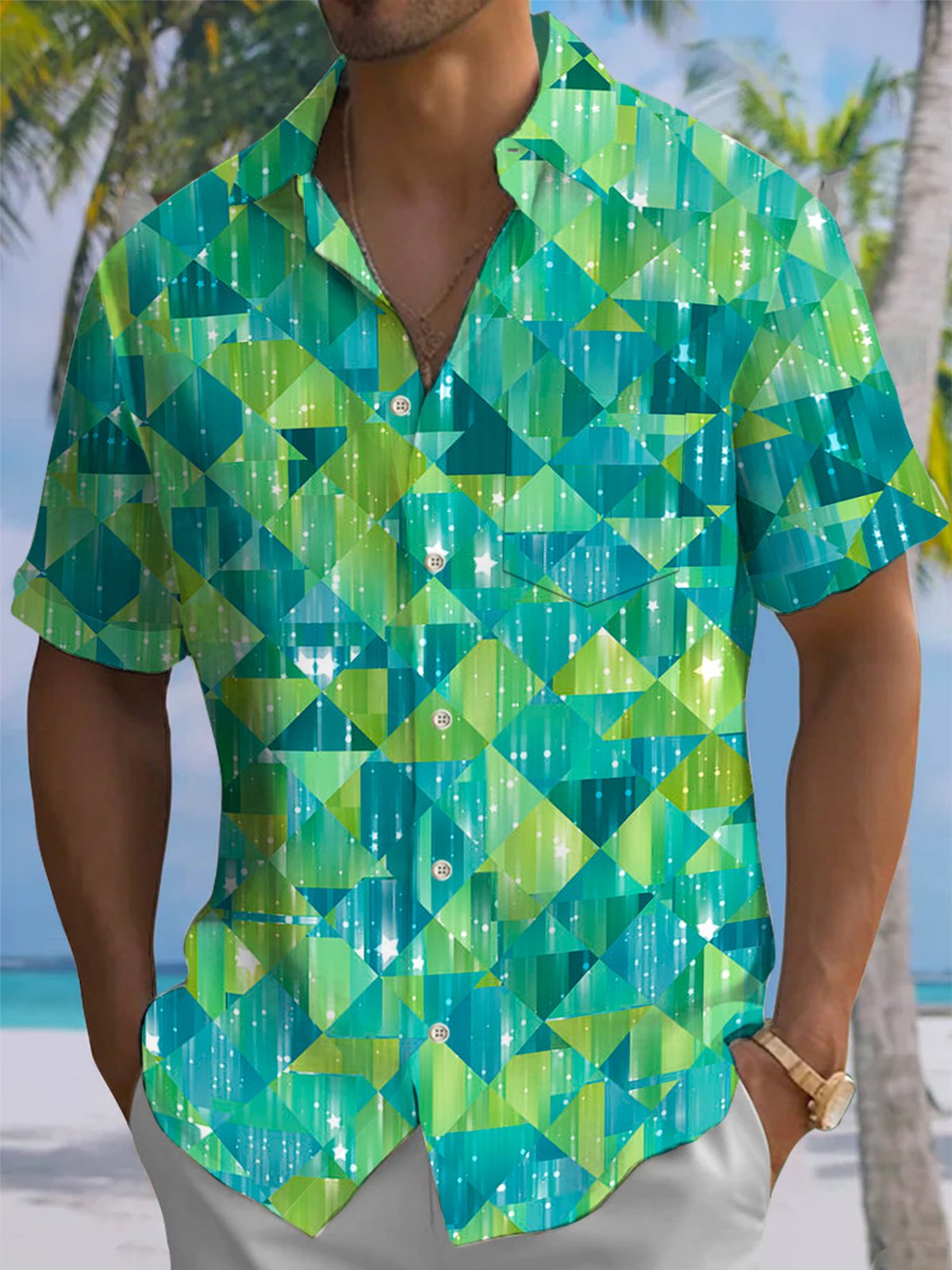 Alohadaddy® Casual Geometric Triangle Print Pocket Stretch Men's Short Sleeve Shirt Big & Tall