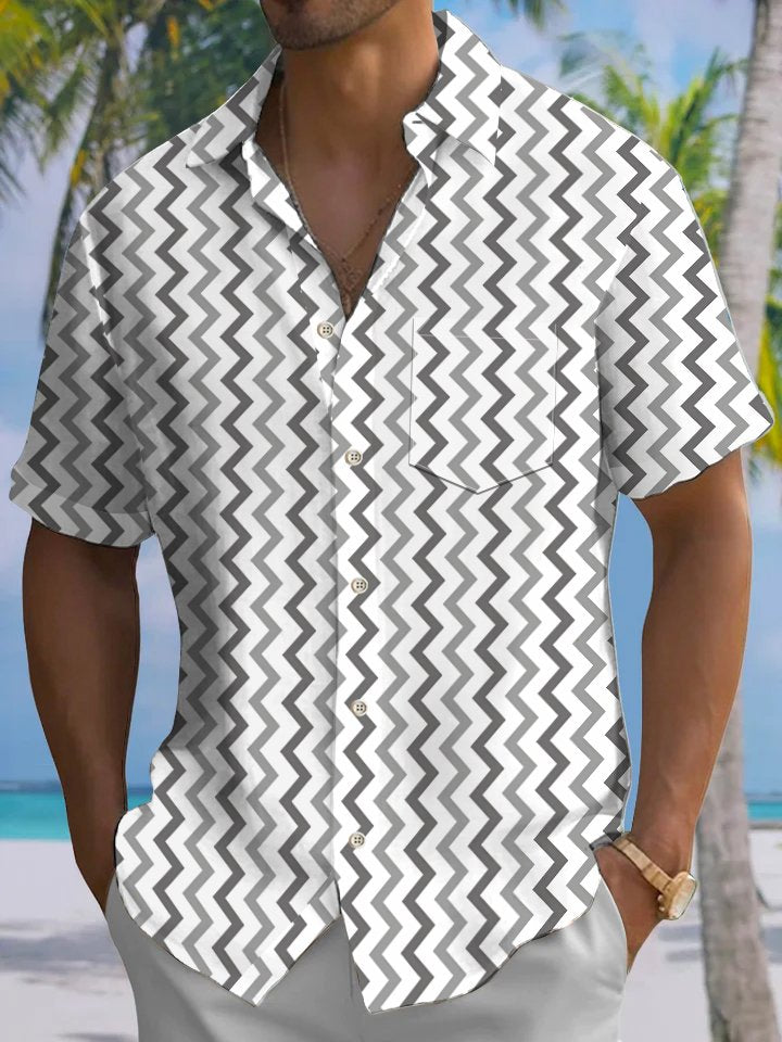 Alohadaddy® Casual Stripe Art Print Chest Pocket Men's Short Sleeve Shirt Big & Tall