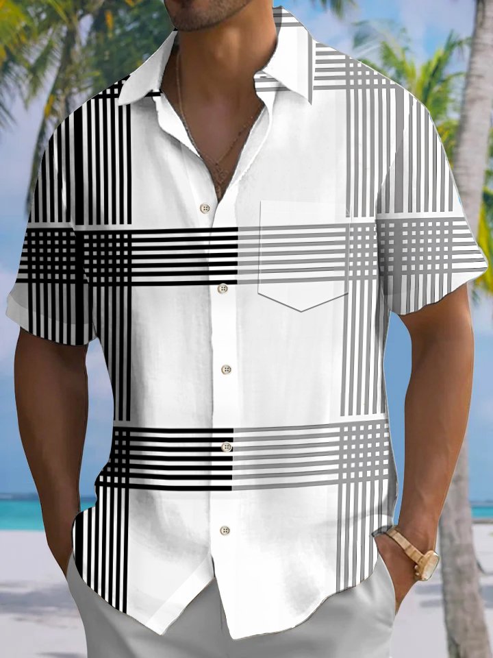Alohadaddy® Casual Stripe Art Print Chest Pocket Men's Short Sleeve Shirt Big & Tall