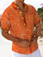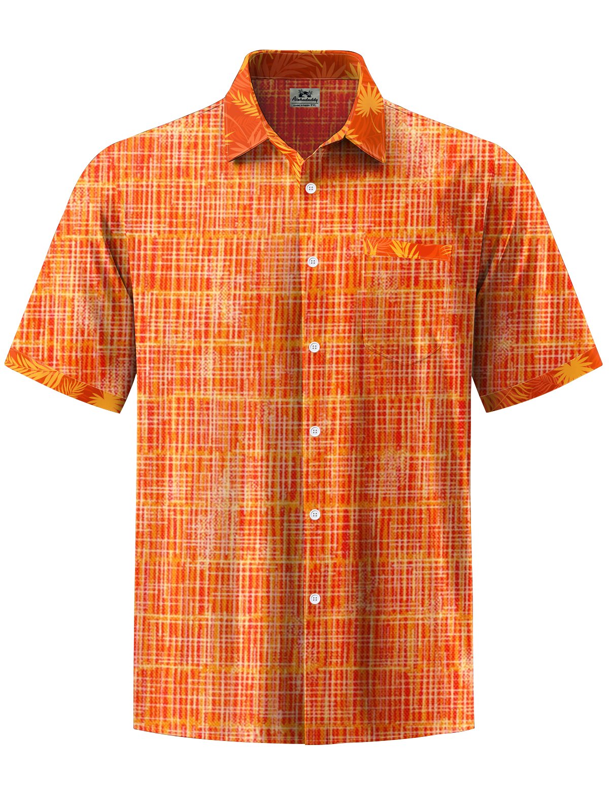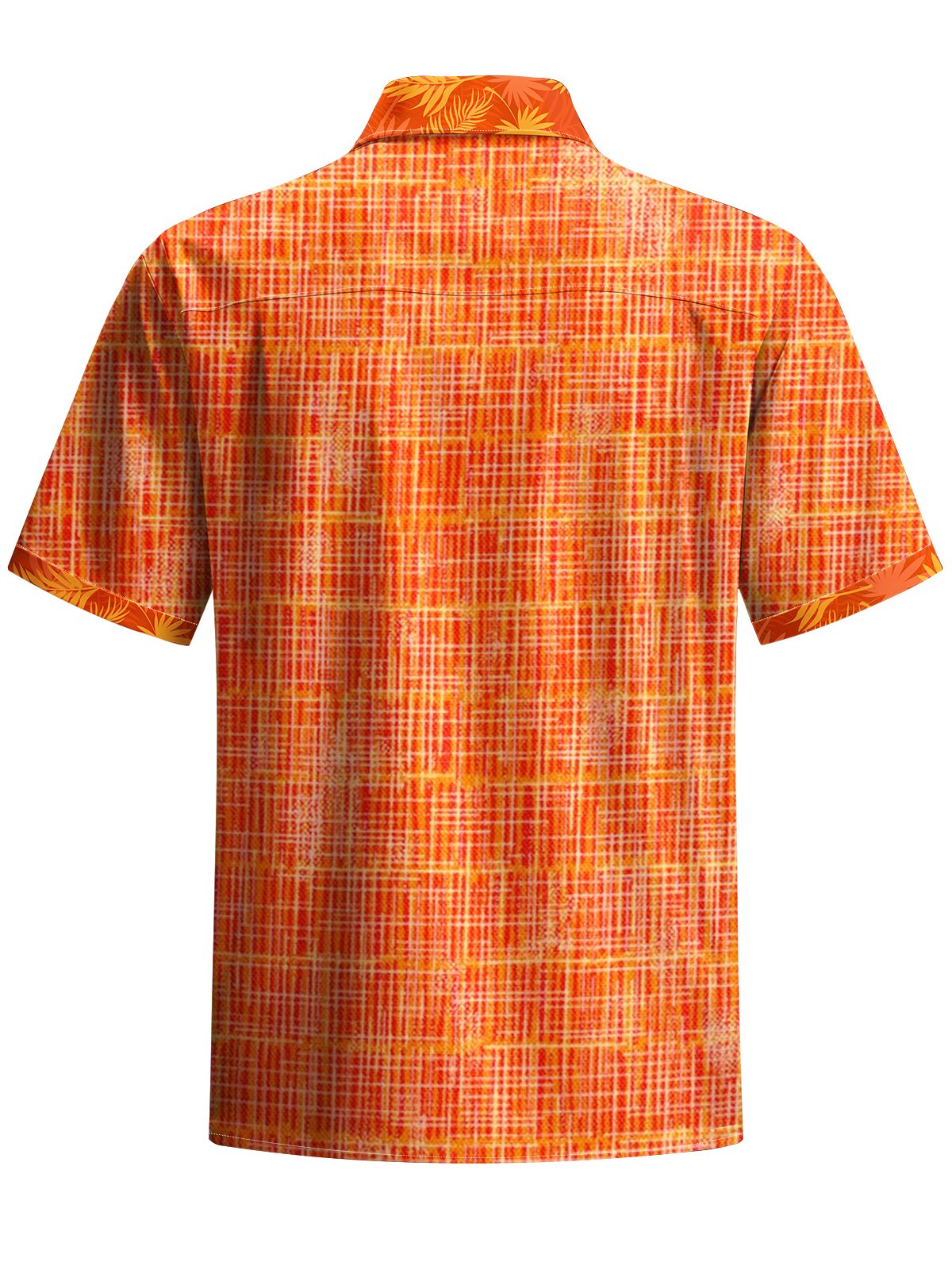 Alohadaddy® Casual Stripes Leaves Contrast Art Print Chest Pocket Men's Short Sleeve Shirt Big & Tall