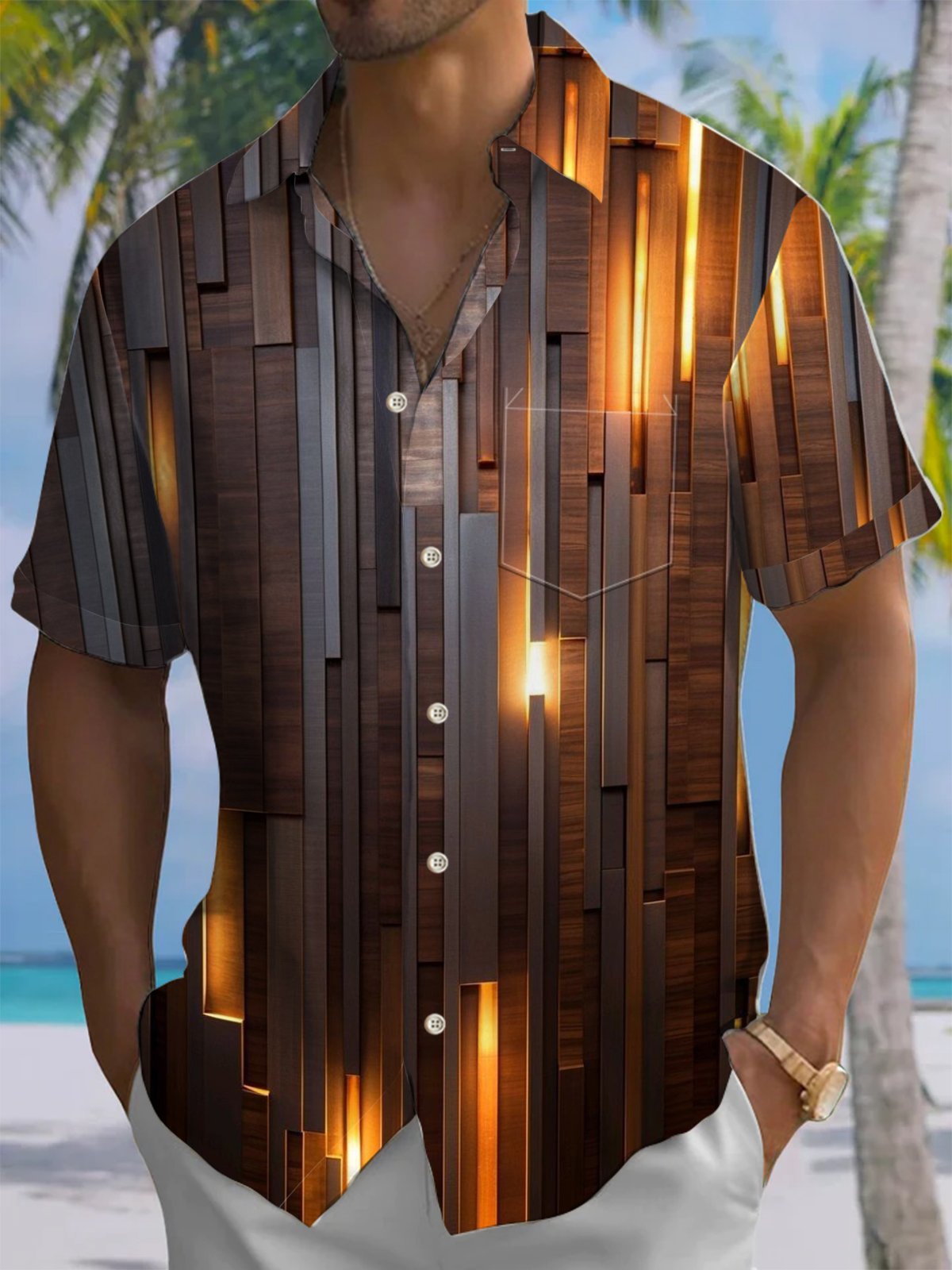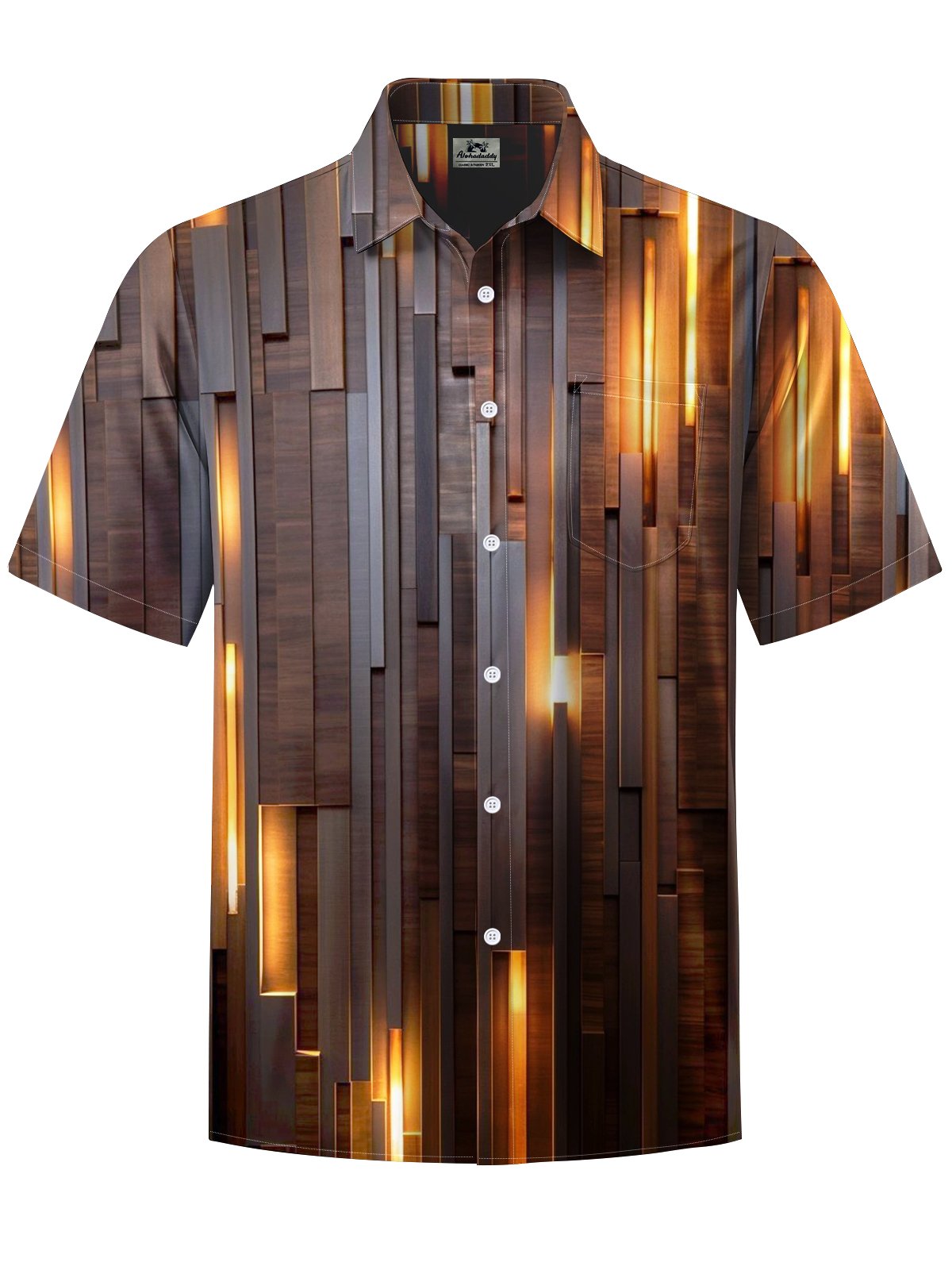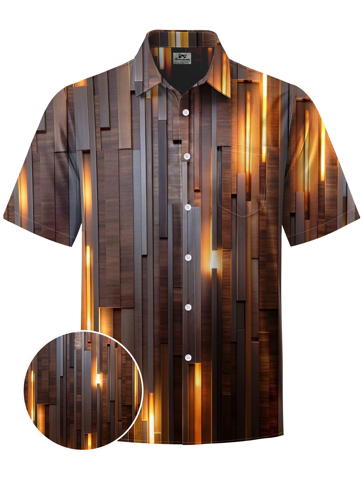 Alohadaddy® Casual Woodgrain Art Print Chest Pocket Men's Short Sleeve Shirt Big & Tall