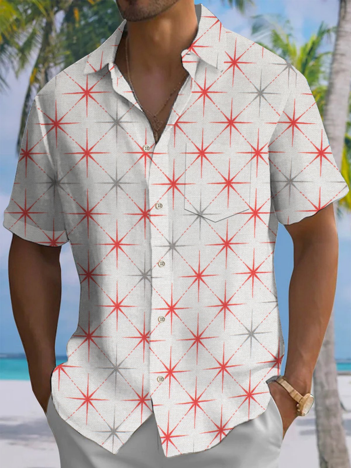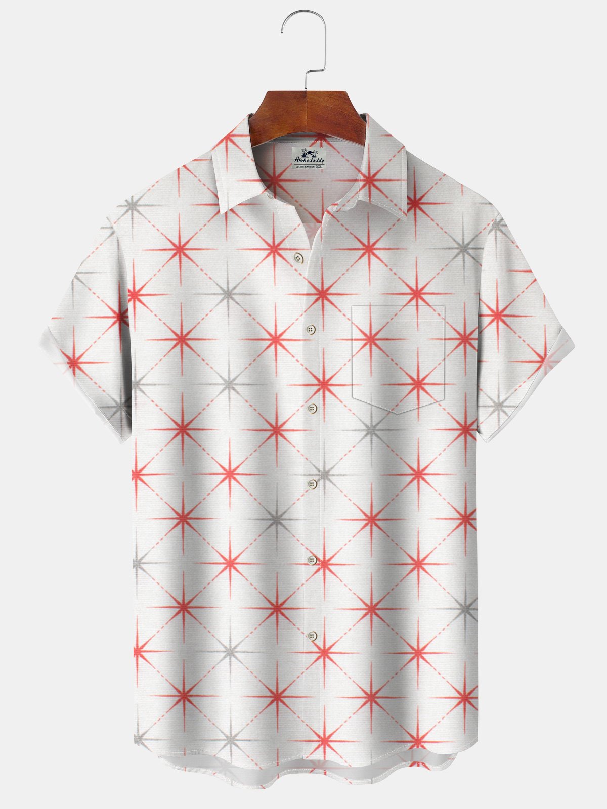 Alohadaddy® Retro Geometric Star Print Pocket Button Stretch Men's Short Sleeve Shirt Big & Tall
