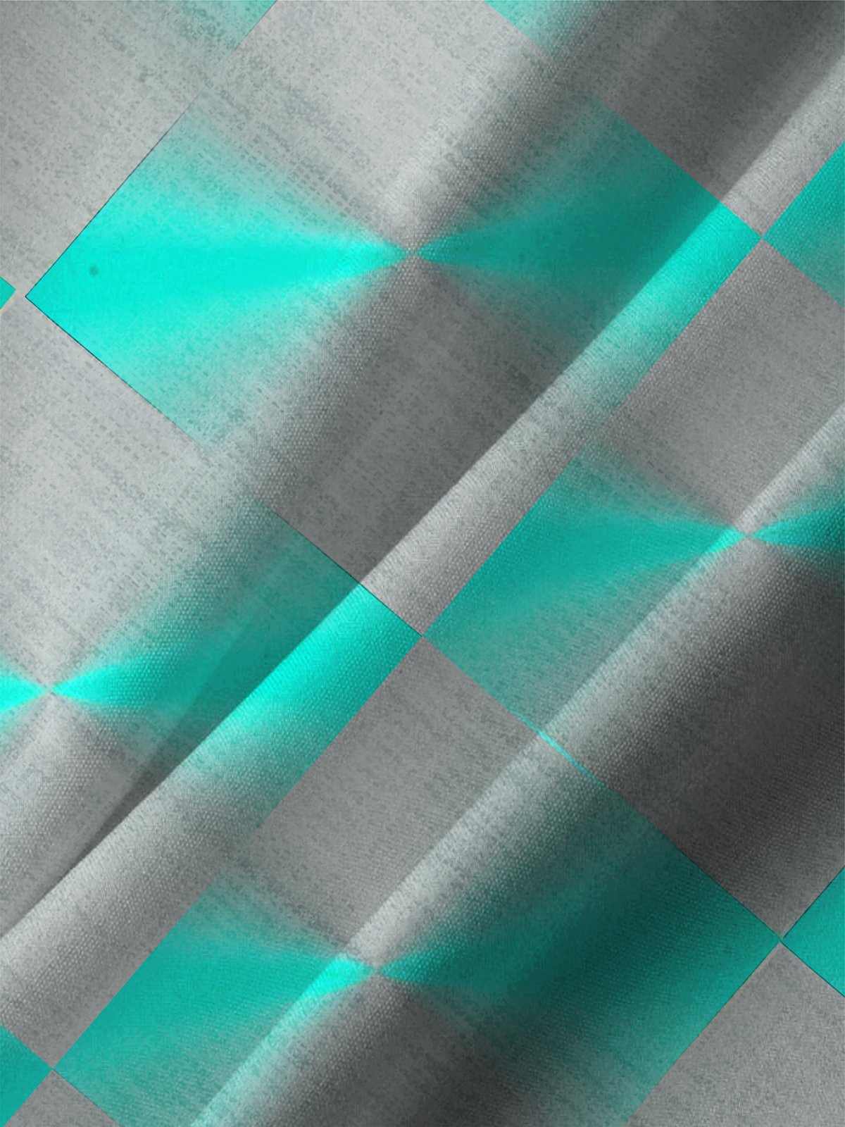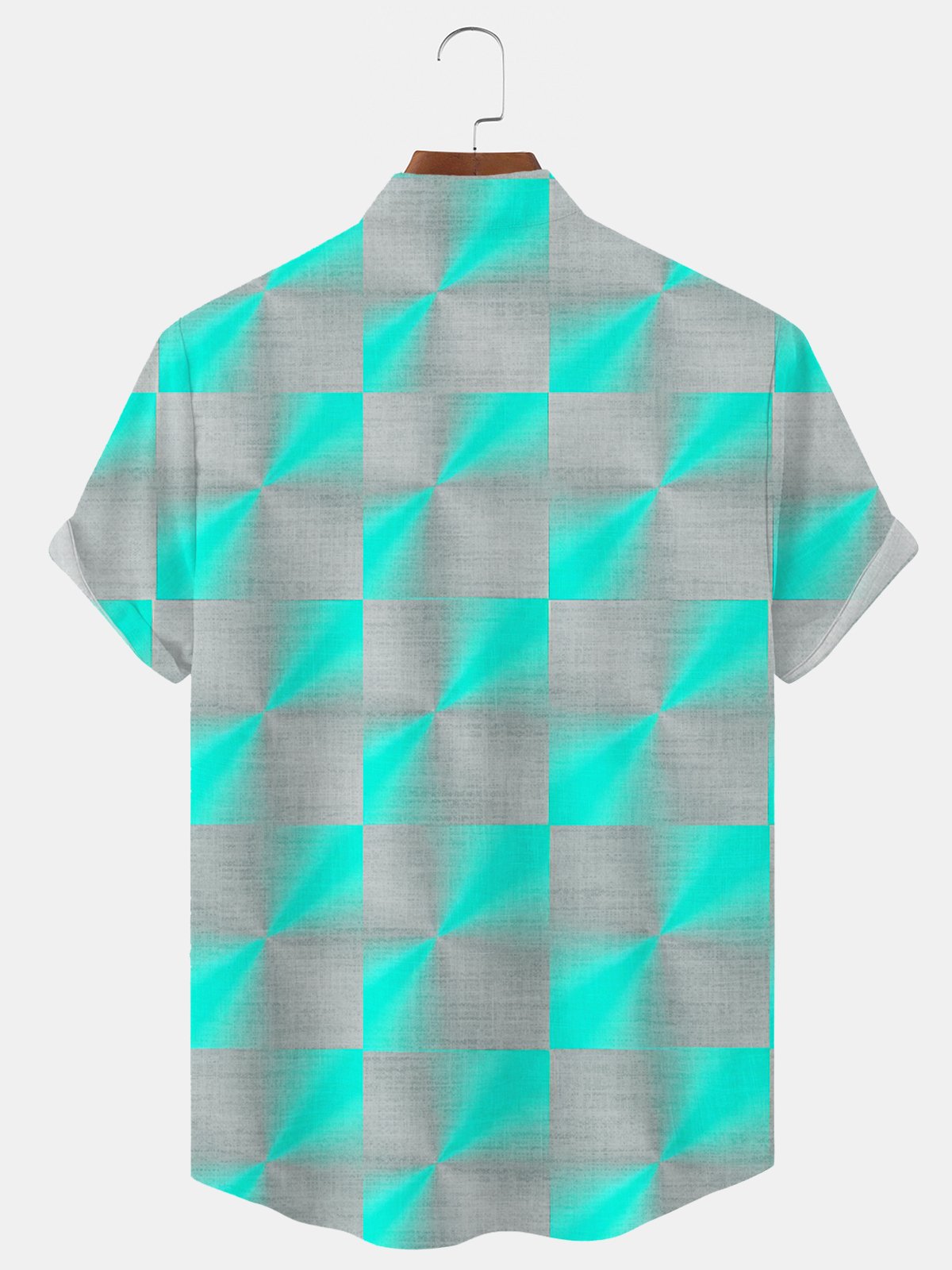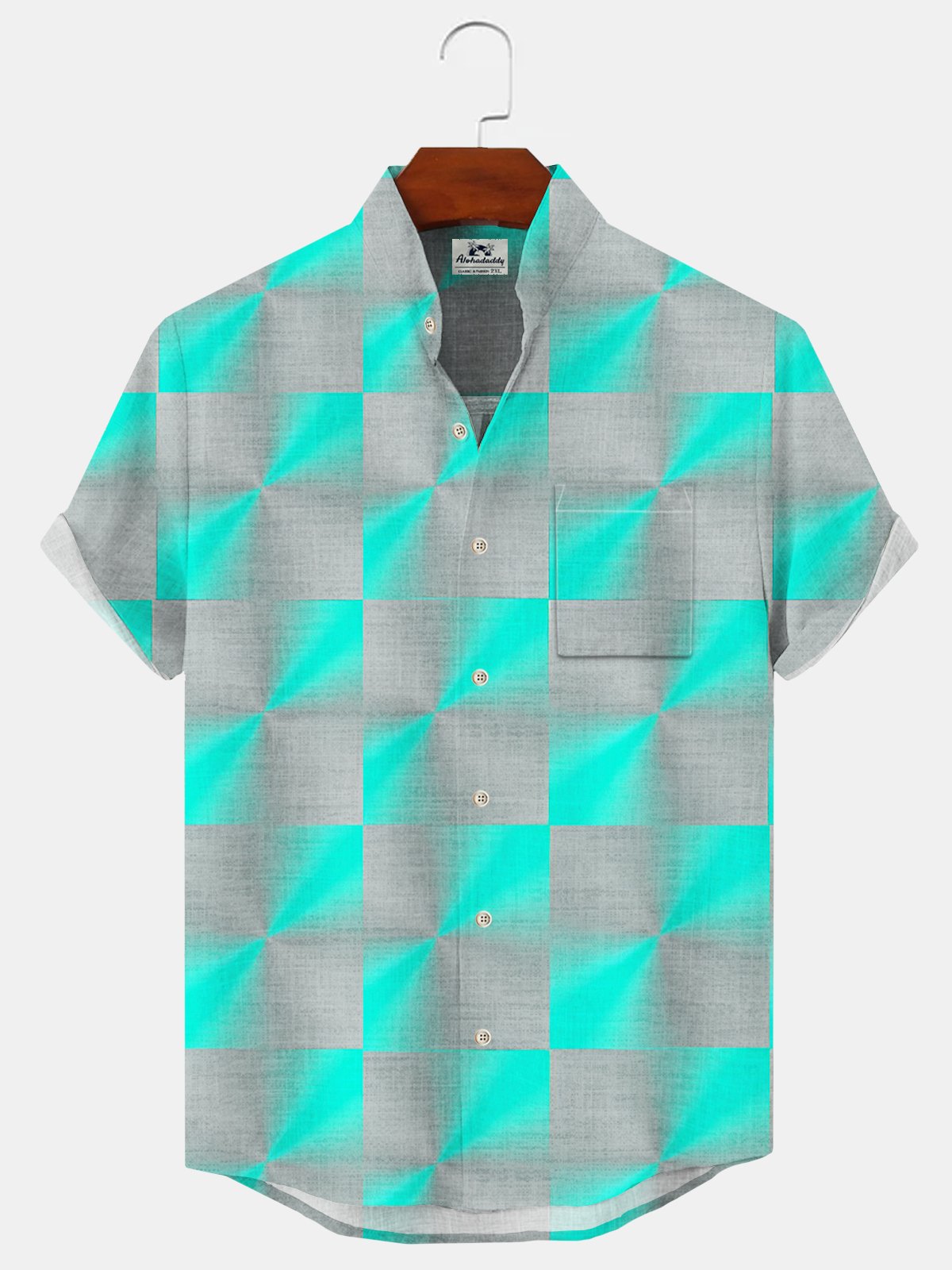 Alohadaddy Geometric Contrast Button Pocket Casual Short Sleeve Stand Collar Shirt